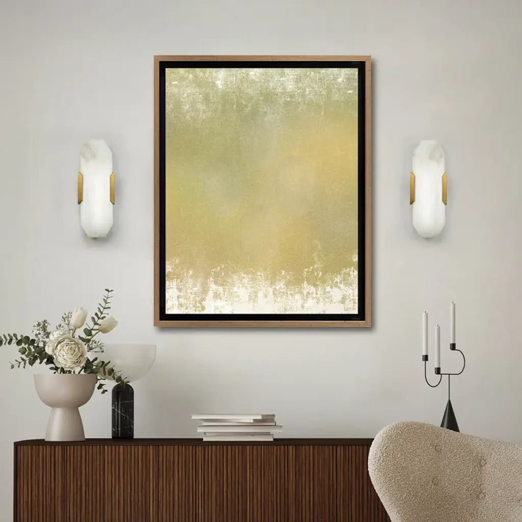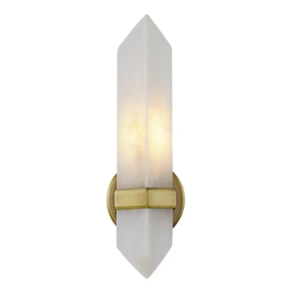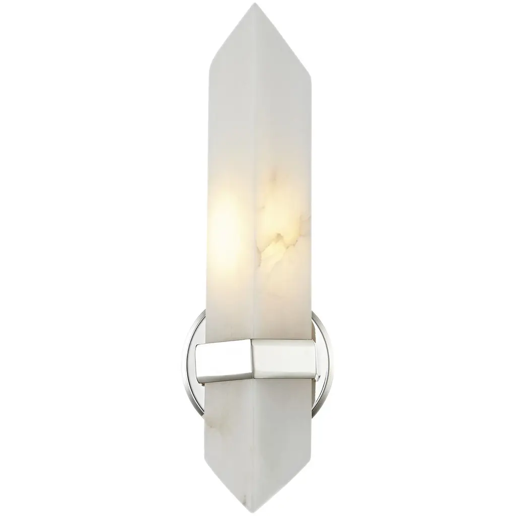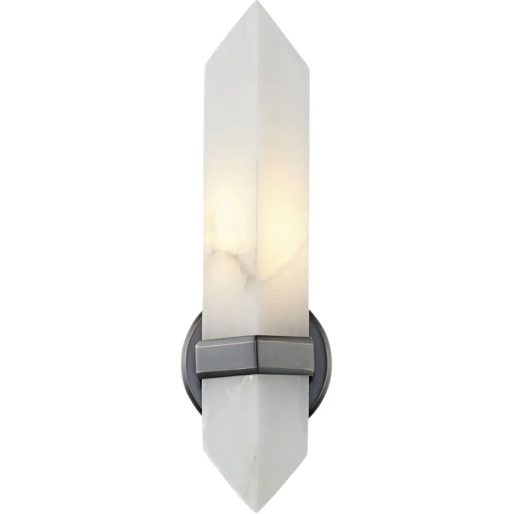 Add a dose of luxury from the rich and varied look of carved alabaster. Simply held by two metal accents. Diffused illumination glows from the stone creating an elegant, refined aesthetic.