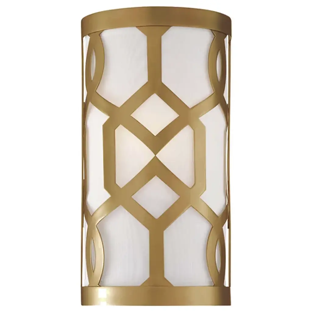 The Crystorama Jennings Wall Sconce from designer Libby Langdon features an interesting geometric pattern that has a graphic feel without overpowering the space. The linen shade adds a little texture to the piece, while the bottom glass diffuser scatters the illumination throughout the space just right.