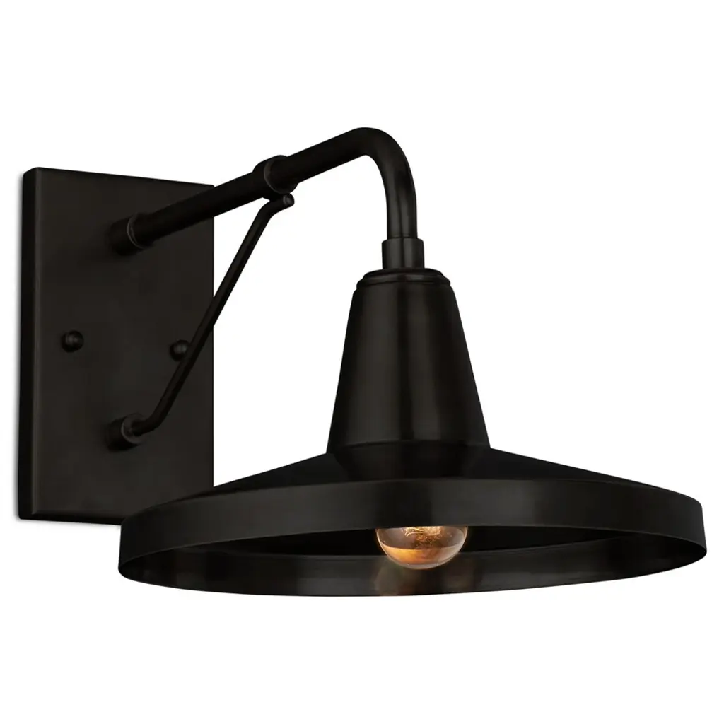 Jensen Traditional Matte Black Brass Outdoor Armed Wall Sconce