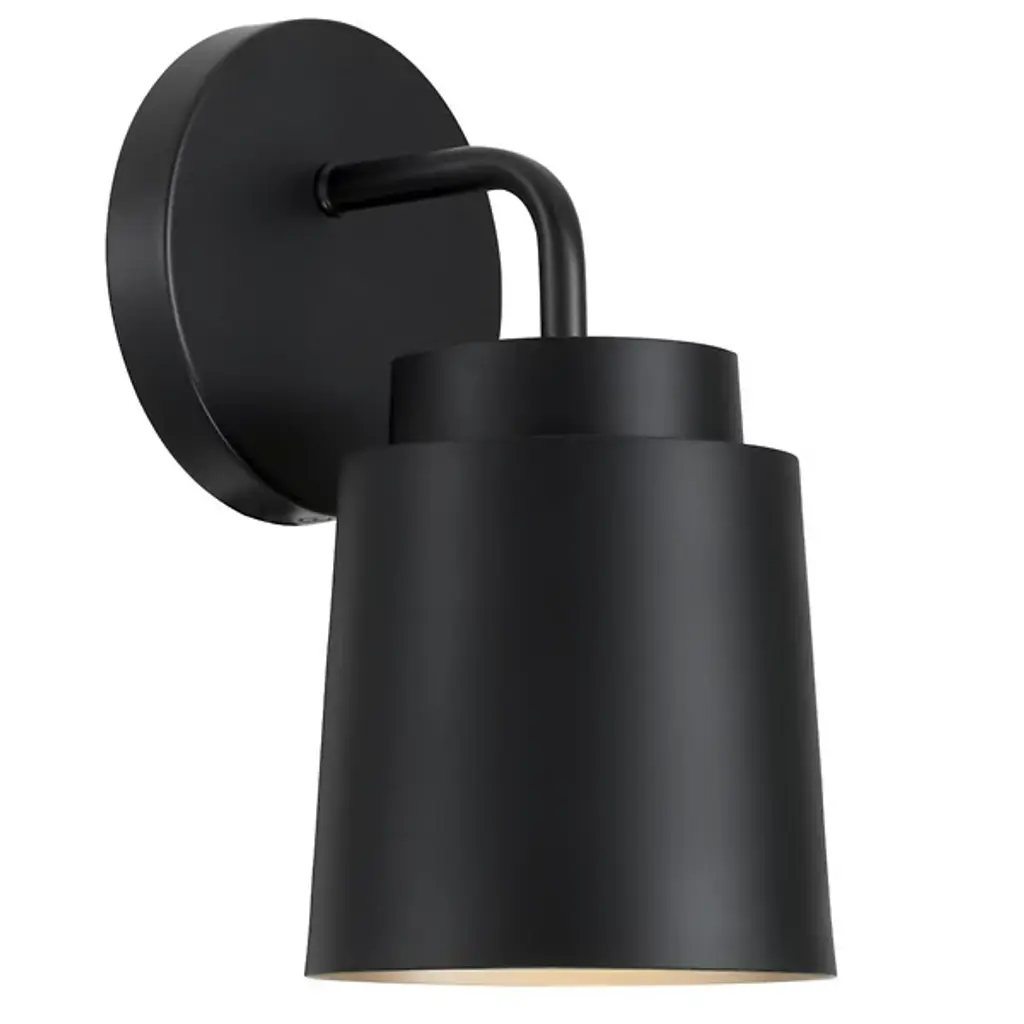 The Jerimiah Bath Wall Sconce from Alder & Ore introduces a sophisticated style to task lighting with its tapered and concise design. The tiered metal shade achieves a sleek aesthetic and adds a touch of contemporary elegance. The inner finish contributes to the luminaire's allure, creating an intriguing dimension that enhances its visual appeal. Illuminate your space with a perfect blend of form and function, as the sconce effortlessly combines a refined style with practical task lighting for a distinctive and sophisticated lighting experience.