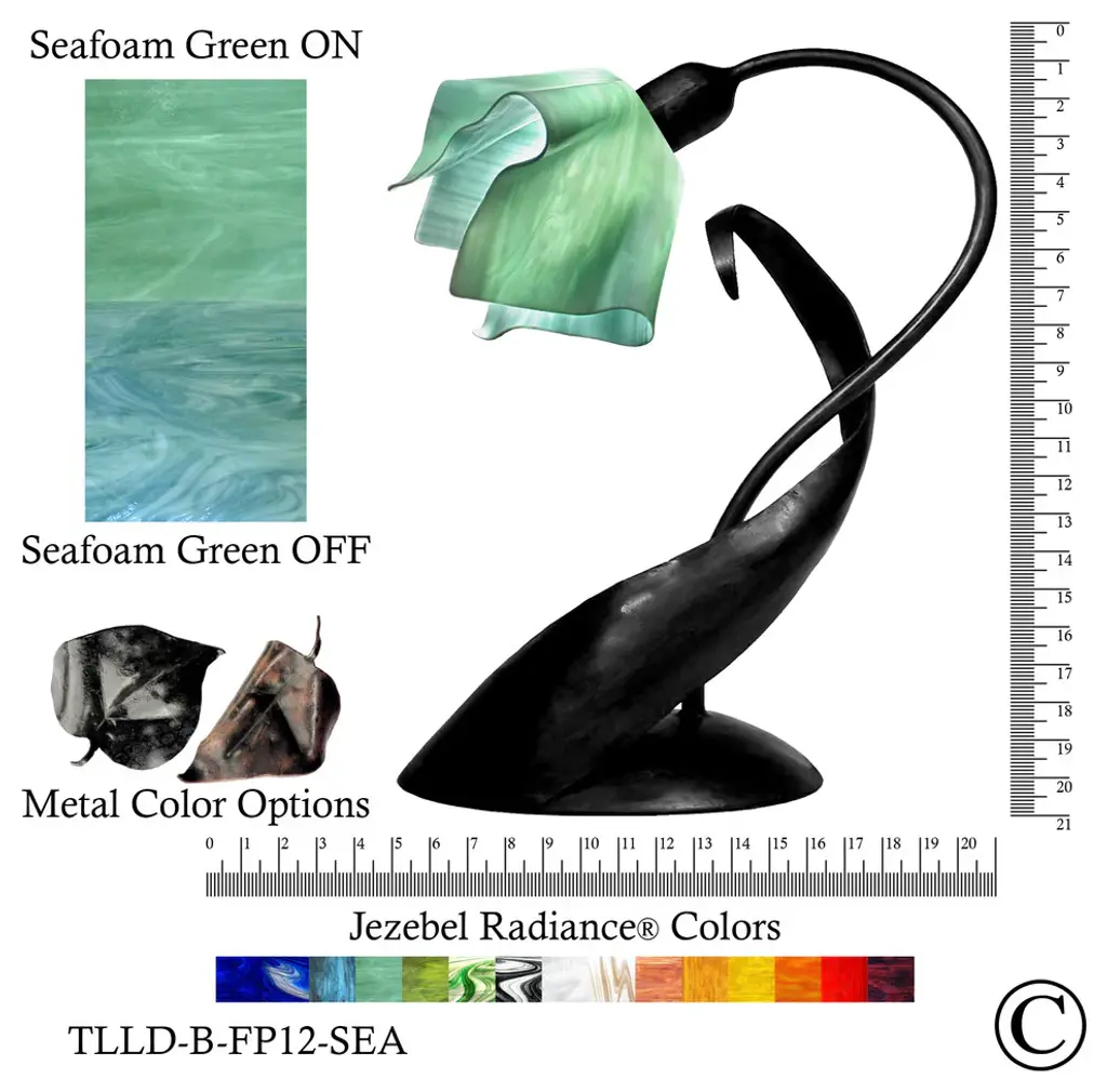 Our glass is handmade in the USA using a process patented to Jezebel. This entirely handmade light measures 17"H x 8.5"W x 8.5"D. The hand-forged iron base is wired for 120 volts. This light can be used with a medium base bulb (not included): Incandescent, Fluorescent or LED. The Jezebel Radiance line of glass is premium, heirloom quality glass. Jezebel Radiance glass has streaks of bold, brilliantly intense color with a shiny surface. Glass shades are shaped using a process patented to Jezebel. This is a stunningly beautiful hand rolled sheet glass. There is no unsightly hot spot from a light bulb. Meanwhile, pure color and light will flood your space with ambiance. Jezebel Radiance Branch Sconces are made in the USA of handcrafted glass using a process patented to Jezebel. The remarkably saturated hues can be ordered in a variety of glass colors. All Jezebel Radiance products are UL certified and 120 Volts. This light can be used with a medium base bulb (not included): Incandescent, Fluorescent or LED. Naturally occurring air bubbles, inclusions, textures and slight color variations demonstrate that your Jezebel Radiance Branch Sconce is an original work of art. Your Jezebel Radiance Branch Sconce is made of hand-forged iron and comes with our 2-year limited warranty. If your hardware or glass shade arrives defective in any way, please contact your retailer for claim instructions. UL approved, dry, wet or damp or similar testing lab: UL compliant, for dry or damp areasHardwire or plug: HardwireType of bulbs needed: Medium BaseWattage: 60 watt Incandescent or equivalent LEDNumber of bulbs required? (Included? Y/N): 1 (N)