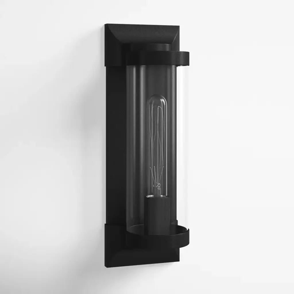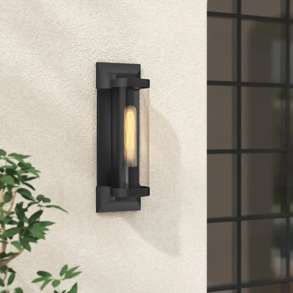 Take the indoor style of statement sconces to your outdoor porch or patio. Drawing inspiration from old world-style designs, this flush mount is made from metal and features cast symmetrical end caps and a clear cylindrical glass shade. Vintage filament bulbs combine with the sleek backplate for a sophisticated look you'll love to show off. This rust-resistant design is safe to use in locations with direct water exposure, and even boasts compatibility with dimmer switches.