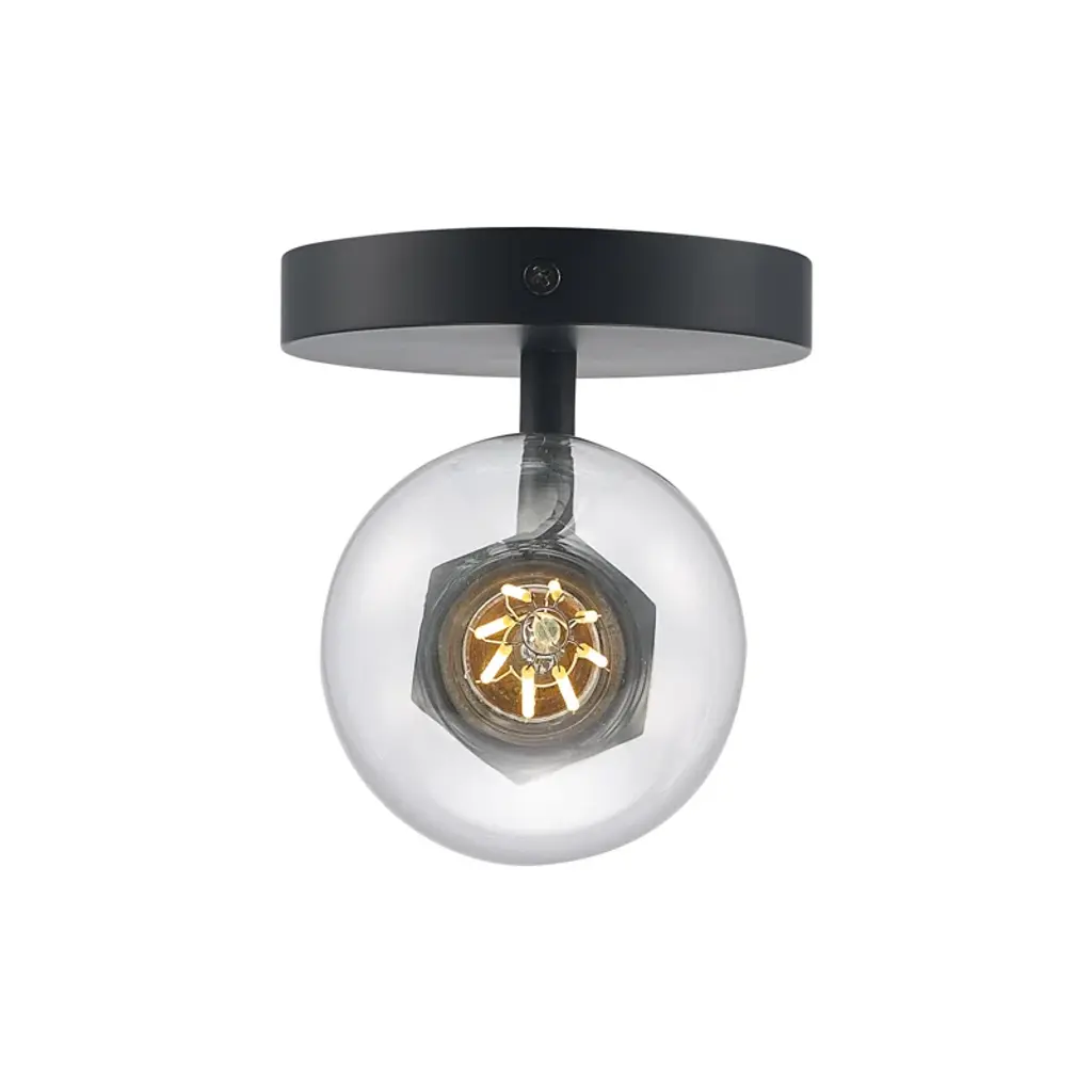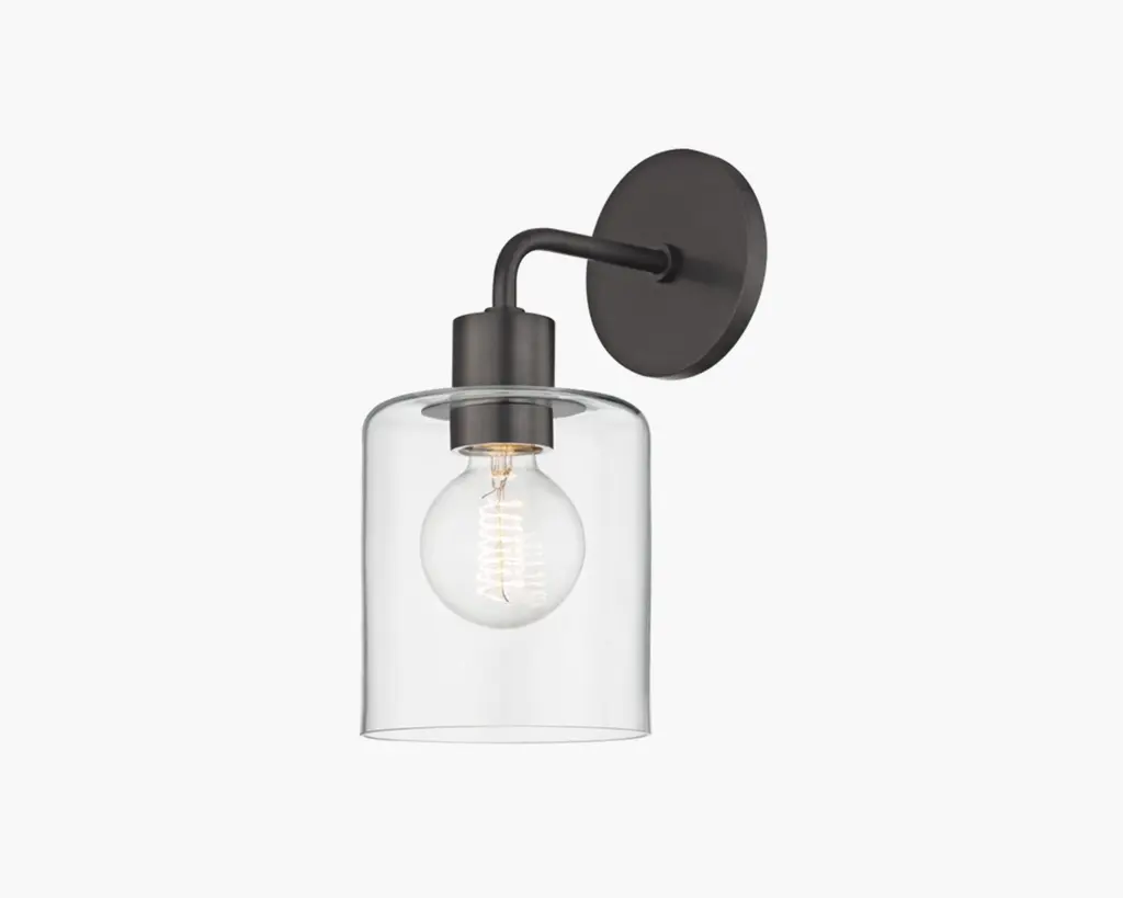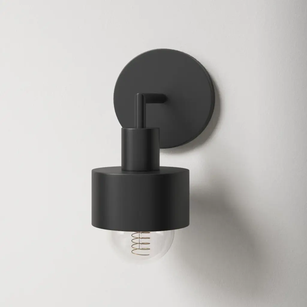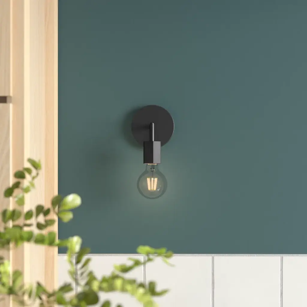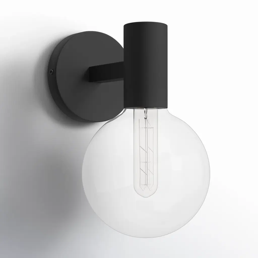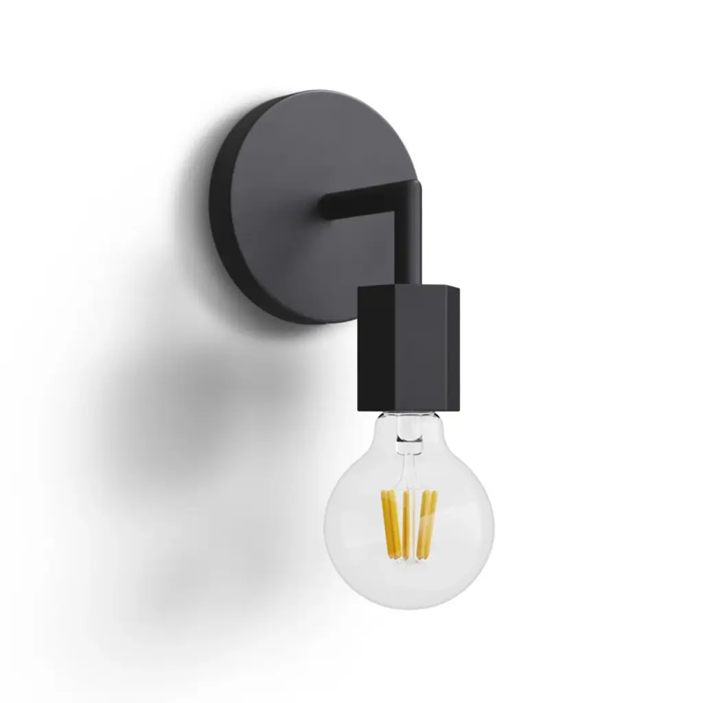 "Light it up!" This dimmable armed sconce brings an industrial flair to any room in your home. Built from quality wrought iron, the circular backplate and sturdy arm showcase a unique hexagonal socket. The exposed bulb design is a true nod to edgy appeal while maintaining a warm, inviting glow. Plus, you can install it in damp areas, perfect for those steamy bathrooms. So why not brighten your space with this versatile lighting solution? Just remember, the bulb's not included.