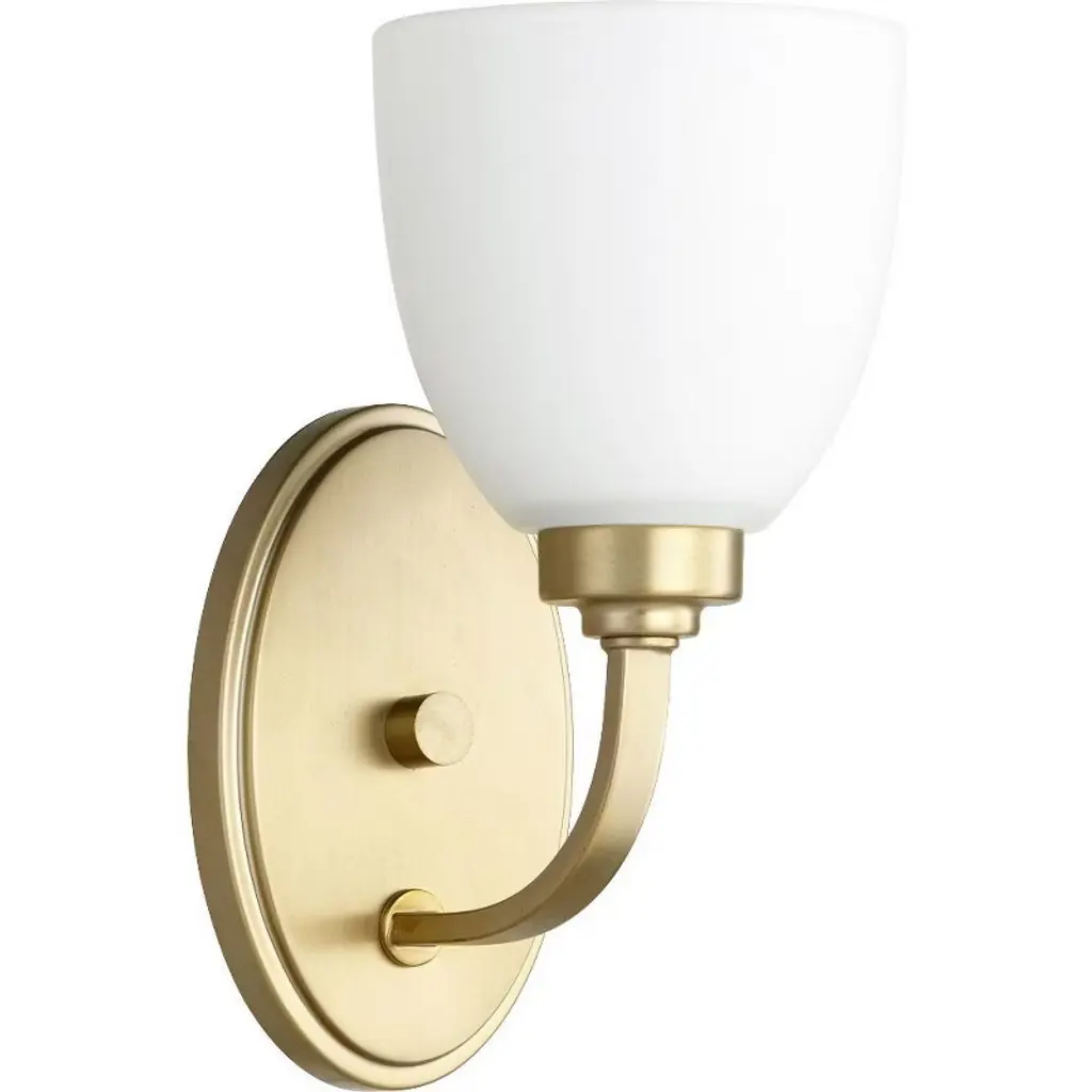 Simple design for versatility. The Jolie Wall Sconce from Kichler is a beautiful light fixture that’s perfect for illuminating hallways or entryways. Composed out of a simple round backplate with a slender arm curving down and up out of it to hold up the housing unit. The bulbs this product uses LED bulbs with a color temperature of 3,000 kelvin, a soft white glow. This light gets diffused by the satin etched glass so that it fills the room evenly and adequately.