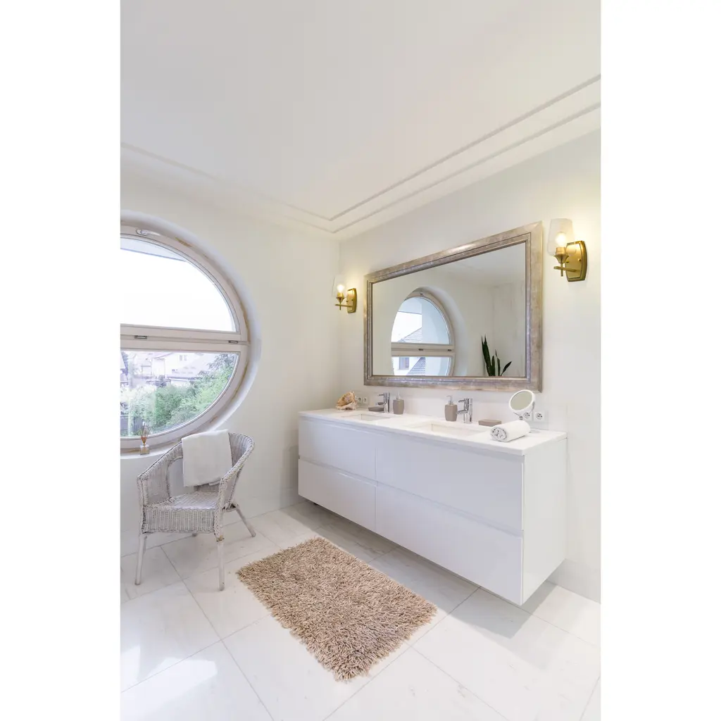Upscale sophistication with a Mid Century Modern vibe tells the story of this elegant one-light wall sconce. A blend of delightful materials offers a stunning large glass shade with rich Olde Brass finish metal, delivering a warm palette that embellishes the look of any transitional space.