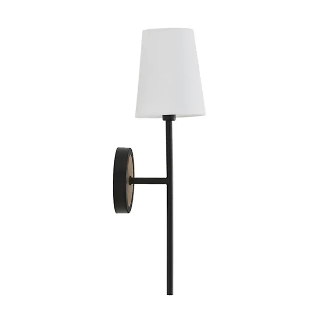 The Jonah Wall Sconce from Capital Lighting blends artisanal modern and transitional design, bringing a captivating ambiance to your space. Crafted from a fusion of metal and wood, this wall sconce boasts an LED that provides candelabra-style lighting, creating a warm and inviting glow. The elegant white fabric shade nicely tempers the light emitted throughout your space. Designed for versatility, Jonah is dimmable when paired with a separately sold ELV dimmer.