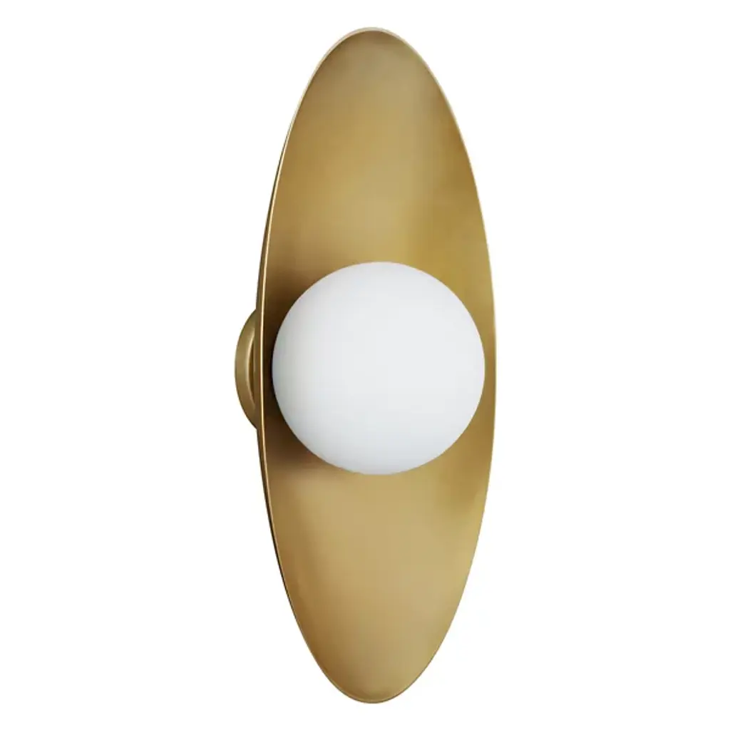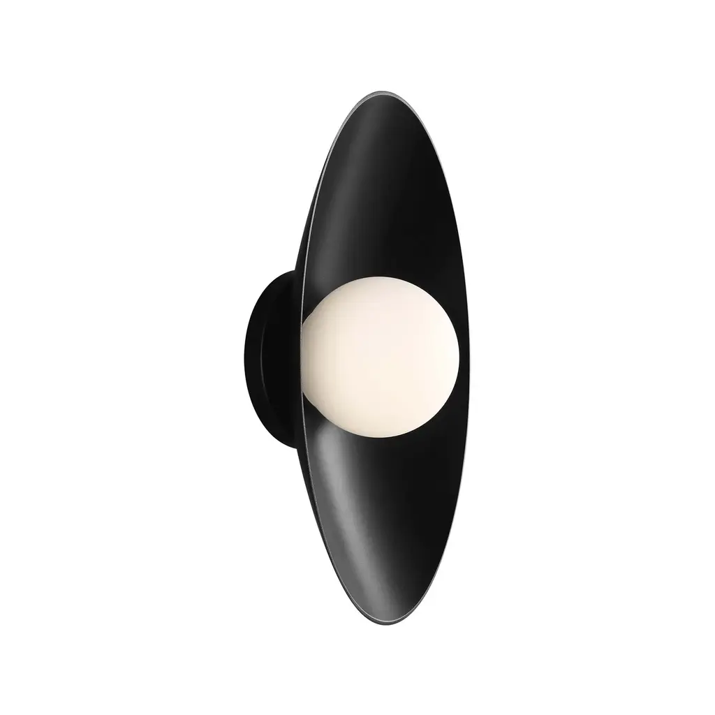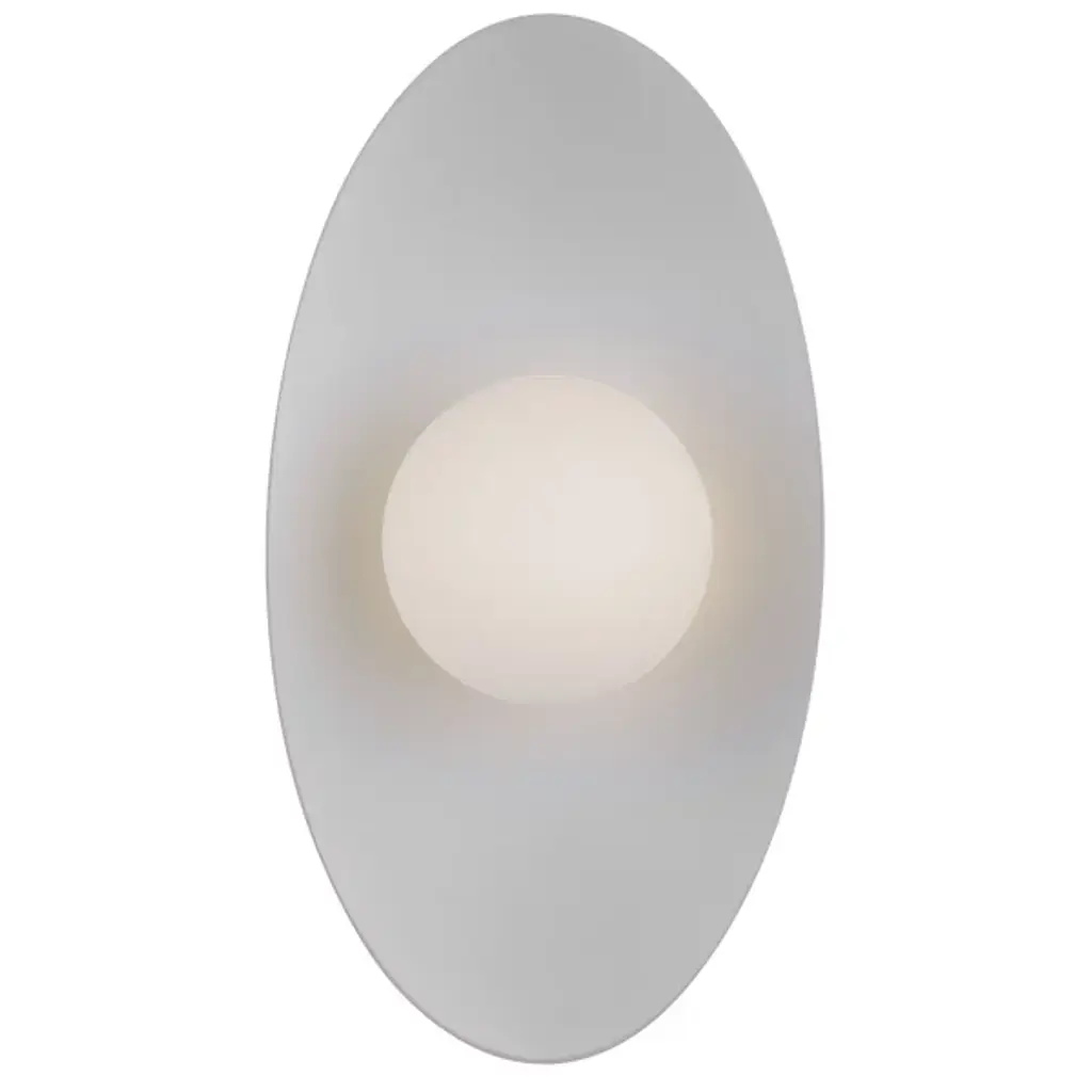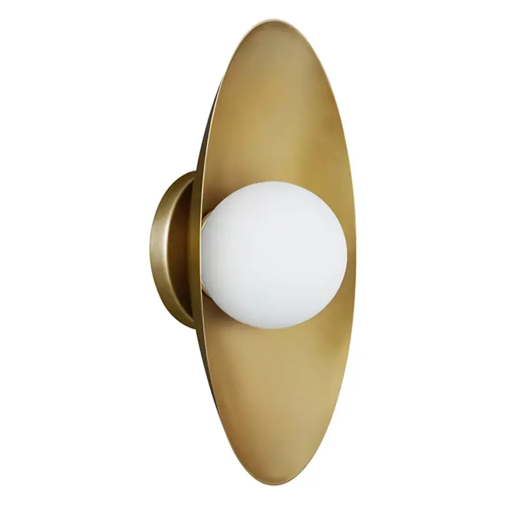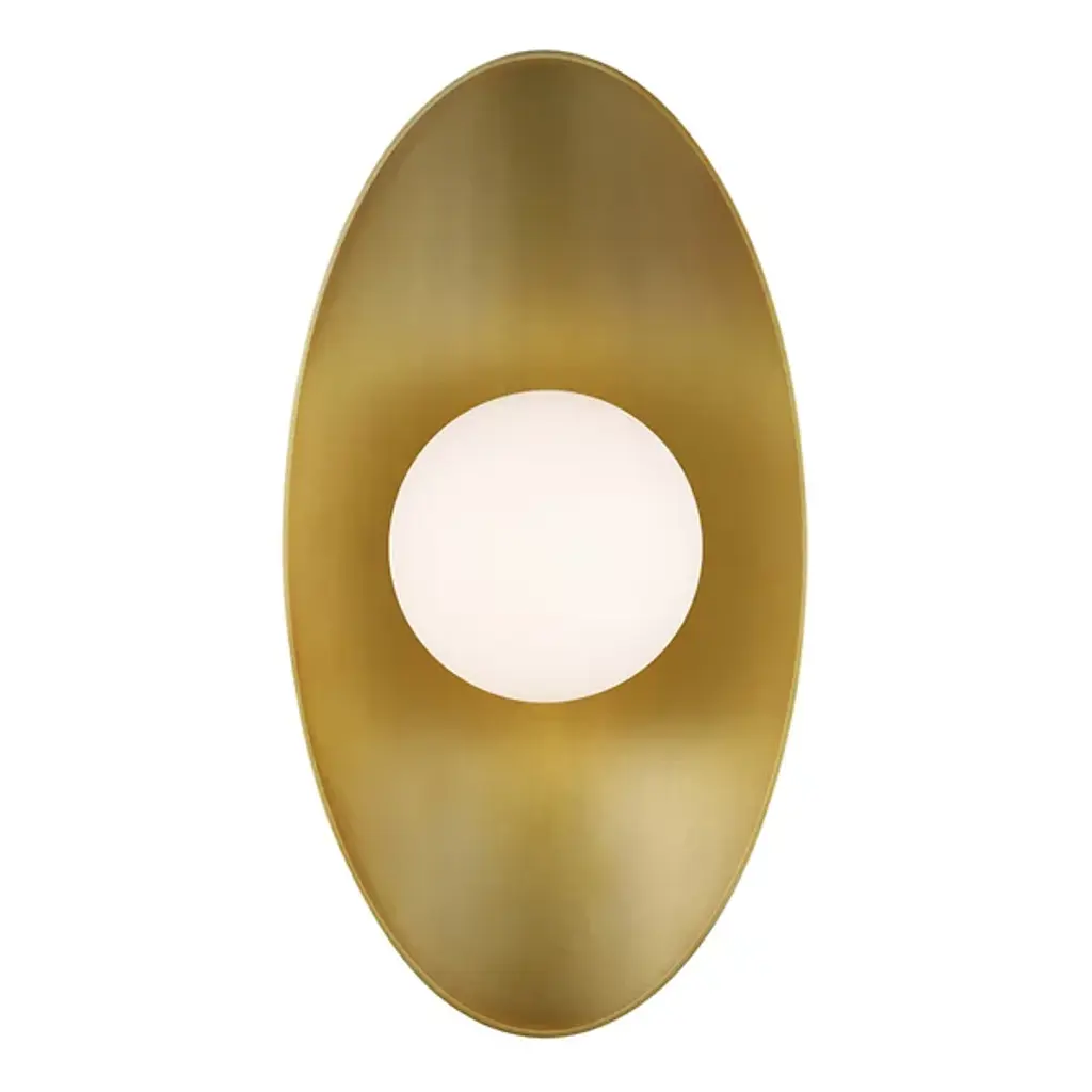 Visual Comfort Modern, formerly known as Tech Lighting,’s Joni Wall Sconce perfectly balances an interior lighting piece that’s meant to look both minimal and progressive in aesthetics. The fixture’s focal point rests on its reflector, which is shaped into a geometric elliptical profile and allows the integrated and energy-efficient LED source to reflect a distinctive glow of light. Fixture is made from aluminum for a definite lightness and durability while the shade is made from glass to allow for diffused lighting. The Joni is best suited for use in areas like hallways, living rooms, and bedrooms.