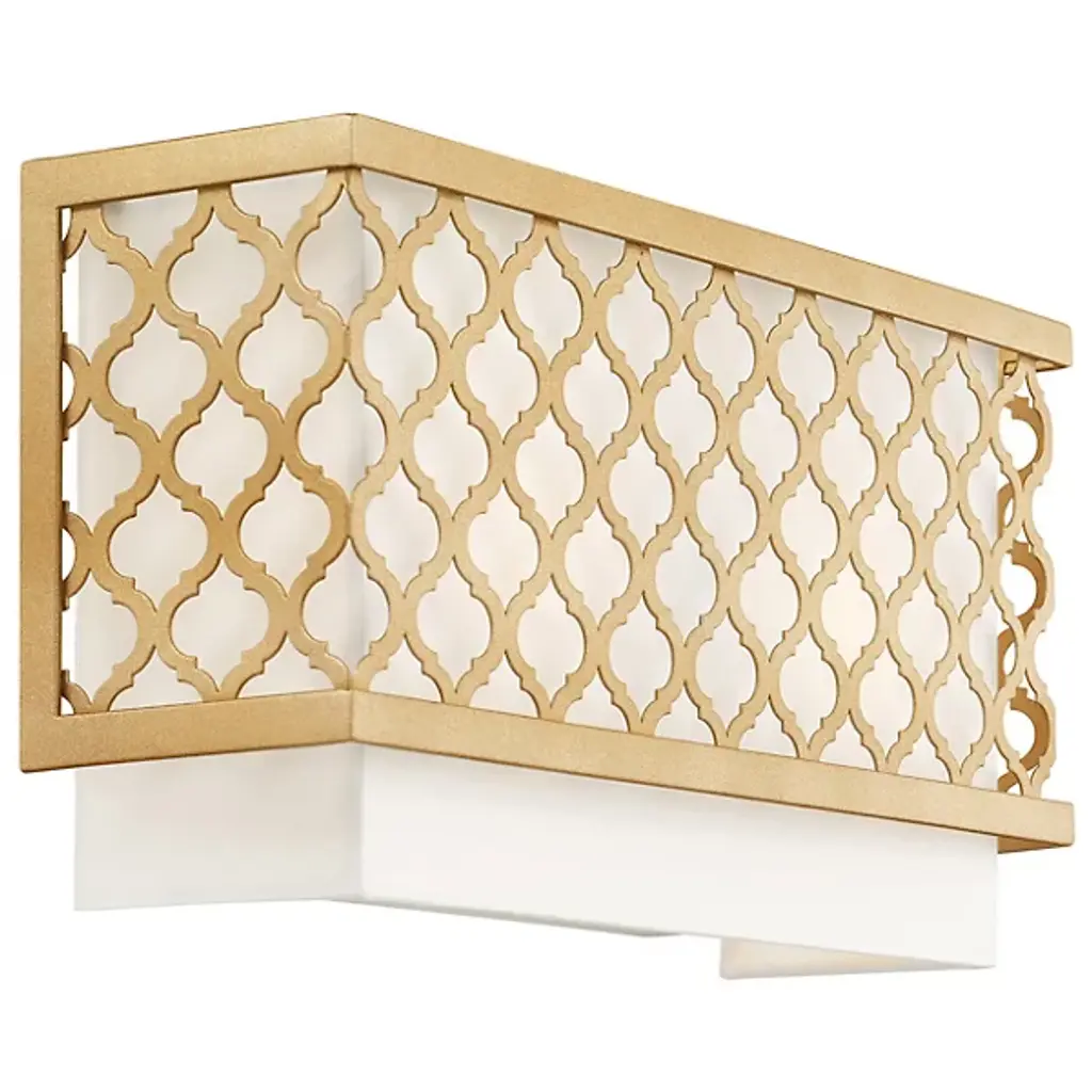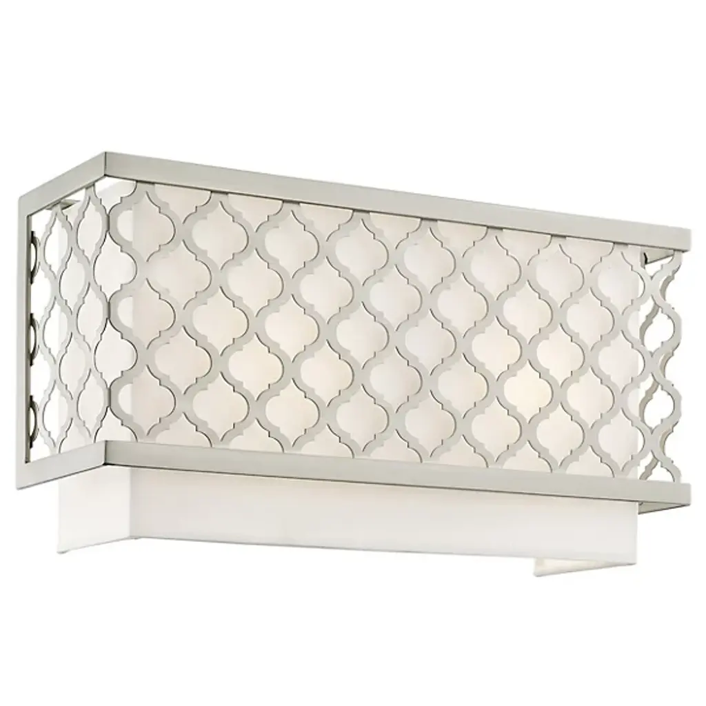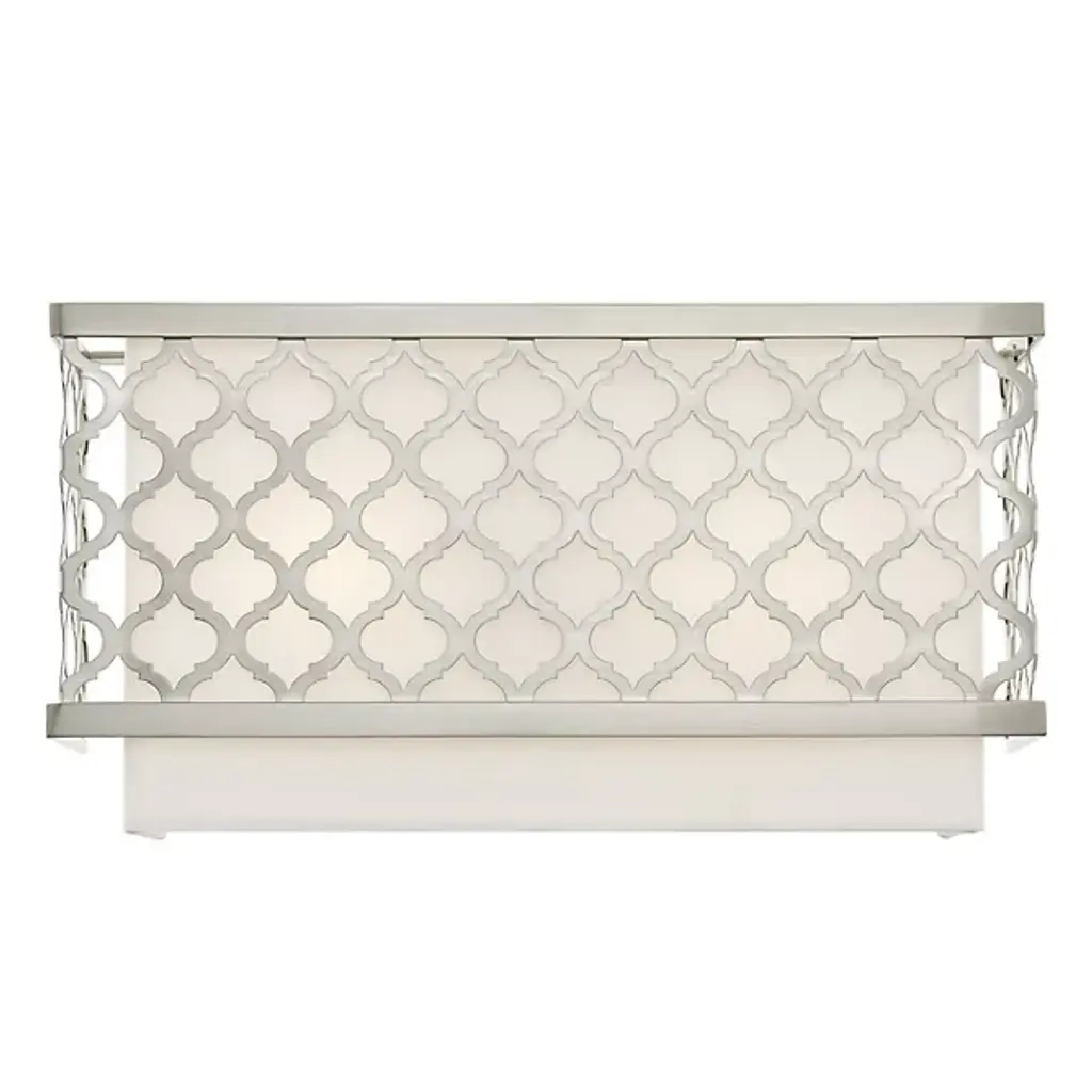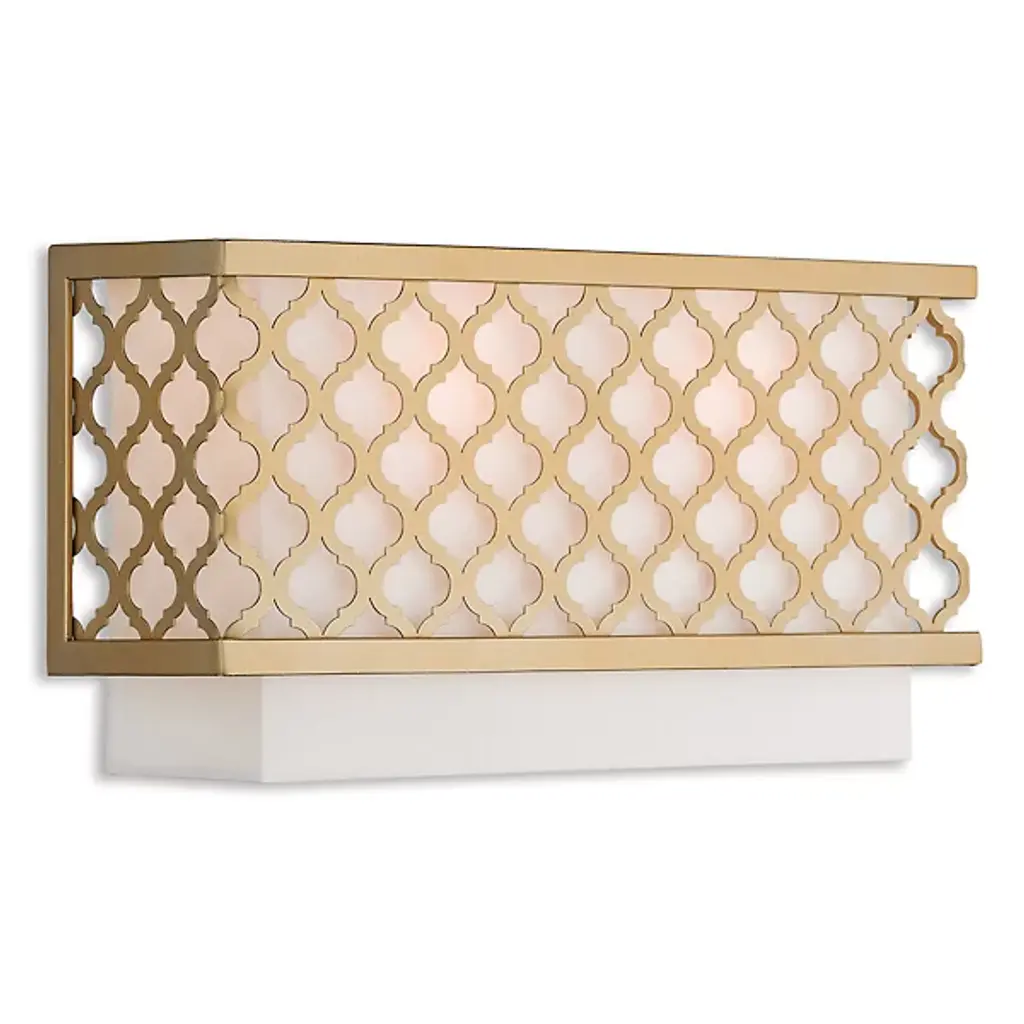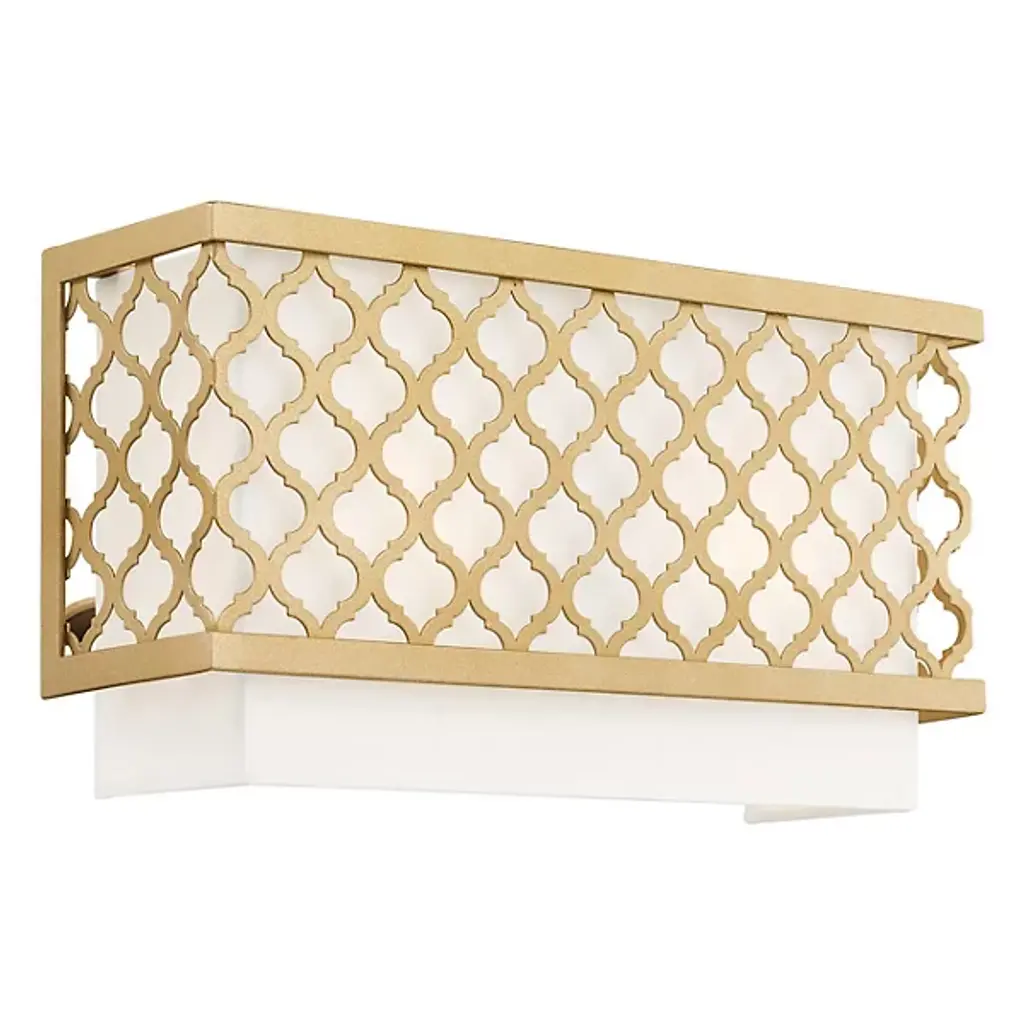Regal refinement. The Jordaine Rectangular Wall Sconce from Alder & Ore dresses up your bare walls with elegant Arabesque visuals that can be appreciated both day and night. Wherever you place it, this geometric sconce satisfies visually as it complements the home’s architectural lines. It breaks up its own modern geometry with an Arabesque pattern on cutout steel. Every curve and pointed detail of the pattern charms thanks to the soft, bright surface of the fabric shade behind. When turned on, light paints the shade and the back wall a warm hue. Light filters out to create a rich, memorable ambiance.