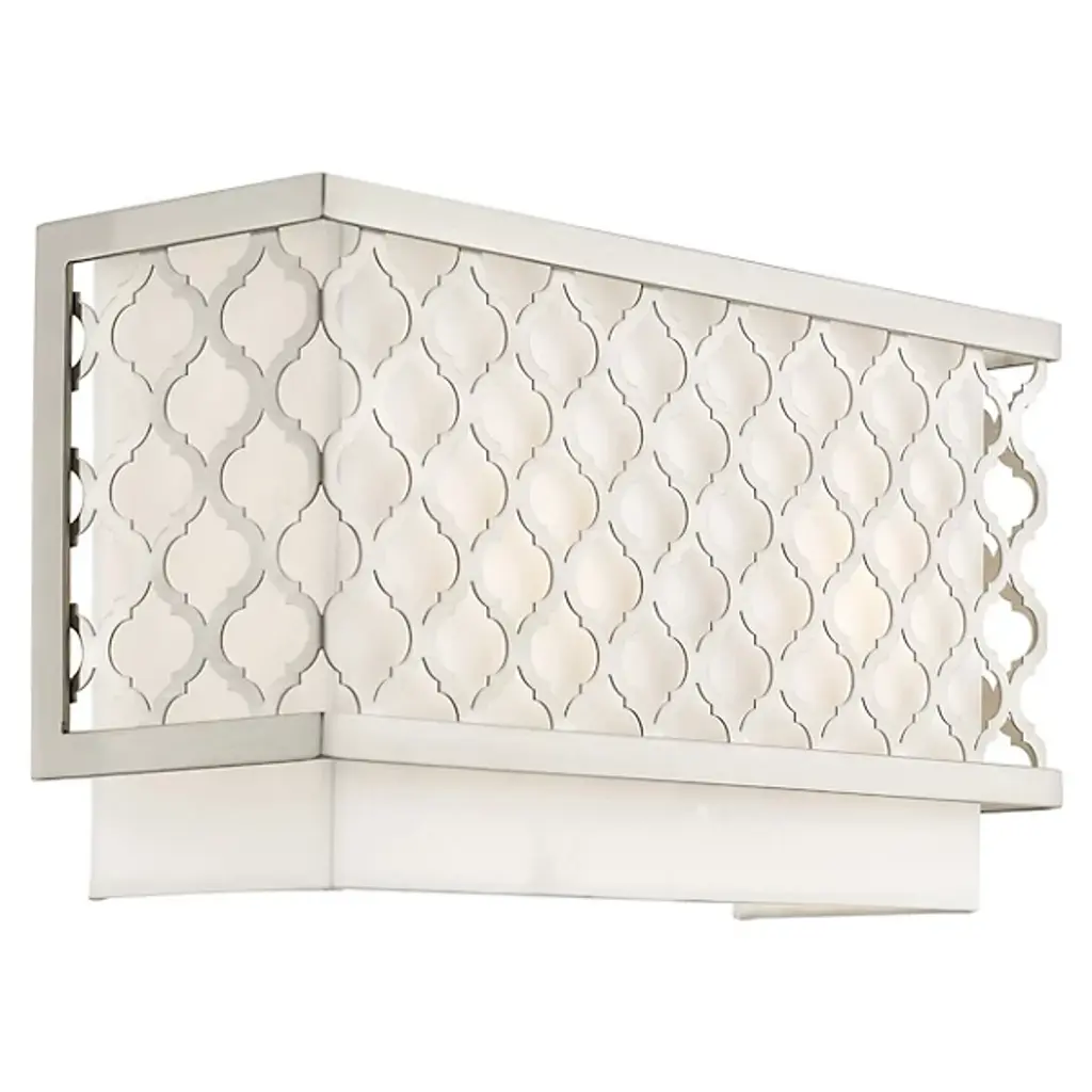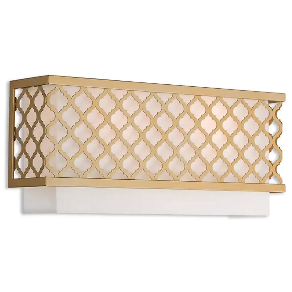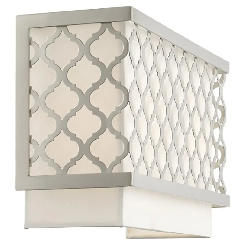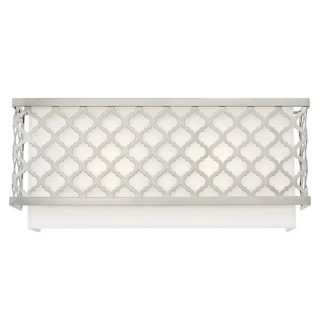 Regal refinement. The Jordaine Rectangular Wall Sconce from Alder & Ore dresses up your bare walls with elegant Arabesque visuals that can be appreciated both day and night. Wherever you place it, this geometric sconce satisfies visually as it complements the home’s architectural lines. It breaks up its own modern geometry with an Arabesque pattern on cutout steel. Every curve and pointed detail of the pattern charms thanks to the soft, bright surface of the fabric shade behind. When turned on, light paints the shade and the back wall a warm hue. Light filters out to create a rich, memorable ambiance.