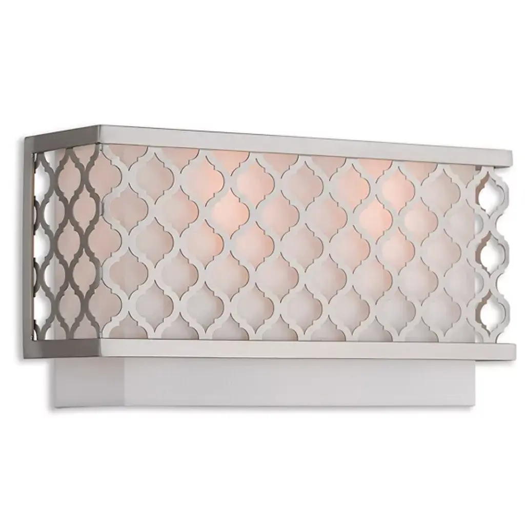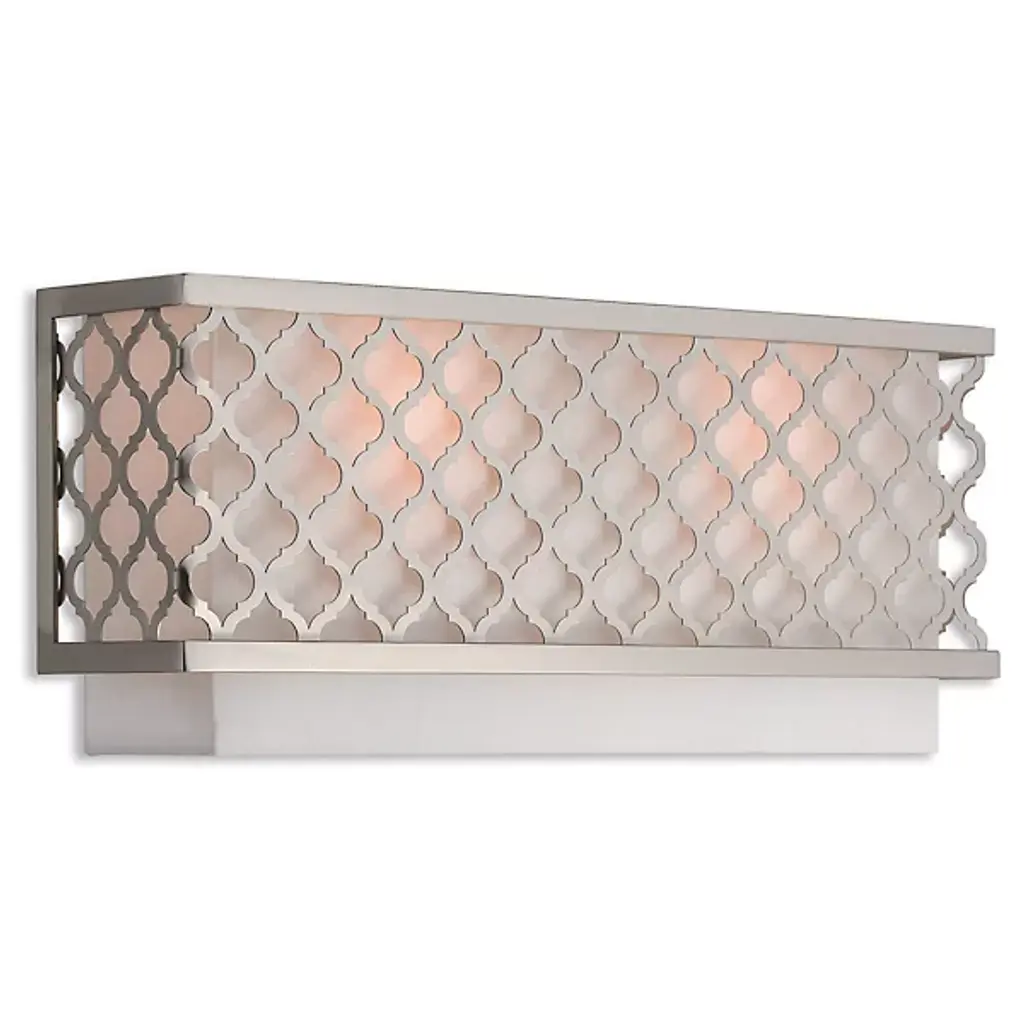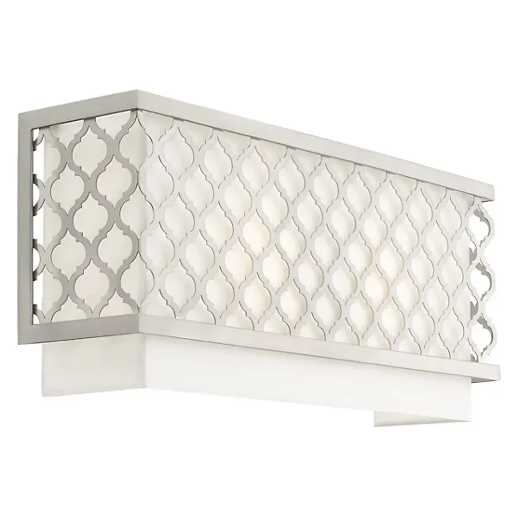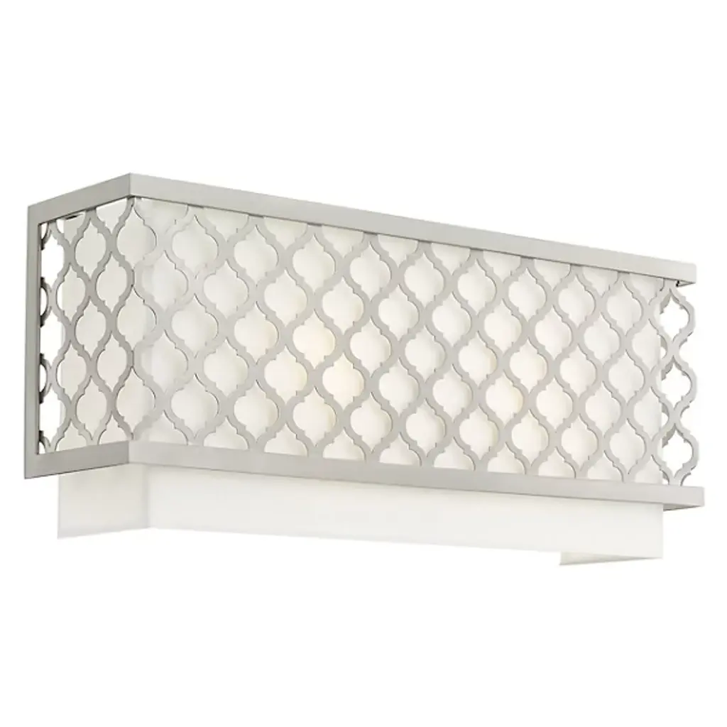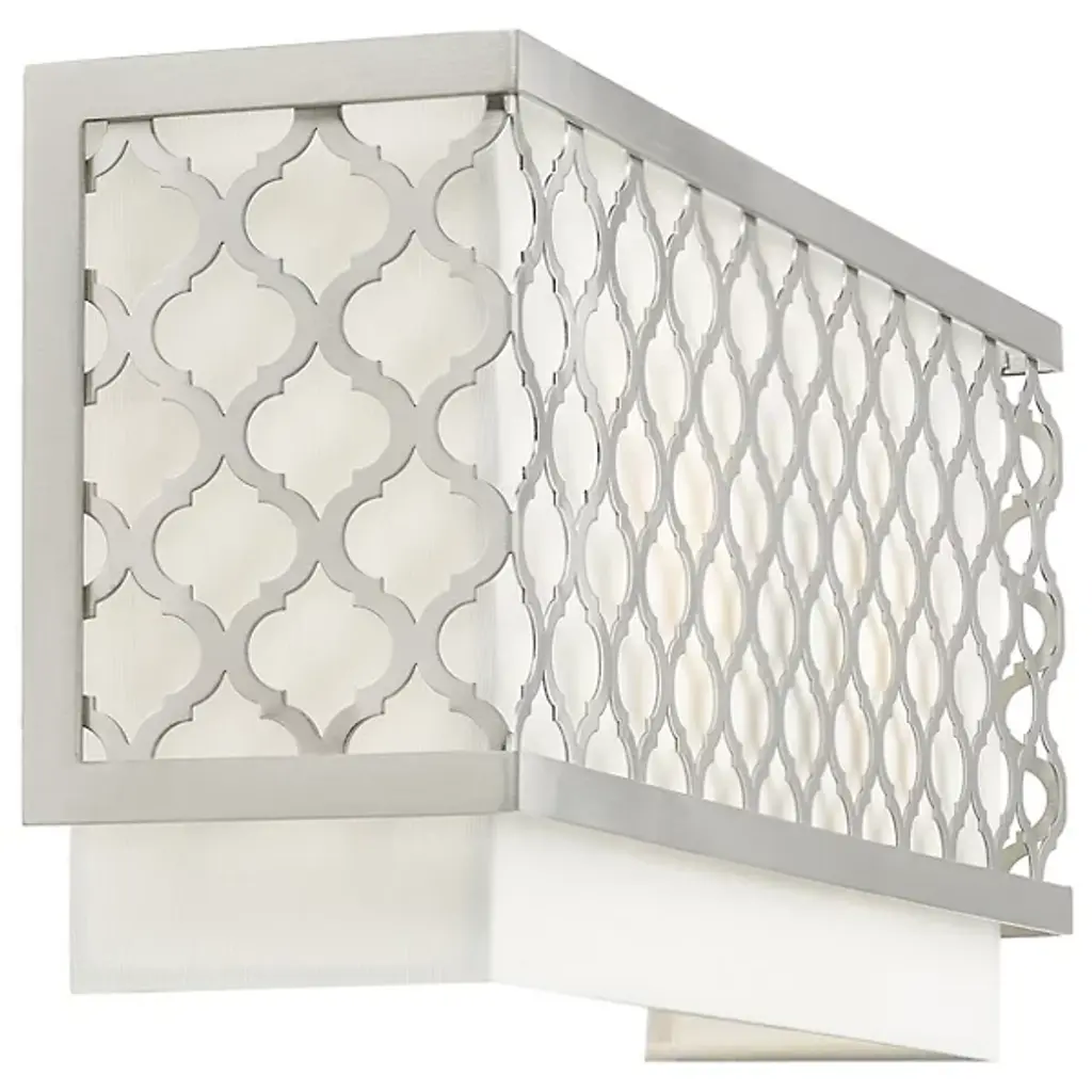Regal refinement. The Jordaine Rectangular Wall Sconce from Alder & Ore dresses up your bare walls with elegant Arabesque visuals that can be appreciated both day and night. Wherever you place it, this geometric sconce satisfies visually as it complements the home’s architectural lines. It breaks up its own modern geometry with an Arabesque pattern on cutout steel. Every curve and pointed detail of the pattern charms thanks to the soft, bright surface of the fabric shade behind. When turned on, light paints the shade and the back wall a warm hue. Light filters out to create a rich, memorable ambiance.