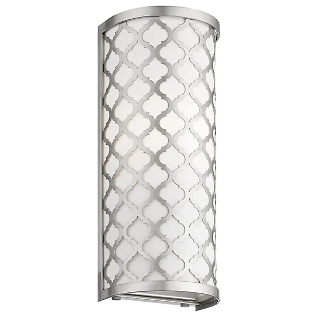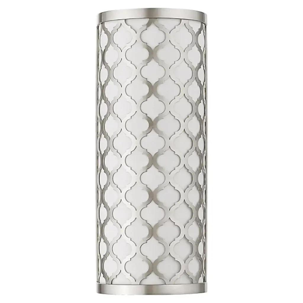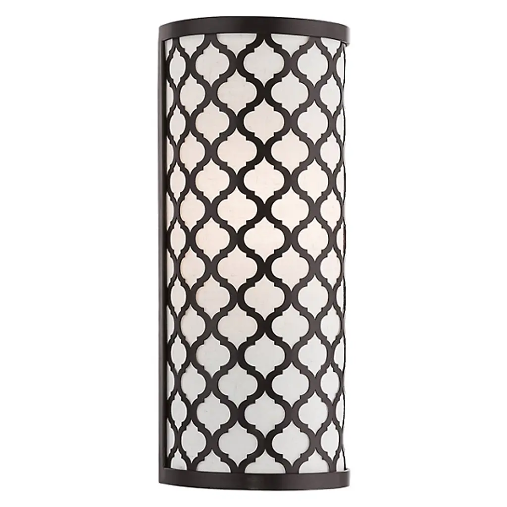 Refined design with a warm, mysterious character. Enhance your home’s key architectural features with the alluring Arabesque visuals of the Jordaine Wall Sconce from Alder & Ore. As a transitional design, the sconce reveals its modern side with a clean half-cylindrical form and its traditional side with an ornate pattern. Crafted from metal, the cutout exterior frame’s Arabesque pattern charms in its repeating curves. A fabric shade enhances the silhouette of the pattern as it mellows the brilliant light for your viewing pleasure. The sconce’s fabric-filtered light glazes the wall and radiates out as an intimate ambient glow.