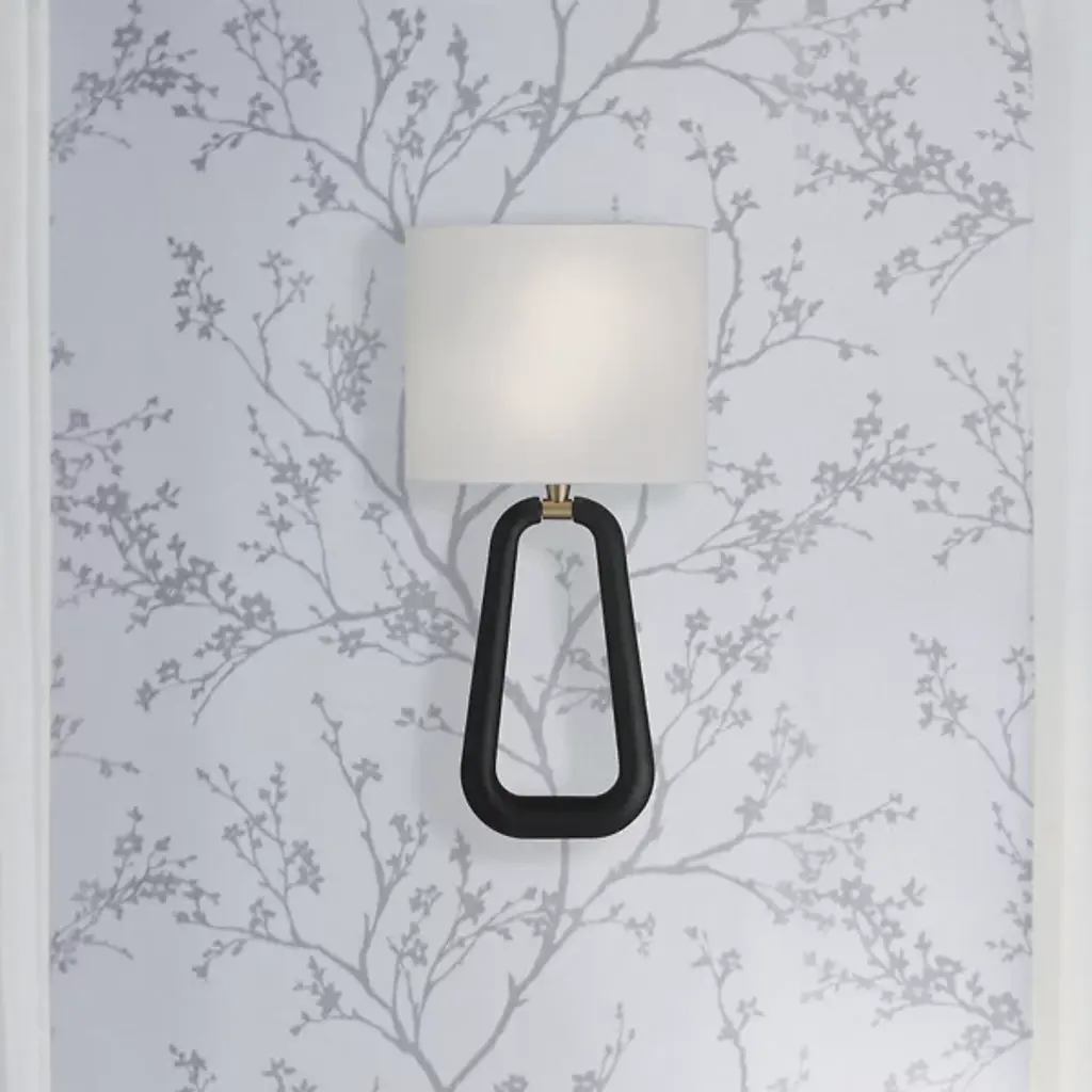 The Jori Wall Sconce from Crystorama combines playful design with modern sophistication, featuring a color-coated abstract resin ring that gracefully shifts from slim to bold, adding visual depth. A luxurious silk shade softens the light, while gold accents highlight the connection between the ring and the back plate. With its open form and vibrant hues, it brings a lively, energetic touch to any space, making it a standout fixture in contemporary interiors and a bold statement in stylish décor.