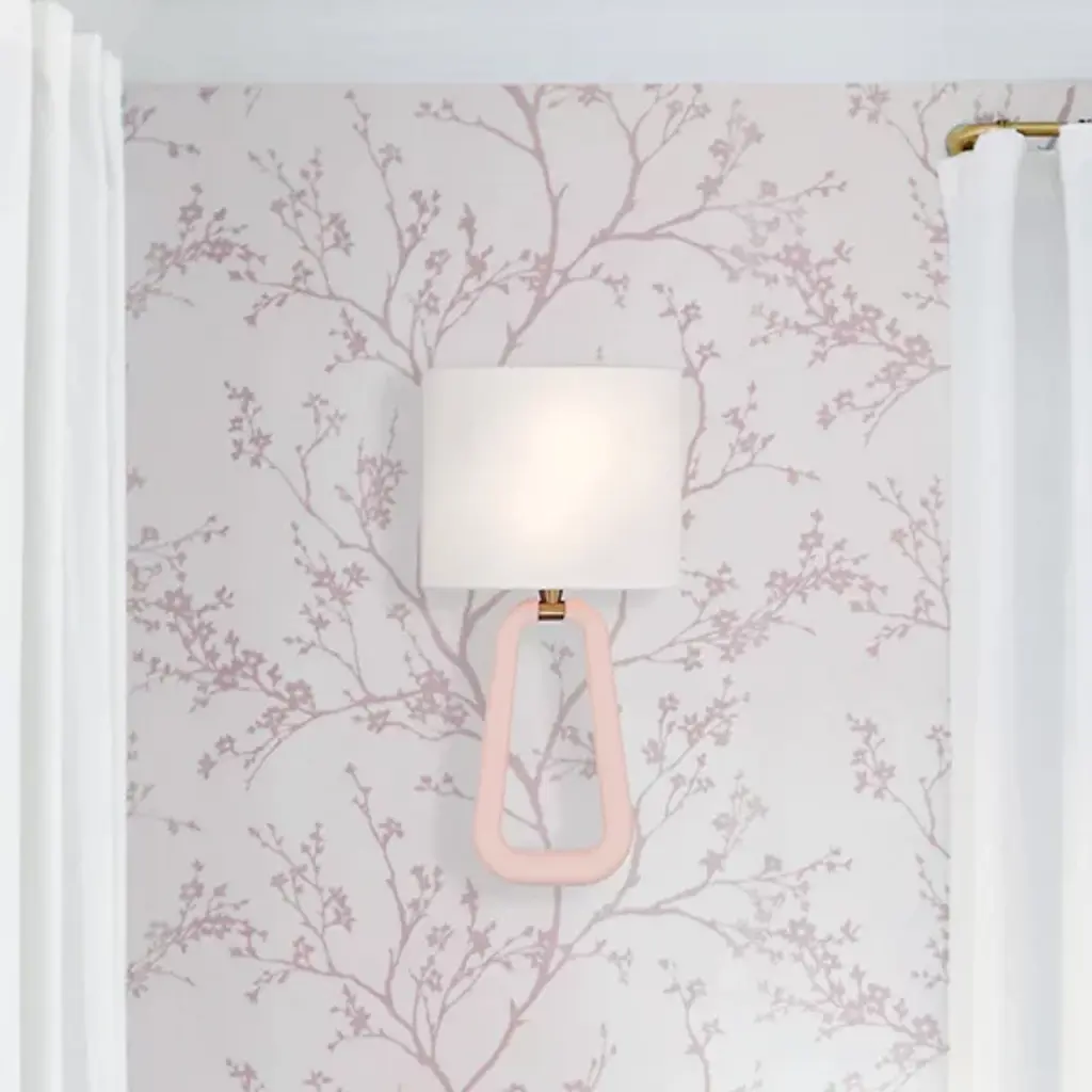 The Jori Wall Sconce from Crystorama combines playful design with modern sophistication, featuring a color-coated abstract resin ring that gracefully shifts from slim to bold, adding visual depth. A luxurious silk shade softens the light, while gold accents highlight the connection between the ring and the back plate. With its open form and vibrant hues, it brings a lively, energetic touch to any space, making it a standout fixture in contemporary interiors and a bold statement in stylish décor.