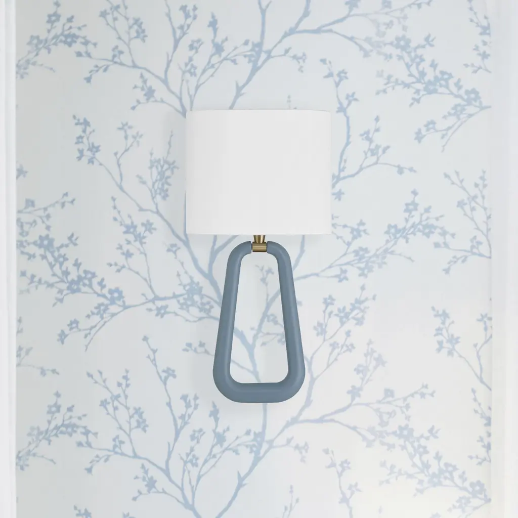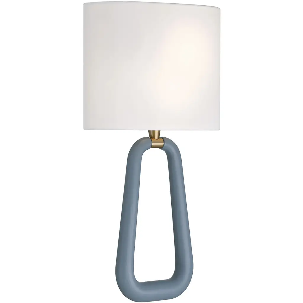 The Jori collection is a striking blend of playful design and modern elegance. It features a color-coated abstract resin ring that transitions from a slender form to a thicker profile, creating visual intrigue. The fixture is adorned with a silk shade and accented with gold where the ring meets the back plate. The open design and vibrant colors infuse any space with a light, dynamic energy, making it a standout piece in contemporary decor.