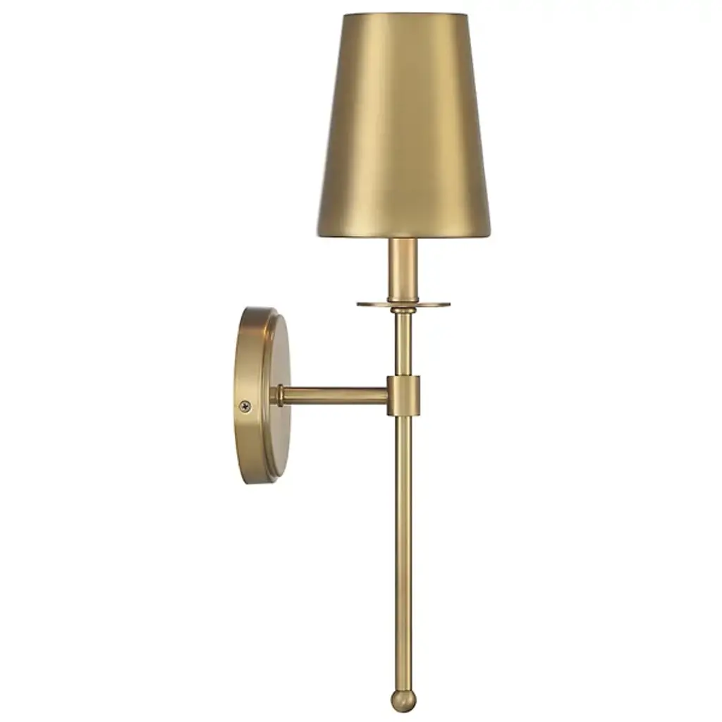 The Josh Wall Sconce from Alder & Ore promises to infuse any room with a captivating luminance. Every detail exudes metallic marvel, from its brass metal shade to the natural brass-finished stem. This sconce adds a touch of bright drama to your space, accentuating its allure with the warm glow of natural brass. Its sleek design and radiant finish make it the perfect choice for illuminating your interior with a dash of metallic charm and elegance.