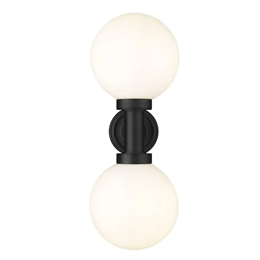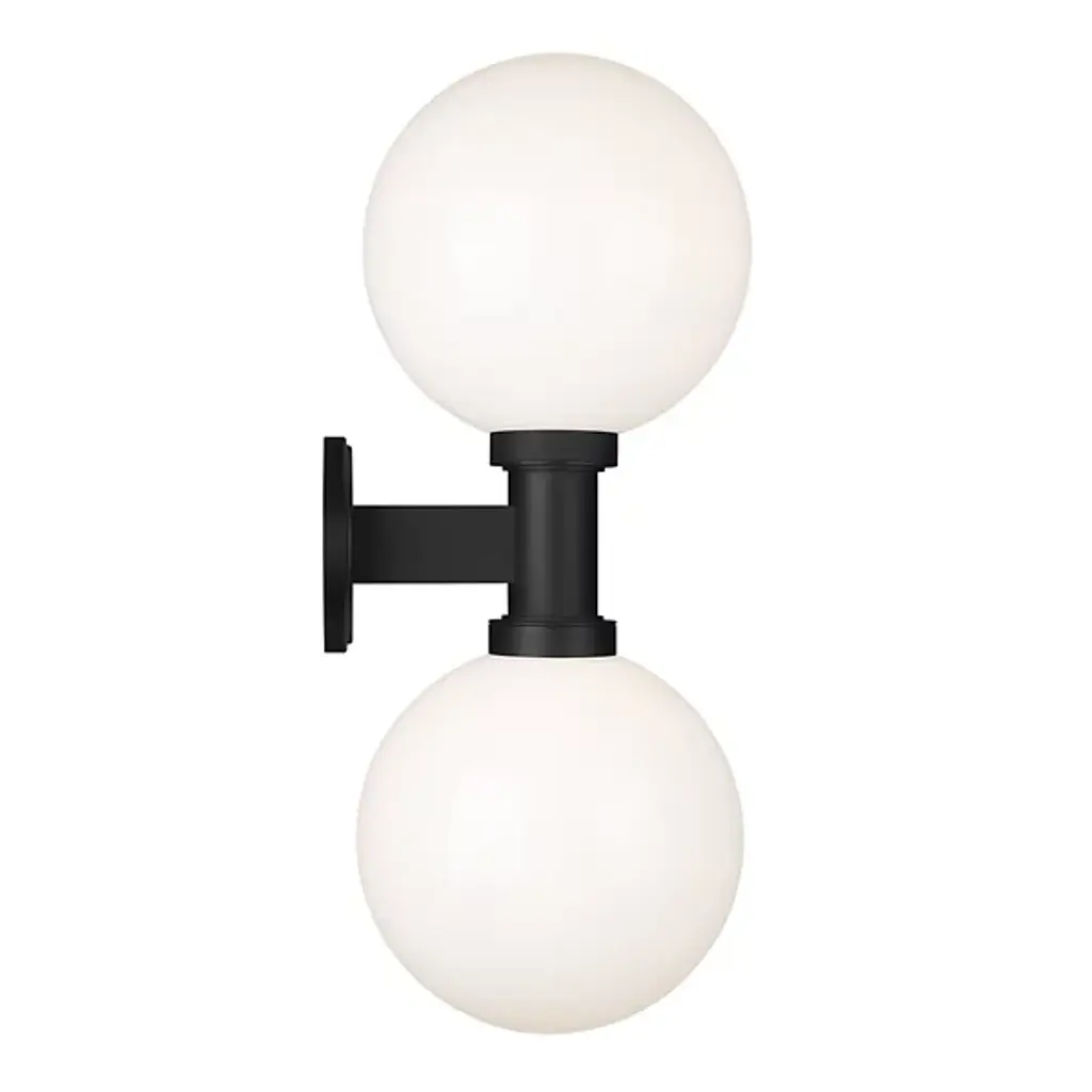 Elevate your outdoor spaces into captivating showcases with the Josie 2-Light Outdoor Wall Sconce by Alder & Ore. This fixture seamlessly blends mid-century modern whimsy with a dash of art deco attitude. Opal white glass globe shades frame a sleek aluminum frame, creating a striking visual contrast. Illuminate your patio, porch, or deck with style and charm using this retro-inspired sconce, making your outdoor area a welcoming and chic space for any occasion.