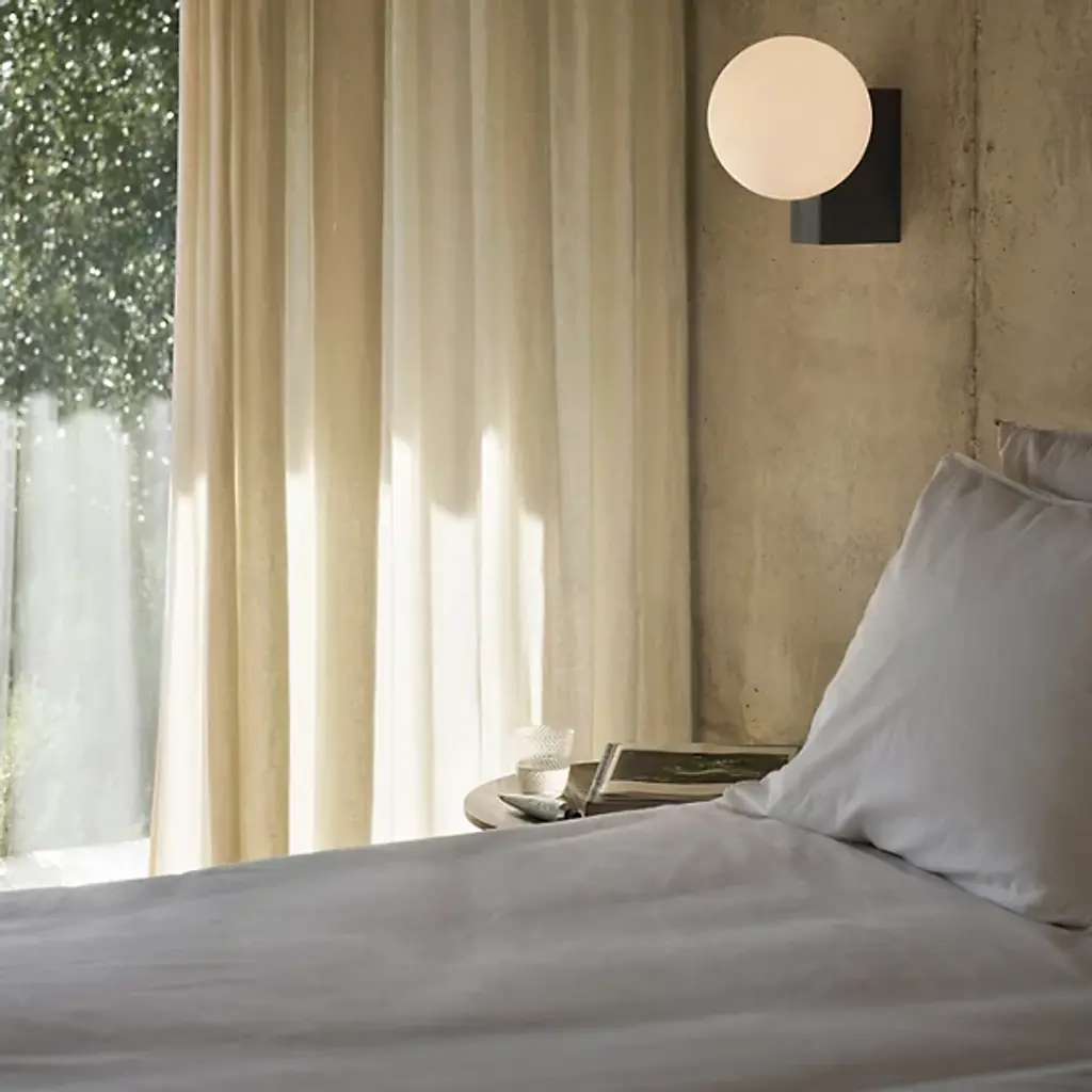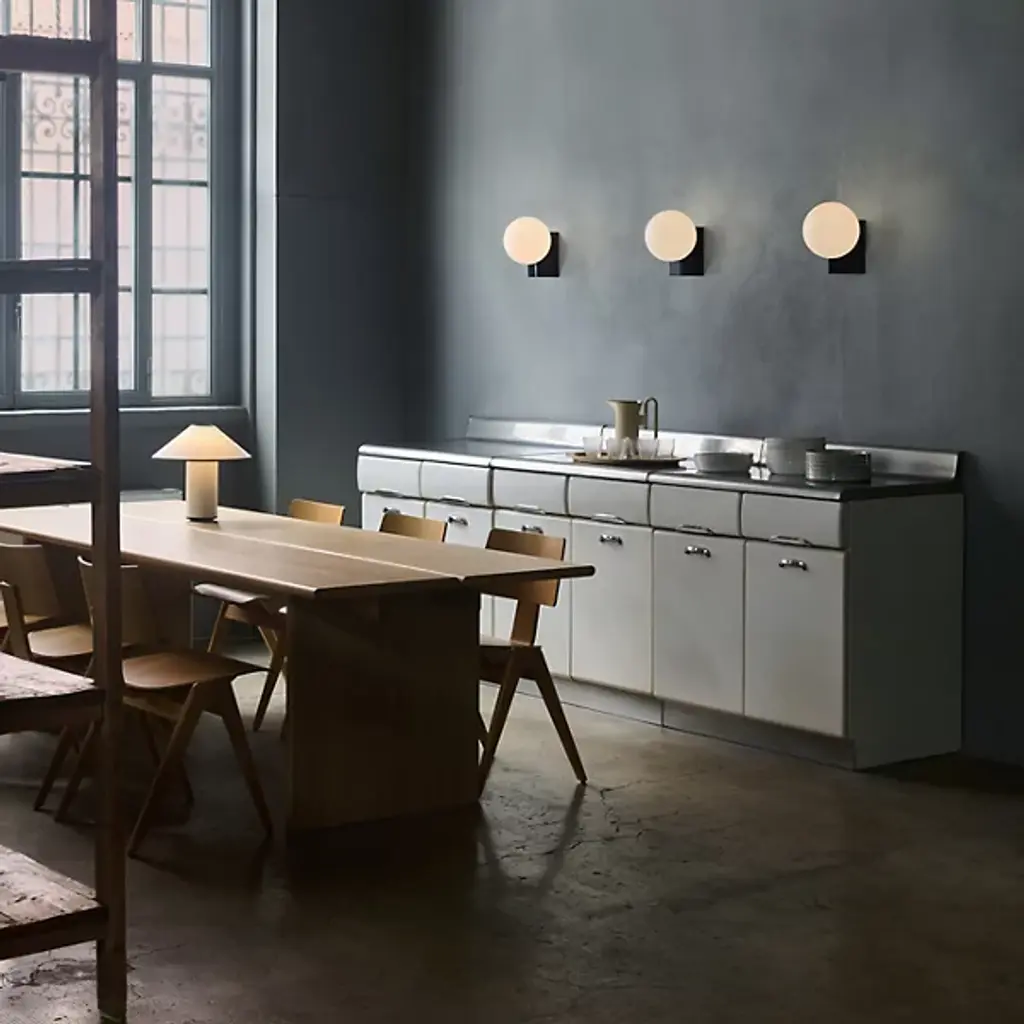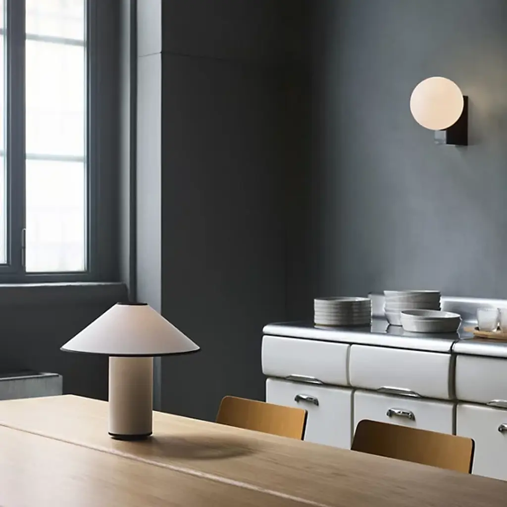 The Journey Wall Sconce from &Tradition enchants with subtle simplicity, adding a memorable and soothing character to indoor walls. Designed by Signe Hytte, a multitalented creator focused on getting rid of unnecessary details while keeping focus on essential elements, this inspired intersection of angular lacquered steel and translucent glass extends a rectangular body from a wall mount, cradling a spherical glass shade in a cutout corner. The design is meant to evoke the glow of the moon with the considered simplicity of a child’s toy, as Hytte says, “Lighting the way for new thoughts, new beginnings,” each time the lamp casts its ambient glow.