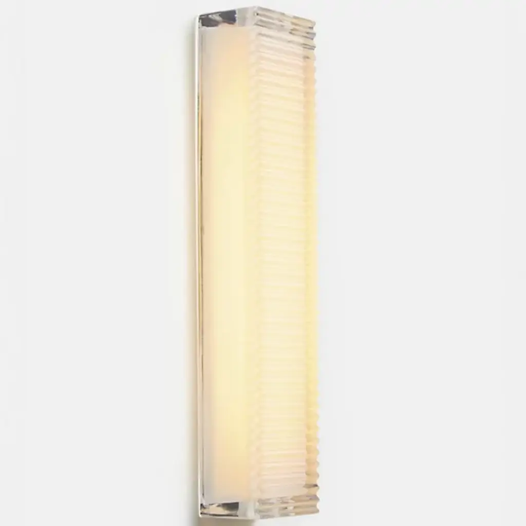 With its rigorous shapes and minimalistic contours, Jud wall lamp honors the aesthetic of Donald Judd. A geometric brass frame holds a translucent shaded glass pane concealing two colored resin filters, whose interaction with the strip LED generates a delicate glow. As a luminescent sculpture, this lamp produces captivating and polychromatic highlights. The lamp is equipped with a single button for powering on and off, which also enables light intensity adjustment when lightly touched and held. Available in different colors.