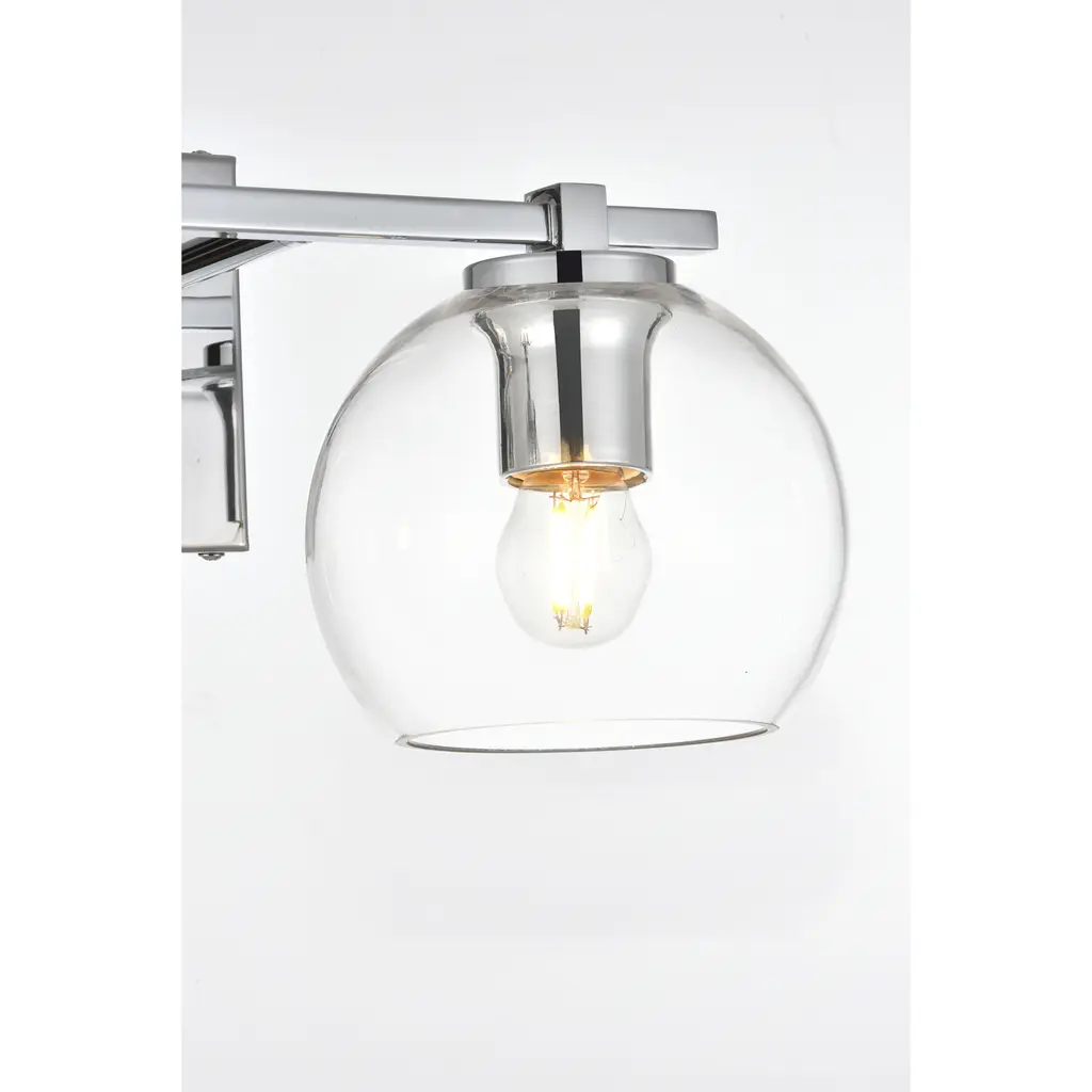 Defined by a sleek metal arm extends to suspend the clear spherical glass shade. A contemporary stunner, it shows off the straight line details from the backplate and the streamline thin metal arm. Compatible with dimmers, so you'll have the right amount of light in any given time of the day. Completely versatile, you can place this wall light as an uplight or downlight. Rated for use in damp locations, this will work perfectly over a vanity in your bathroom.