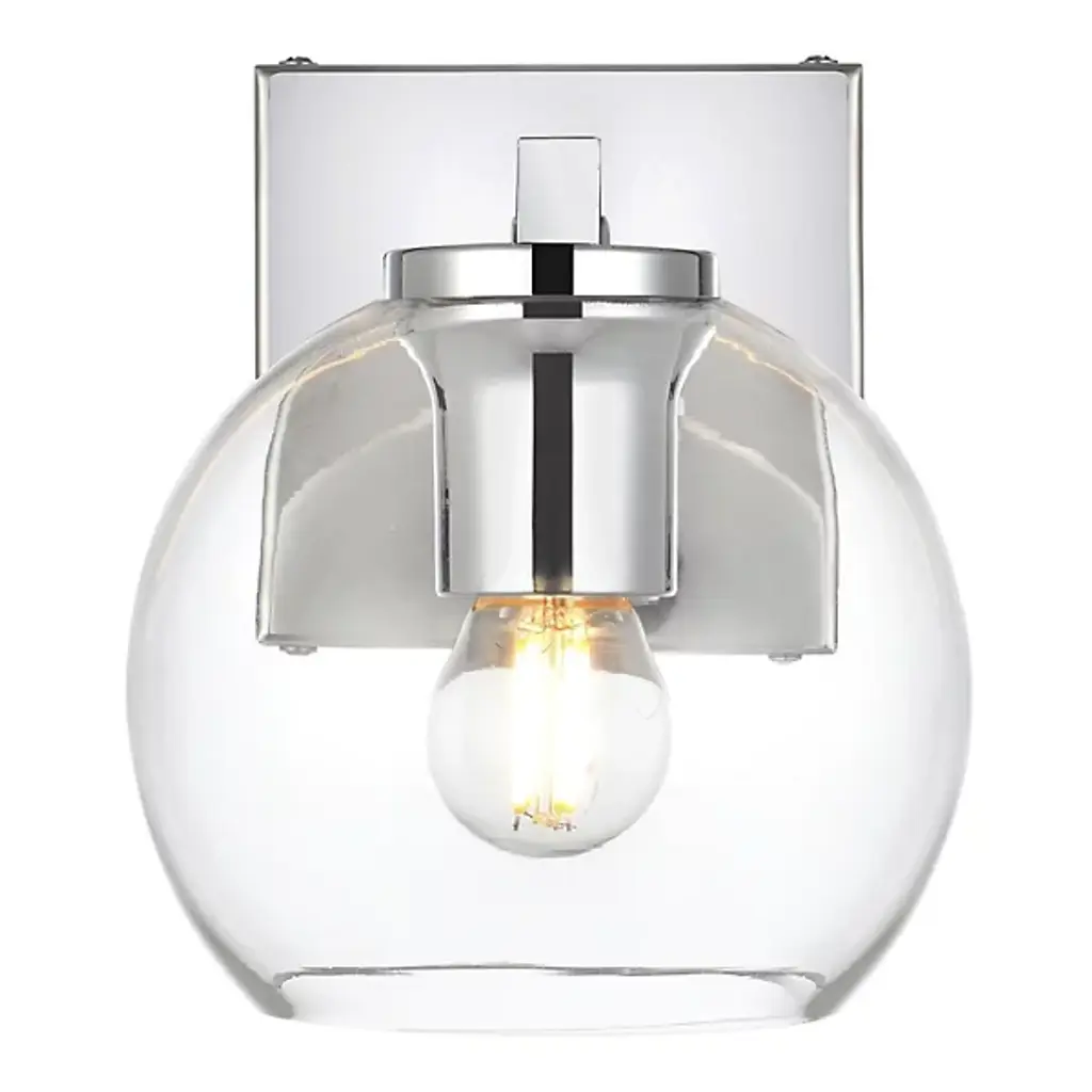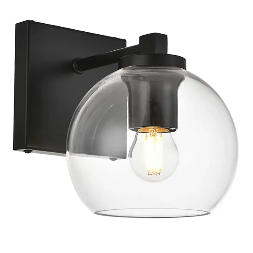 The Juelz Bath Sconce from Elegant Lighting reimagines bathroom lighting with a blend of simplicity and sophistication, bringing a fresh perspective to vanity illumination. The clear glass globe acts as a modern interpretation of a classic bell jar, encasing the light source in a bubble of brilliance. Its versatile design allows for upward or downward installation, catering to diverse styling preferences. The exposed bulb within the sphere adds depth and interest to your bathroom decor.