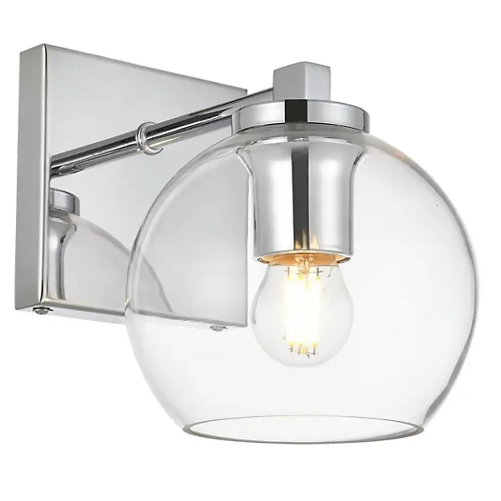 The Juelz Bath Sconce from Elegant Lighting reimagines bathroom lighting with a blend of simplicity and sophistication, bringing a fresh perspective to vanity illumination. The clear glass globe acts as a modern interpretation of a classic bell jar, encasing the light source in a bubble of brilliance. Its versatile design allows for upward or downward installation, catering to diverse styling preferences. The exposed bulb within the sphere adds depth and interest to your bathroom decor.