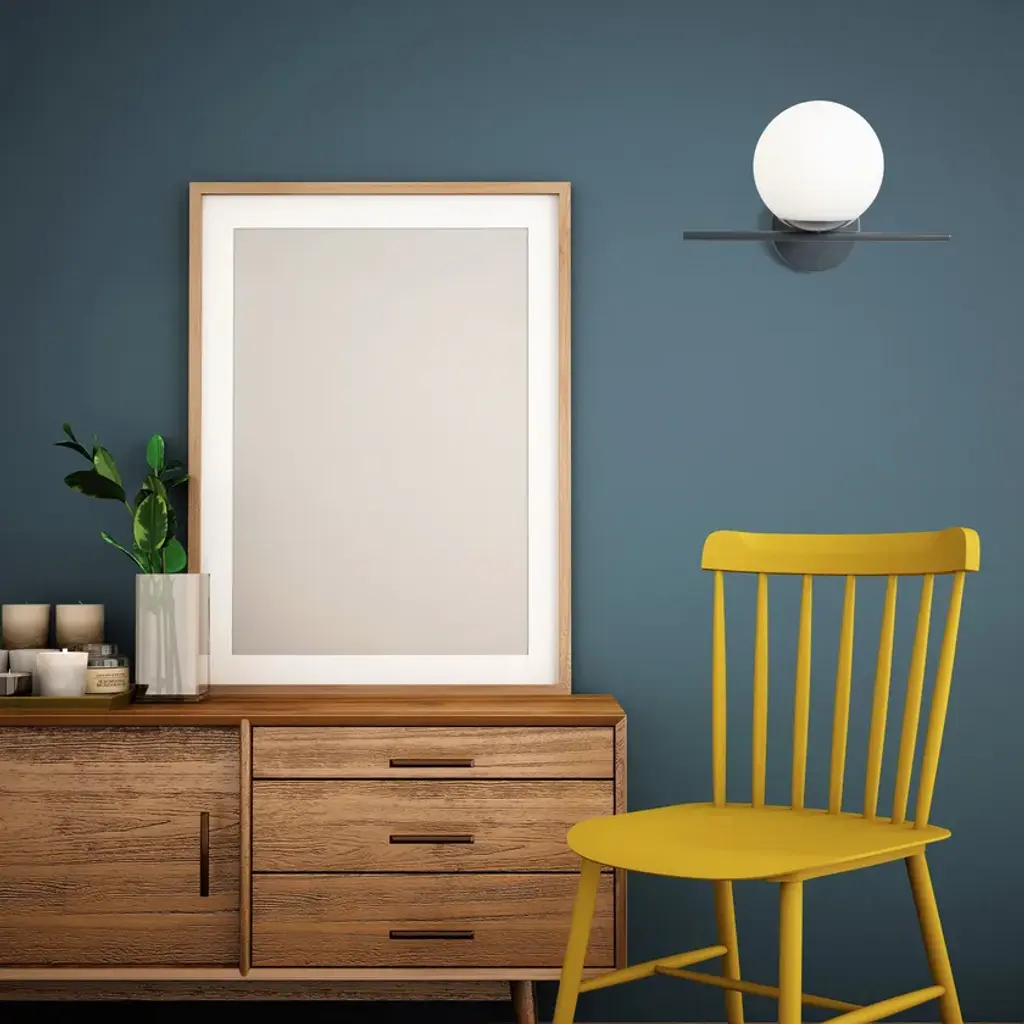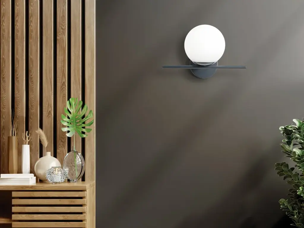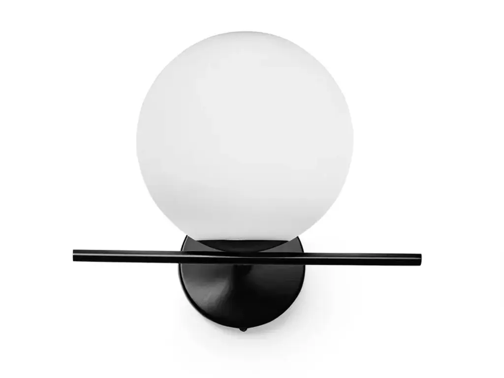 Jugen is a wall lamp made of milky white blown glass with a black painted frame, petrol or brushed brass.Technical information:- Light source: E27- Power1 x max 40w