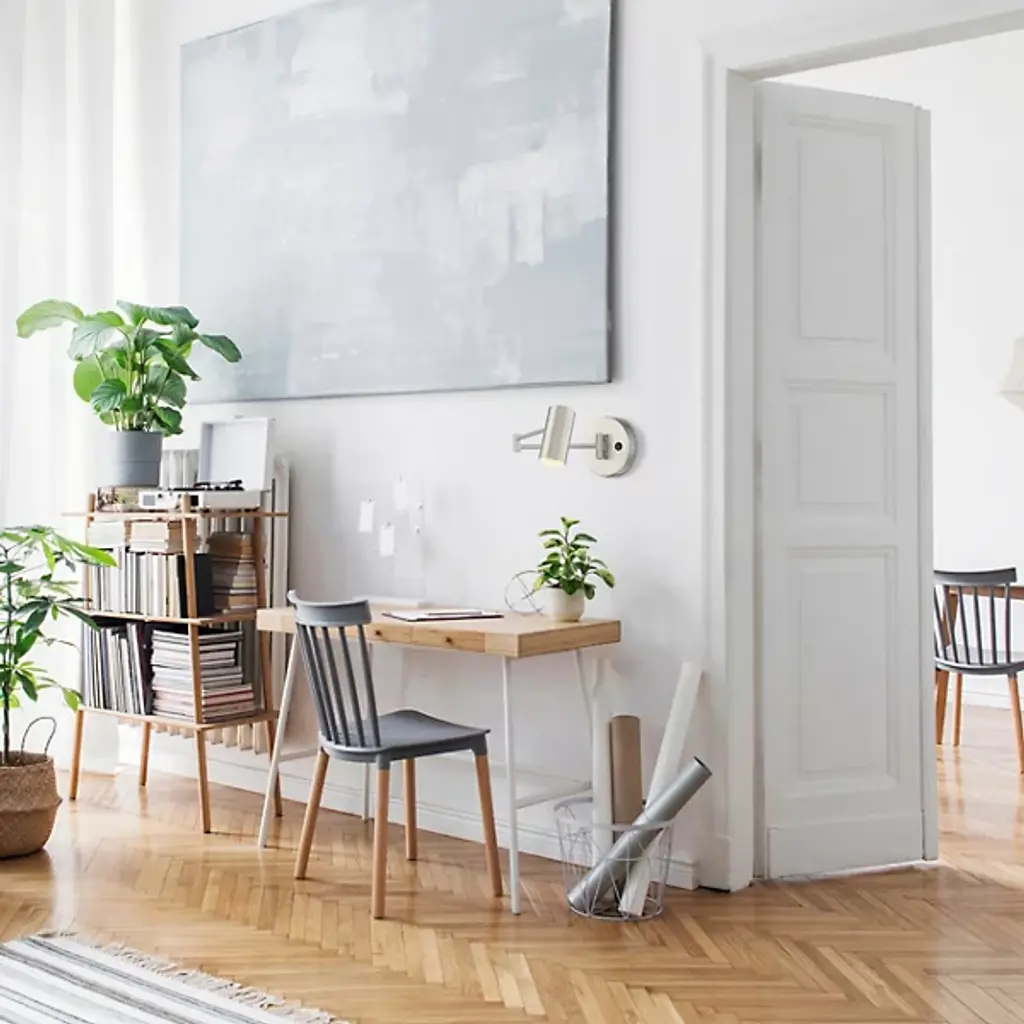 A sleek and sophisticated reading light. Both the name and design of the Juhl LED Reading Wall Sconce by Access Lighting are inspired by the famed Danish Modern designer. It has a cylindrical steel head, which houses a vibrant array of LEDs, at the end of an adjustable swing arm. As functionally versatile as it is stylish, this wall sconce also has an on-off switch on the wall plate for easy control and a pin-up kit if you would rather not hardwire it.