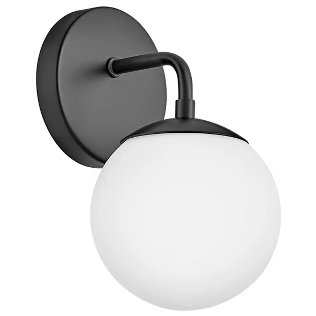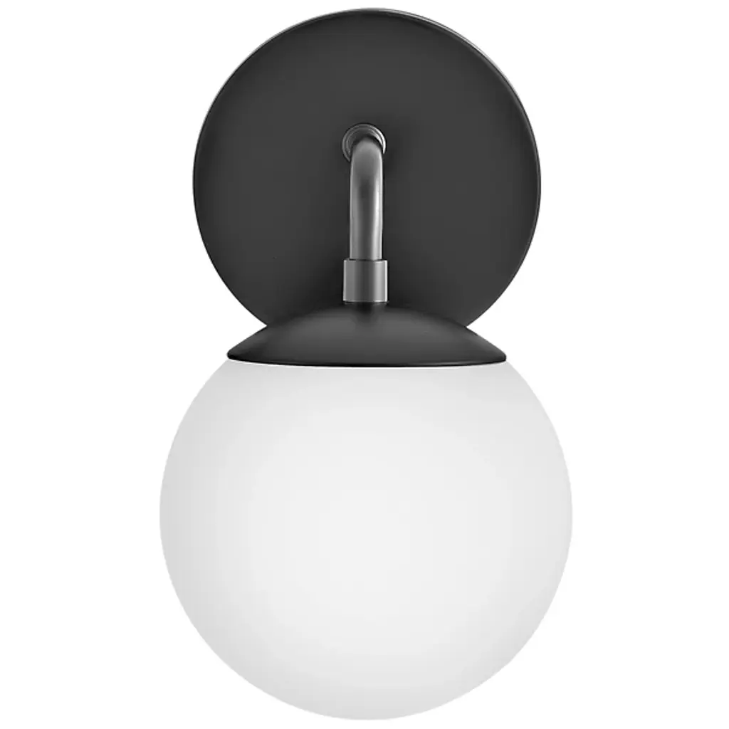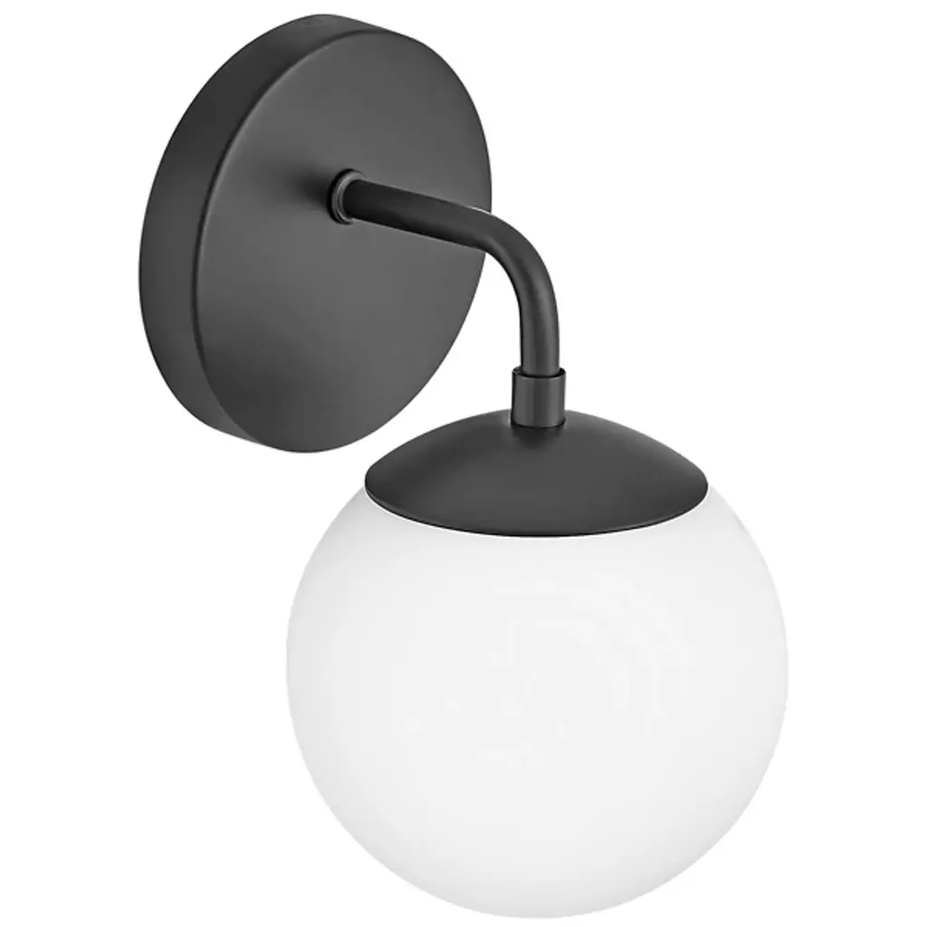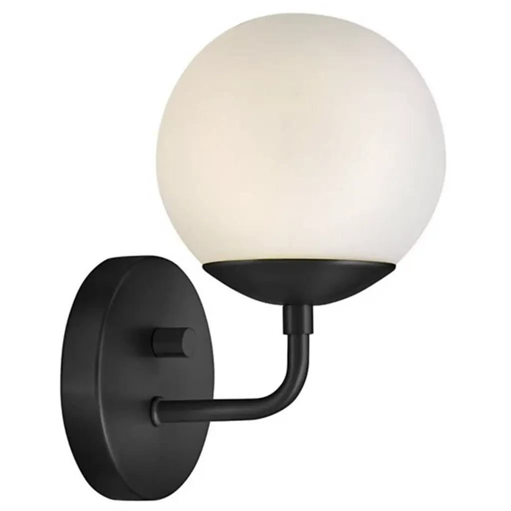 Bring a pleasing modern presence to your walls or hallways with the elegant simplicity of the Julep Wall Sconce from Lark. Retained by a low-profile disc wall plate, it can be mounted up or down and extends a curving arm to a dish-shaped cap surrounding a damp-listed candelabra lamp. Ideal when placed on either side of a bathroom mirror, any excess glare is gentled with ease by a spherical shade of etched opal glass, transmitting a stately, appealing warmth out around the fixture.