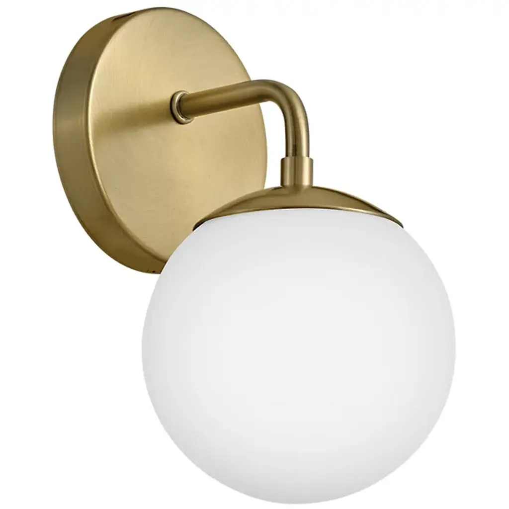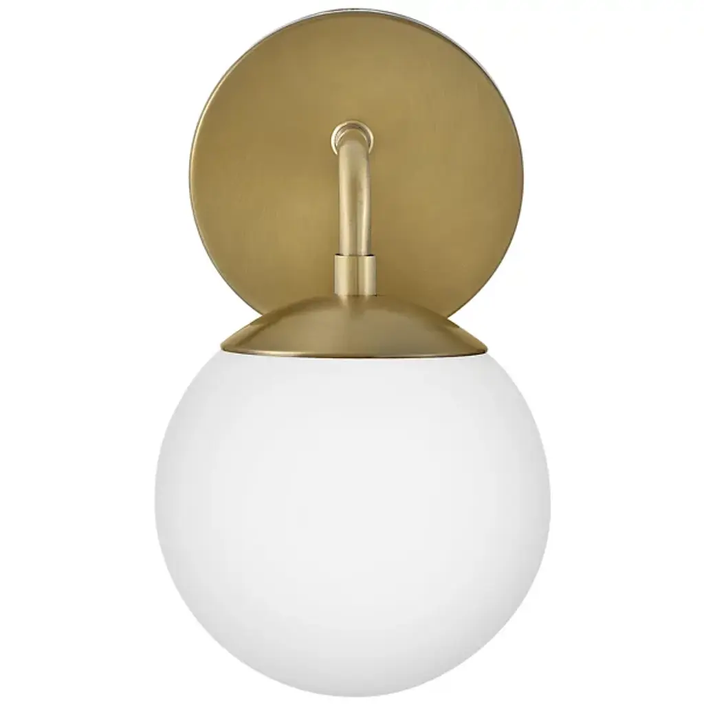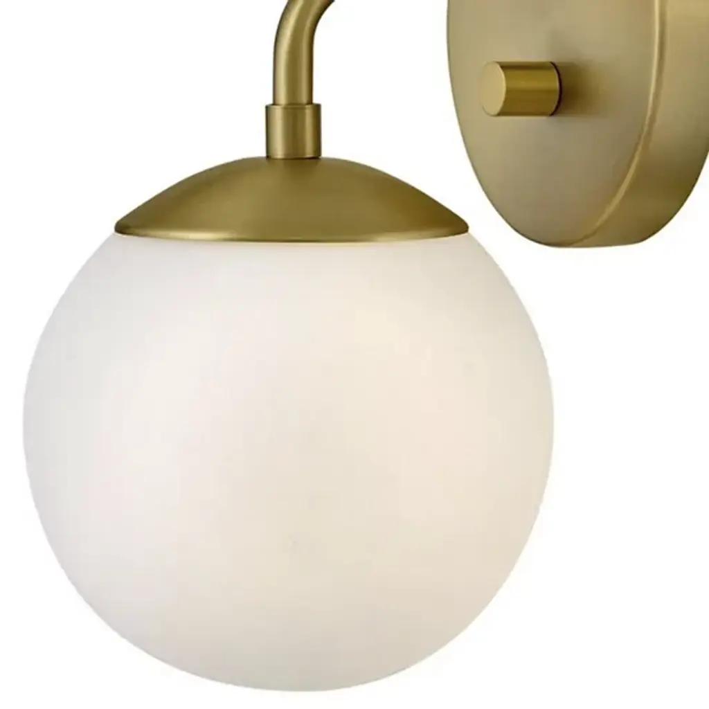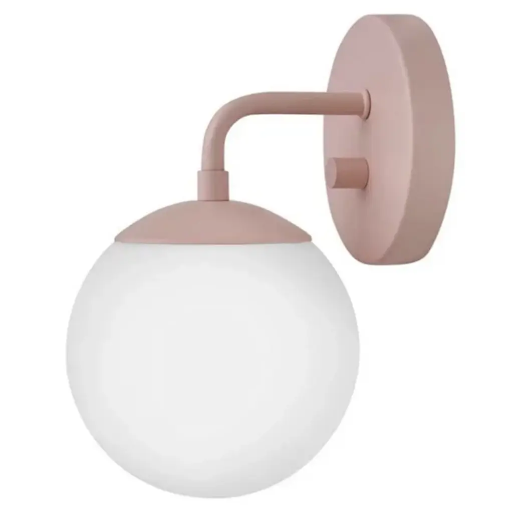 Bring a pleasing modern presence to your walls or hallways with the elegant simplicity of the Julep Wall Sconce from Lark. Retained by a low-profile disc wall plate, it can be mounted up or down and extends a curving arm to a dish-shaped cap surrounding a damp-listed candelabra lamp. Ideal when placed on either side of a bathroom mirror, any excess glare is gentled with ease by a spherical shade of etched opal glass, transmitting a stately, appealing warmth out around the fixture.