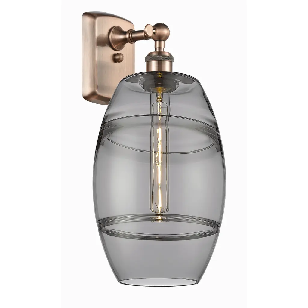 The Julian Wall Sconce from Troy Lighting is a modern, elegant hourglass-style sconce that features a captivating ombre glass shade that adds a touch of sophistication to any space. The shade begins with a warm champagne or smoked grey hue at the top and seamlessly transitions into clear glass, creating a striking visual effect. Whether illuminated or not, this sconce's gradient design is visually appealing. It adds a touch of contemporary elegance to your interior decor, making it an eye-catching focal point in any room.