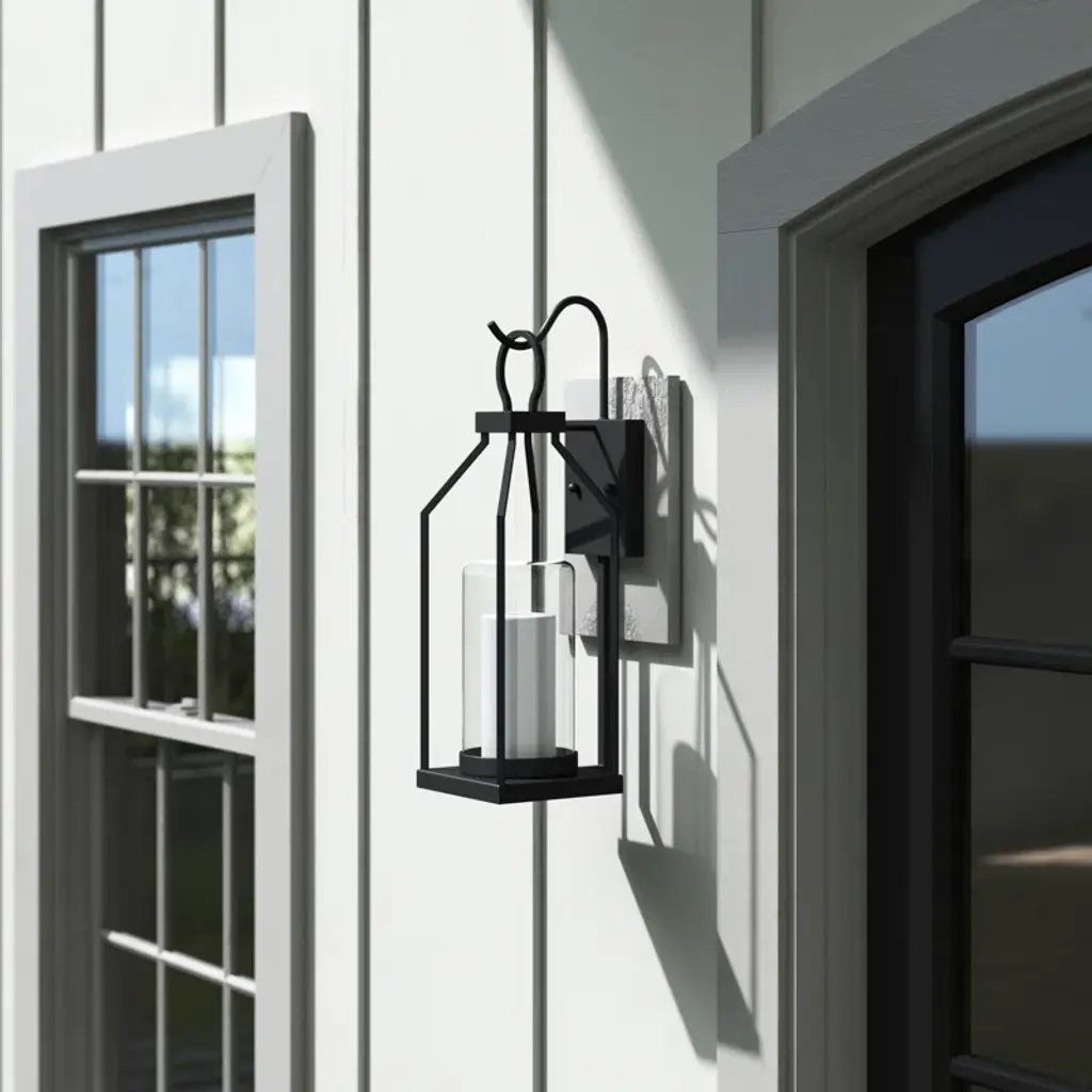 Light the way home with the lantern-inspired style of the 1-light outdoor wall light. A white opal glass shade, held within a protective clear glass shade, recalls the look of candlelight. The matte black finish makes a great choice for lighting a wide variety of homes. is 21" in height, 6.5" in width, and extends 8" from the wall. It uses one candelabra size bulb of up to 60 watts per bulb. Wet area rated.