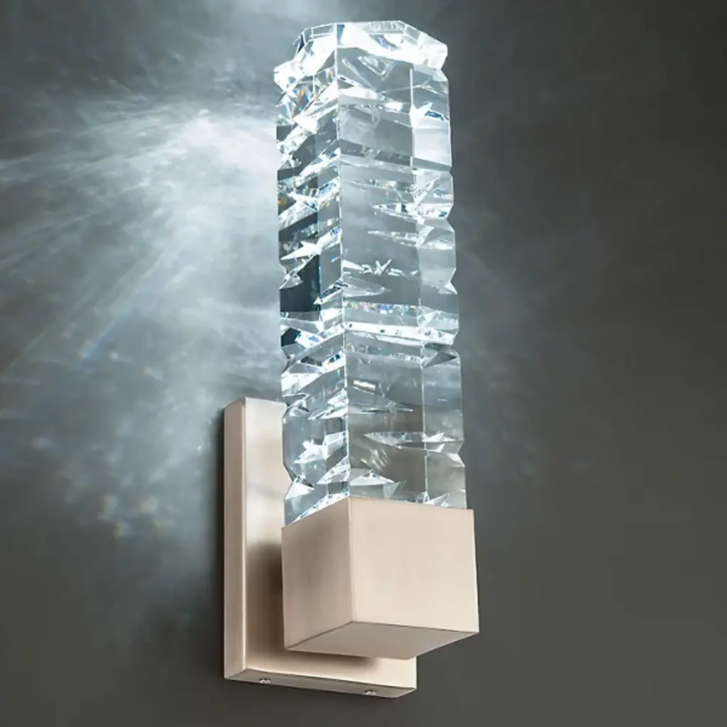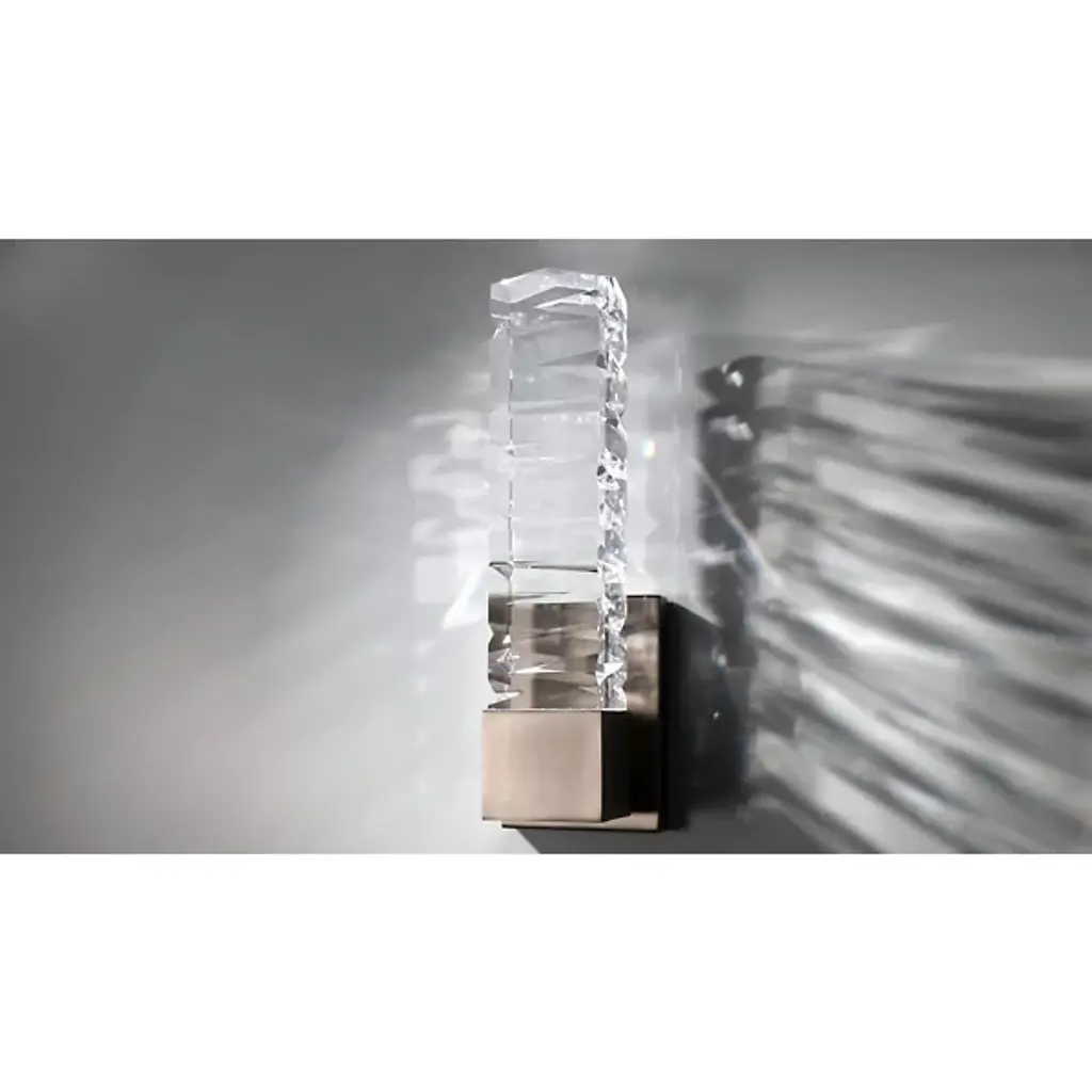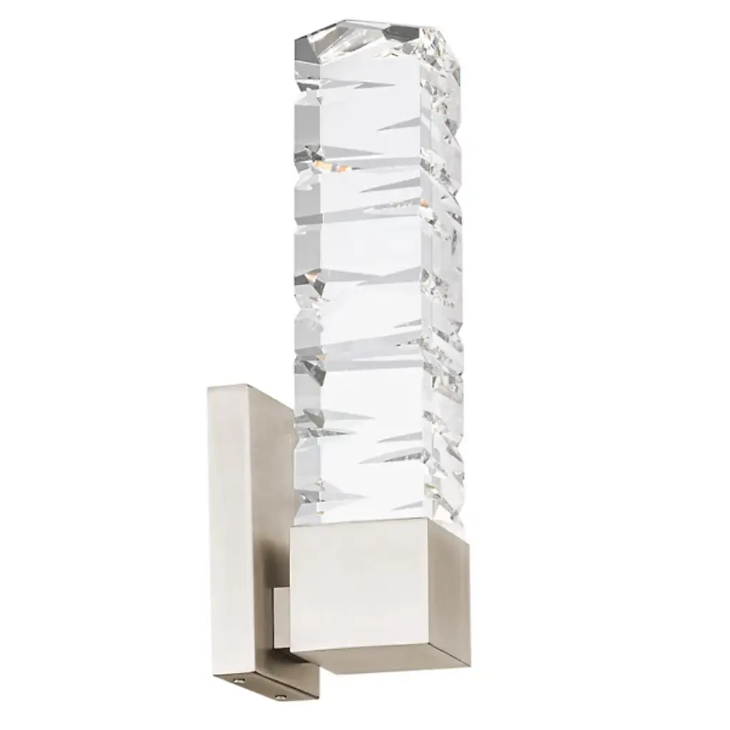 Shimmering, hand-chiseled beauty. Satisfy your eye for the divine with the Juliet LED Wall Sconce from Modern Forms. Artisans craft this piece for longevity. It mounts securely to your wall with a sleek aluminum backplate and an attractive cube head. These two metal elements deliver a pop of contrast that stuns from across the room. There’s no easy way of pulling your eyes from the hand-chiseled marks wrapping across the K-9 clear crystal diffuser. Each chiseled mark bursts with brilliant, refracted detail. Taking a step back with the lights on, the crystal radiates as a shape bursting with highlights. The crystal casts an unforgettable, painterly glow against the back wall.