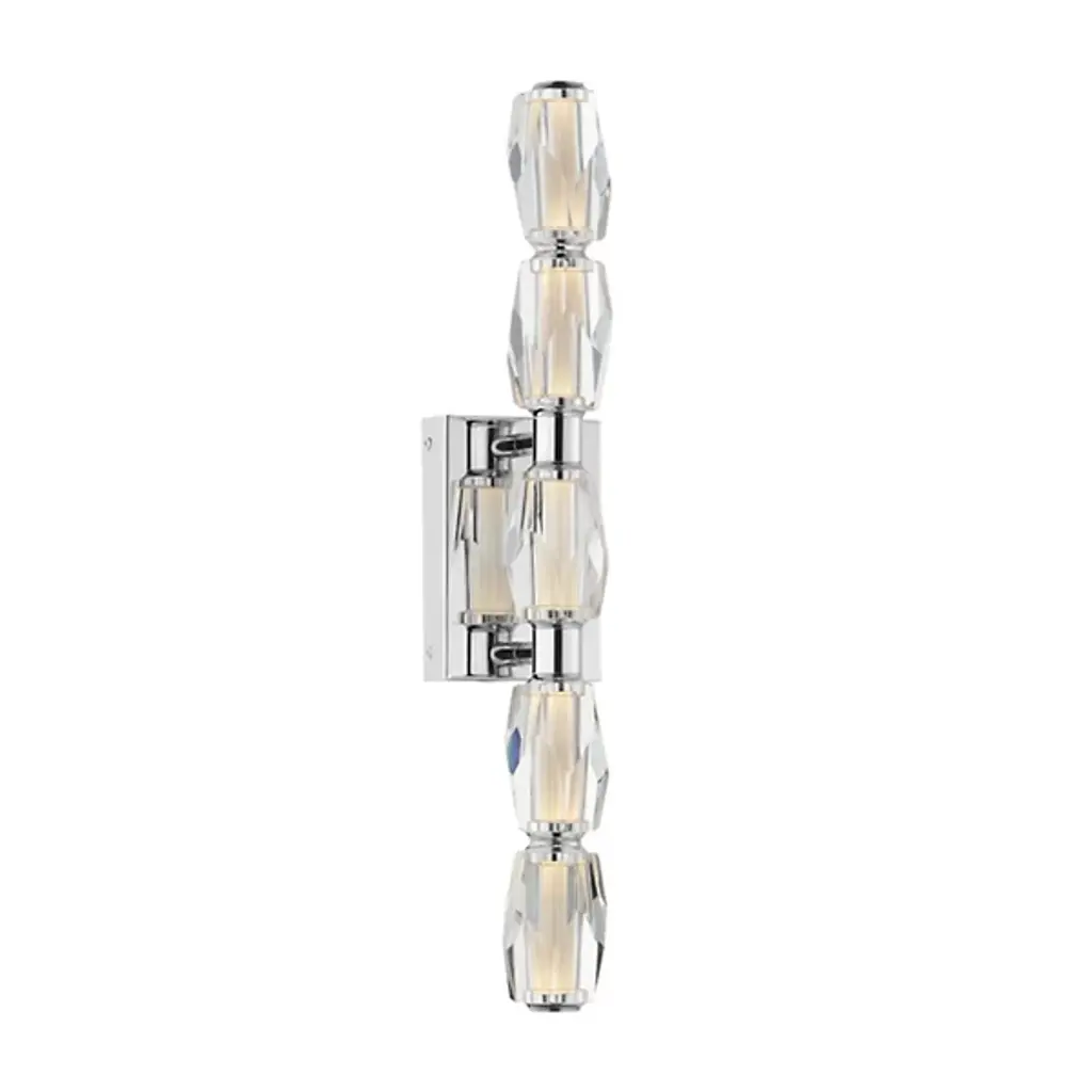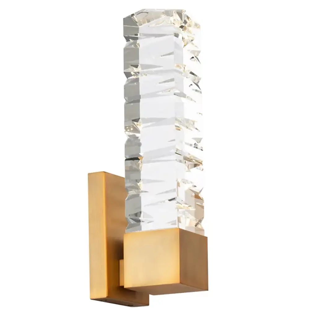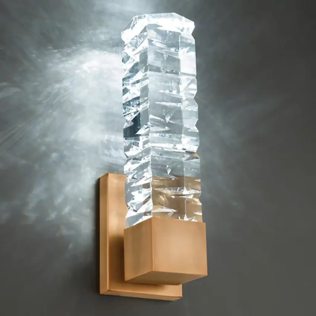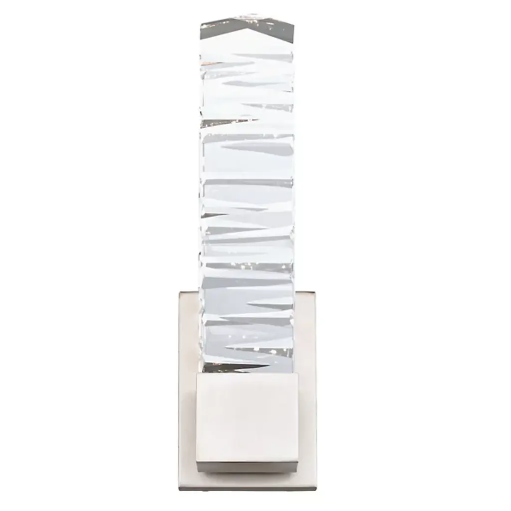 Shimmering, hand-chiseled beauty. Satisfy your eye for the divine with the Juliet LED Wall Sconce from Modern Forms. Artisans craft this piece for longevity. It mounts securely to your wall with a sleek aluminum backplate and an attractive cube head. These two metal elements deliver a pop of contrast that stuns from across the room. There’s no easy way of pulling your eyes from the hand-chiseled marks wrapping across the K-9 clear crystal diffuser. Each chiseled mark bursts with brilliant, refracted detail. Taking a step back with the lights on, the crystal radiates as a shape bursting with highlights. The crystal casts an unforgettable, painterly glow against the back wall.