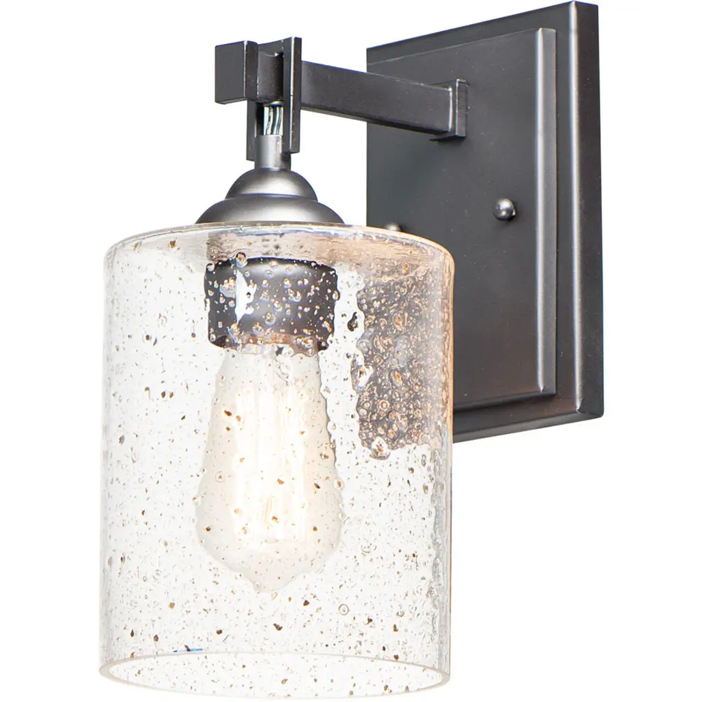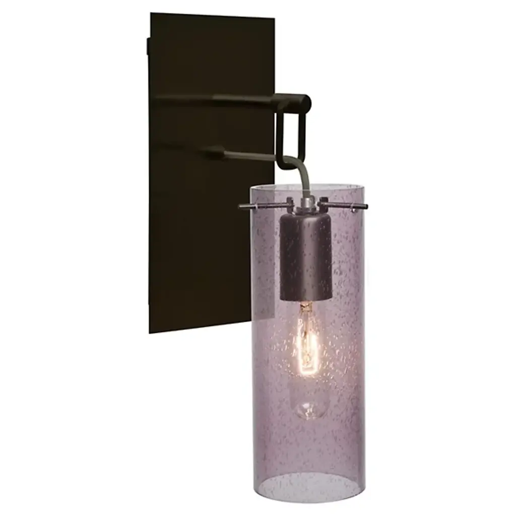Reinvent your living space with the industrial-inspired Juni 10 Hanging Wall Sconce by Besa Lighting. Its sophisticated design contrasts a clean, handcrafted Bubbled Glass shade with a rugged, Aluminum wallplate, standoff, and suspension cord. Lighting comes courtesy of an internal filament bulb that, once lit, radiates through the bubbles for a warm, yet glistening effect.