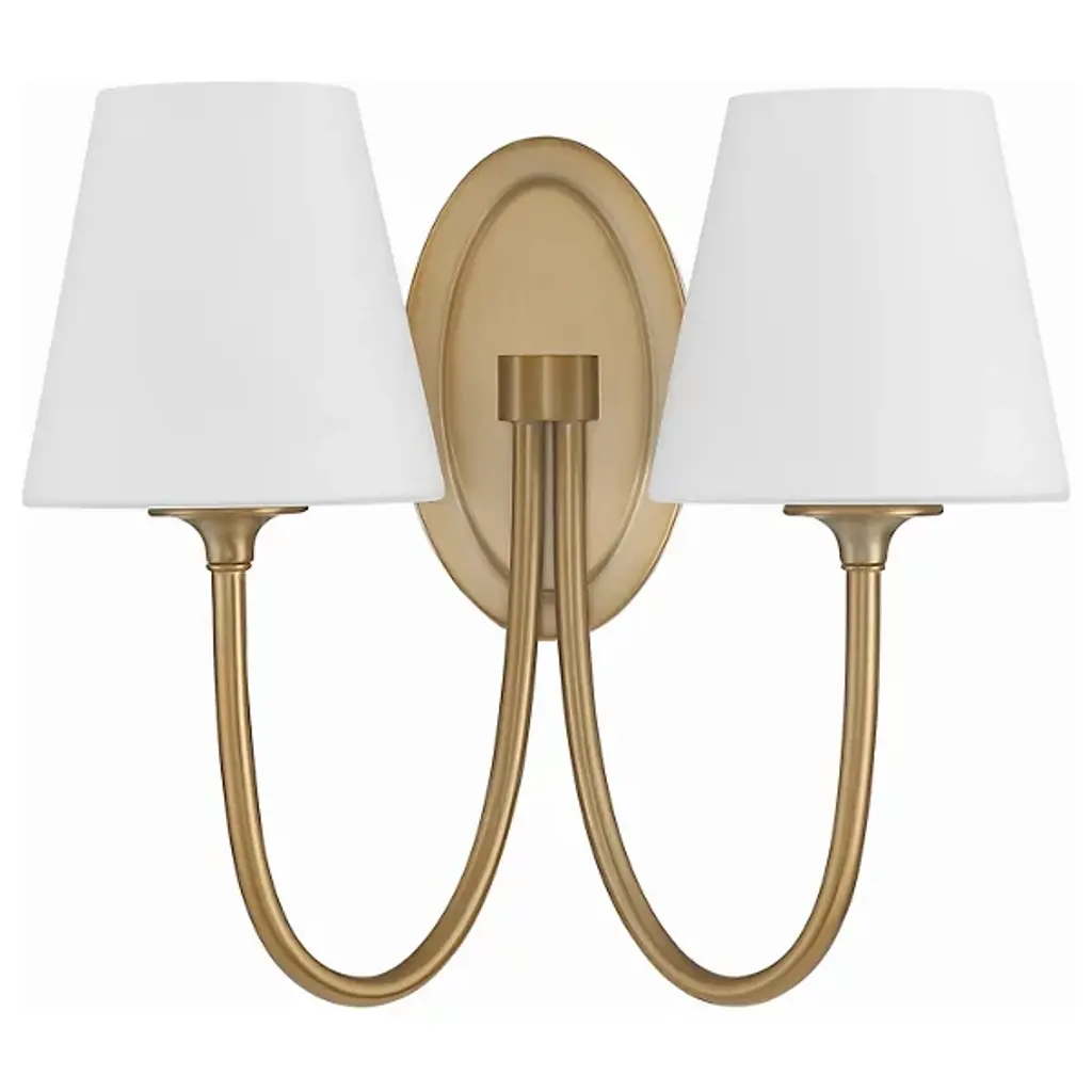 Experience the sleek and contemporary design of the Juno Double Wall Sconce by Crystorama. This stunning accent light delivers visual impact and sophistication to your space. Crafted with a slender arm that extends gracefully from a circular backplate, the fixture showcases a tapered glass shade for an elegant touch. With its compact profile and stylish aesthetic, this product effortlessly enhances any room in your home, creating a modern and inviting atmosphere.