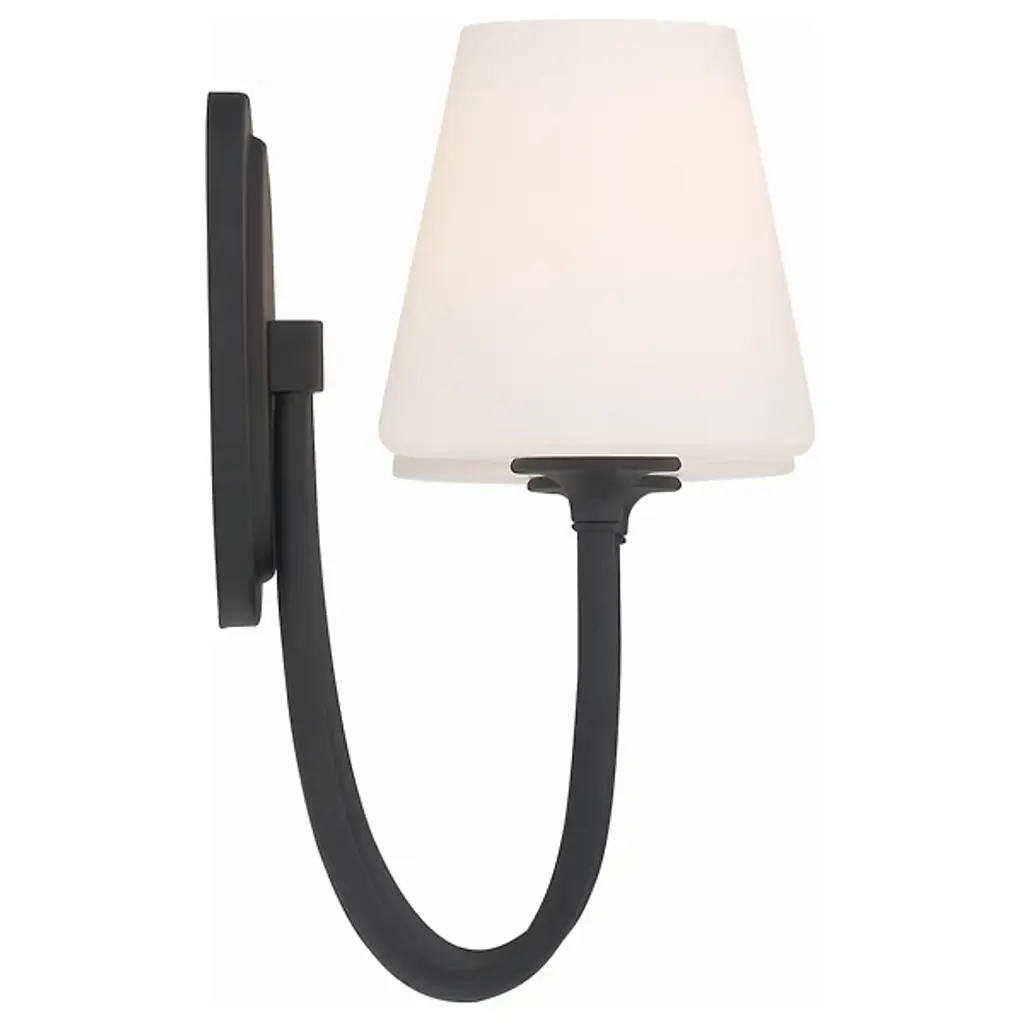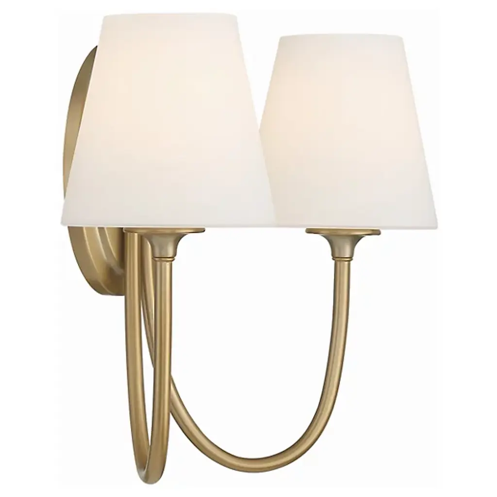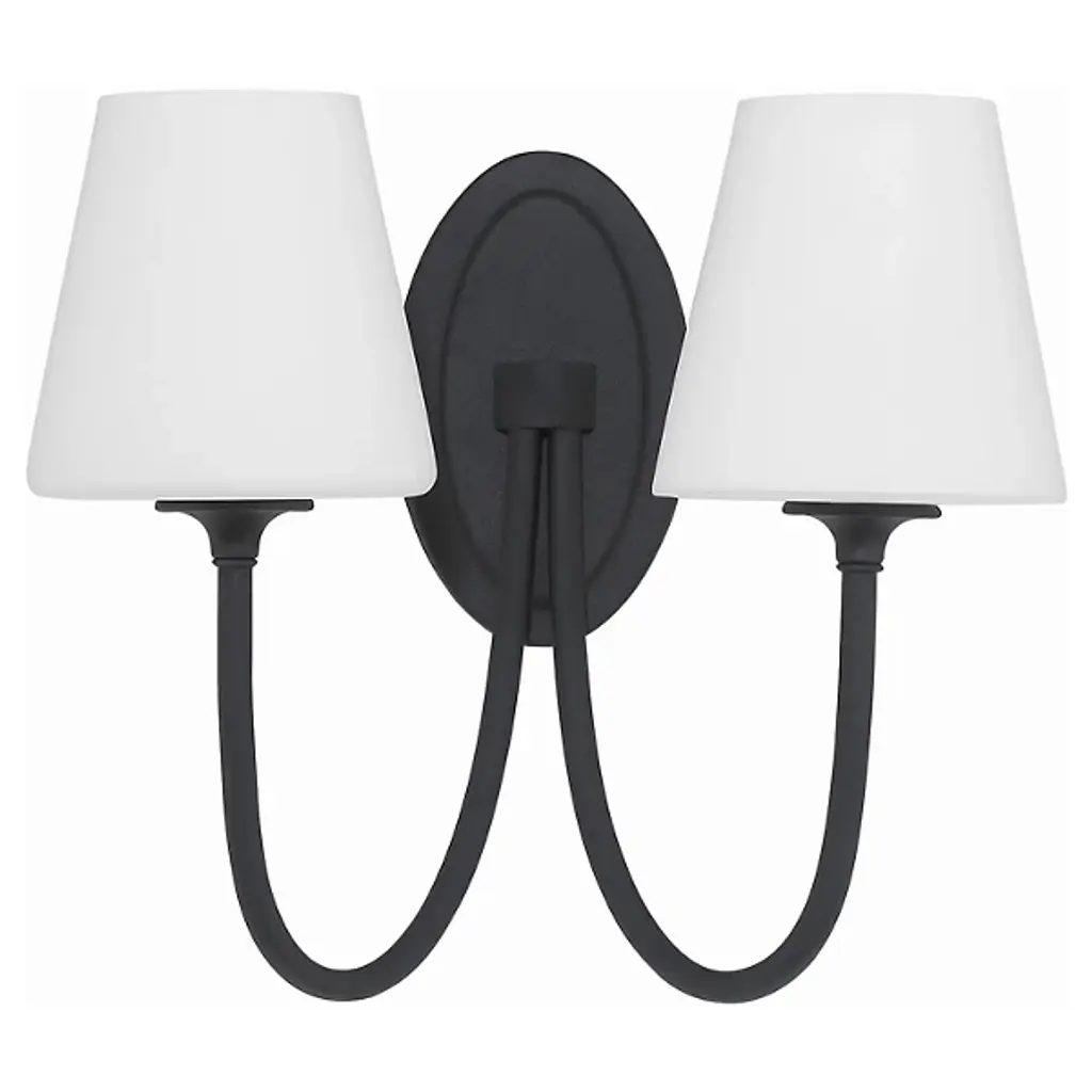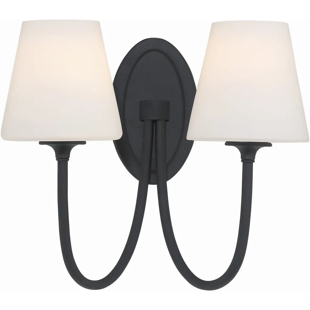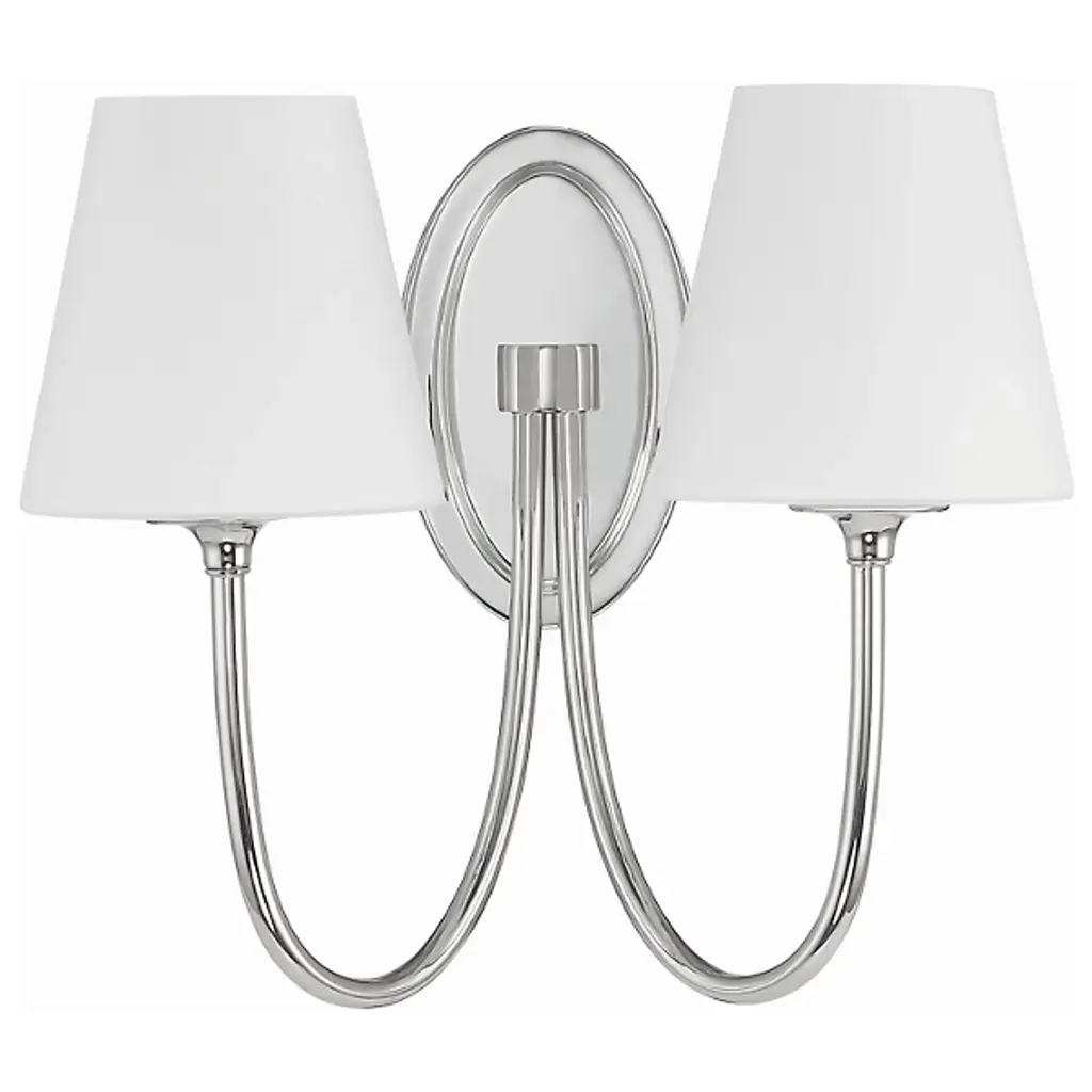 Experience the sleek and contemporary design of the Juno Double Wall Sconce by Crystorama. This stunning accent light delivers visual impact and sophistication to your space. Crafted with a slender arm that extends gracefully from a circular backplate, the fixture showcases a tapered glass shade for an elegant touch. With its compact profile and stylish aesthetic, this product effortlessly enhances any room in your home, creating a modern and inviting atmosphere.