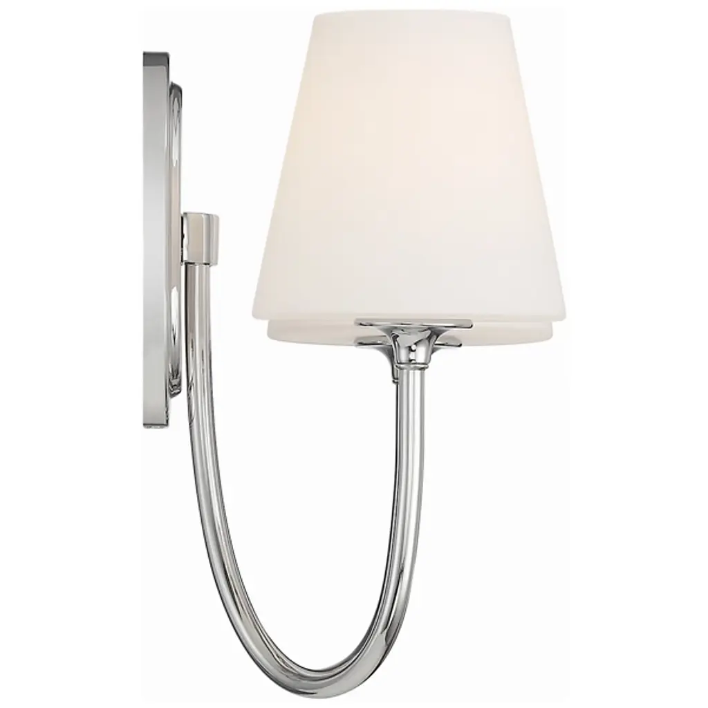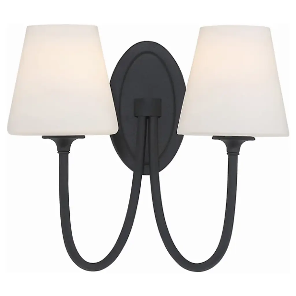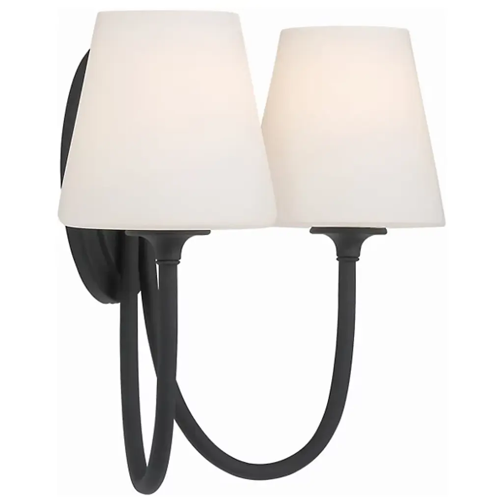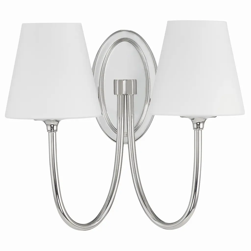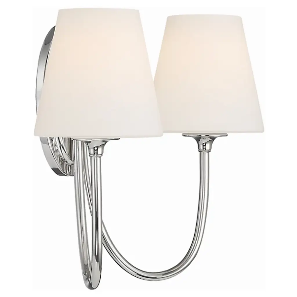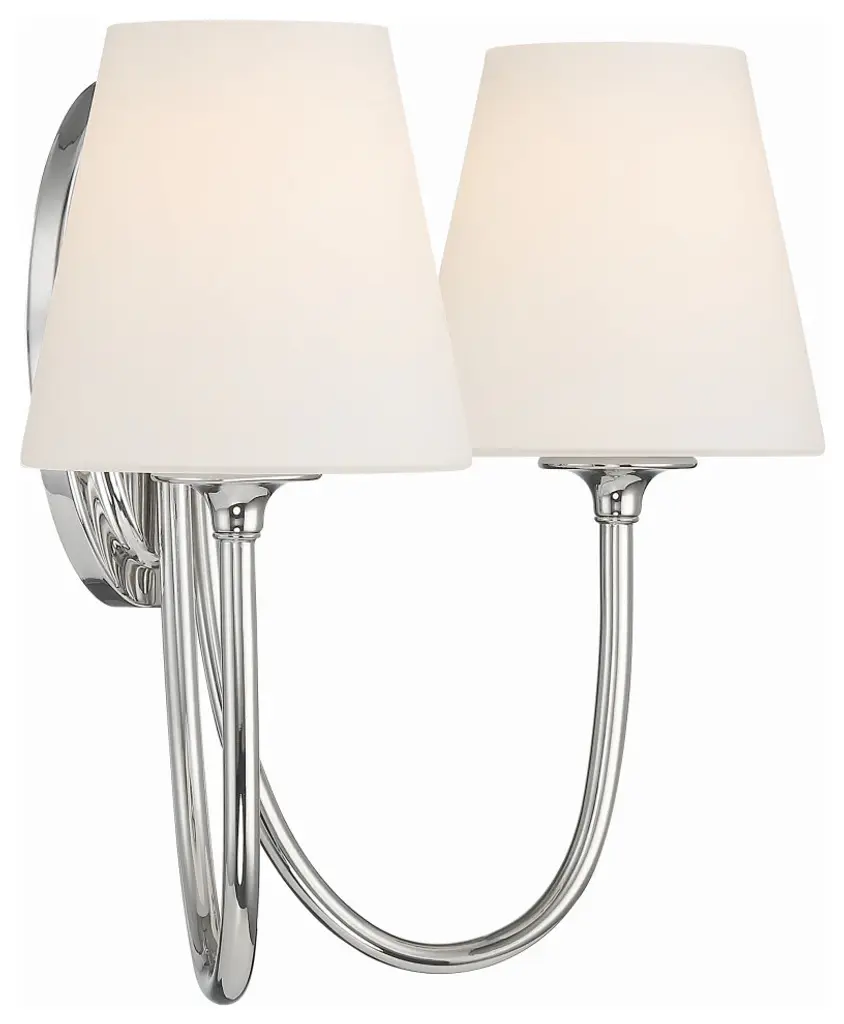 Experience the sleek and contemporary design of the Juno Double Wall Sconce by Crystorama. This stunning accent light delivers visual impact and sophistication to your space. Crafted with a slender arm that extends gracefully from a circular backplate, the fixture showcases a tapered glass shade for an elegant touch. With its compact profile and stylish aesthetic, this product effortlessly enhances any room in your home, creating a modern and inviting atmosphere.