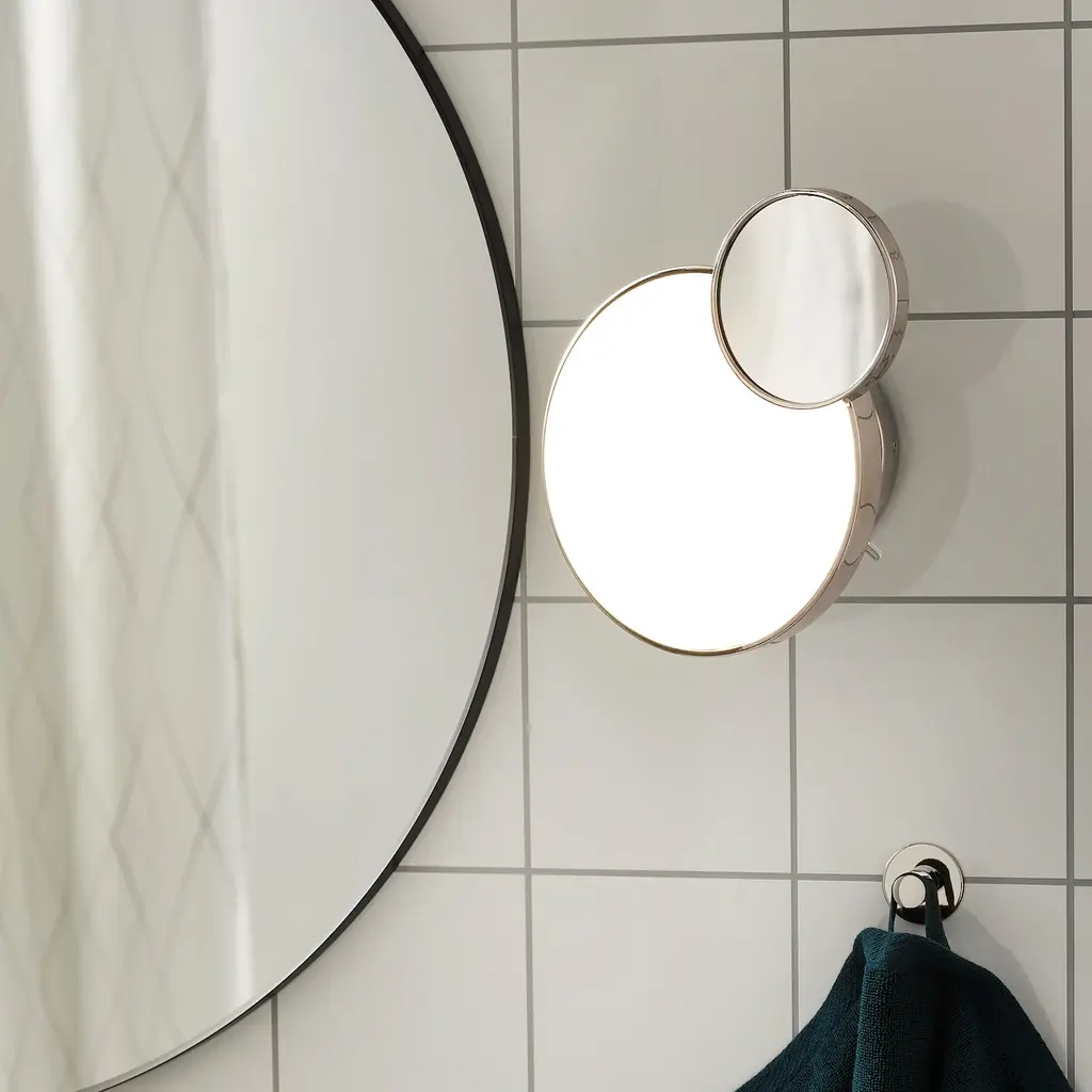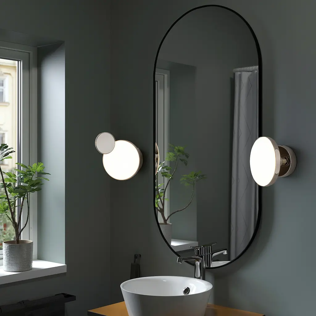 KABOMBA LED wall lamp with mirror - dimmable chrome plated/glossy 8 ". The lamp is dimmed by using the button on the side, so you can easily get the light that suits each activity or occasion. By dimming the lighting, you change the mood in the room while saving energy. Approved for IP44.