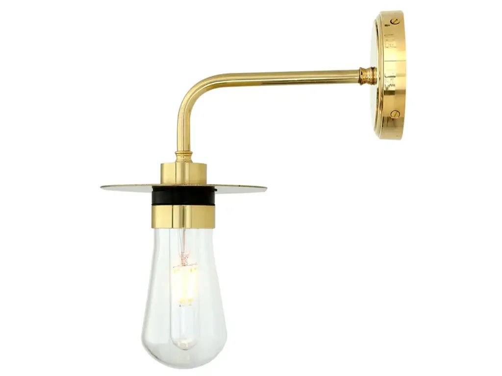 Kai bathroom wall light Material Brass | Steel | GlassProjection 27.5cm | 10.75”Weight 1.000kgMax Wattage 6.5w LEDVoltage 220/240vLampholder E27 | Plastic | ES | Edison ScrewIP Rating IP54Glass Code GLWP01