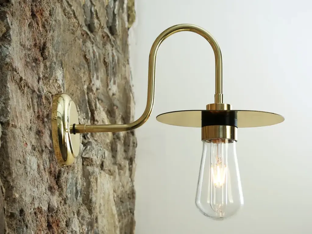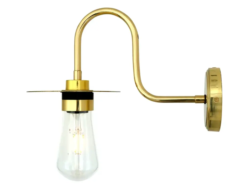 Kai swan neck bathroom wall light Material Brass | Steel | GlassProjection 34.5cm | 13.50”Weight 1.070kgMax Wattage 6.5w LEDVoltage 220/240vLampholder E27 | Plastic | ES | Edison ScrewIP Rating IP54Glass Code GLWP01Protection Class Class II