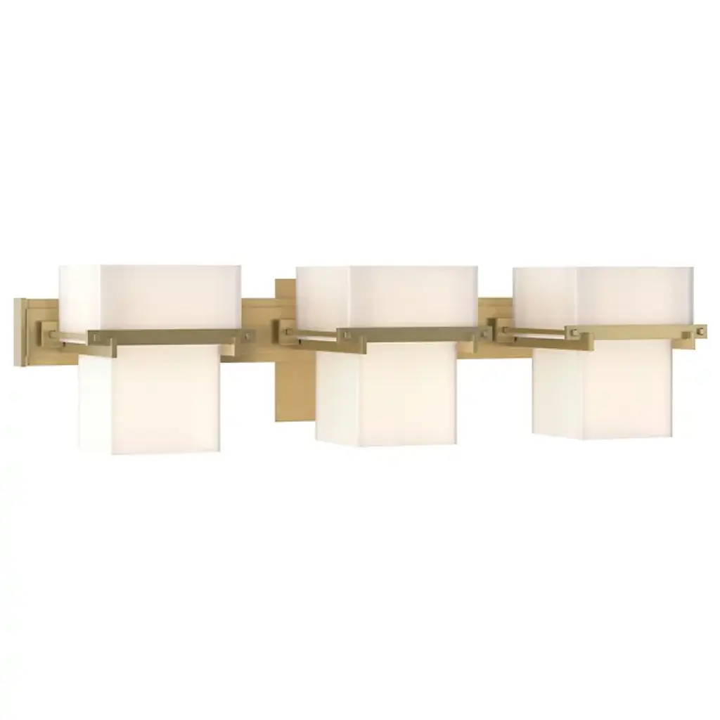 From the mounting plate to the hand-forged steel bars outlining the two-tiered glass, our Kakomi Three Light Sconce is a collection of lines and planes. Whether installed in a square room for visual harmony or a room of a different shape to create striking contrast, it works.