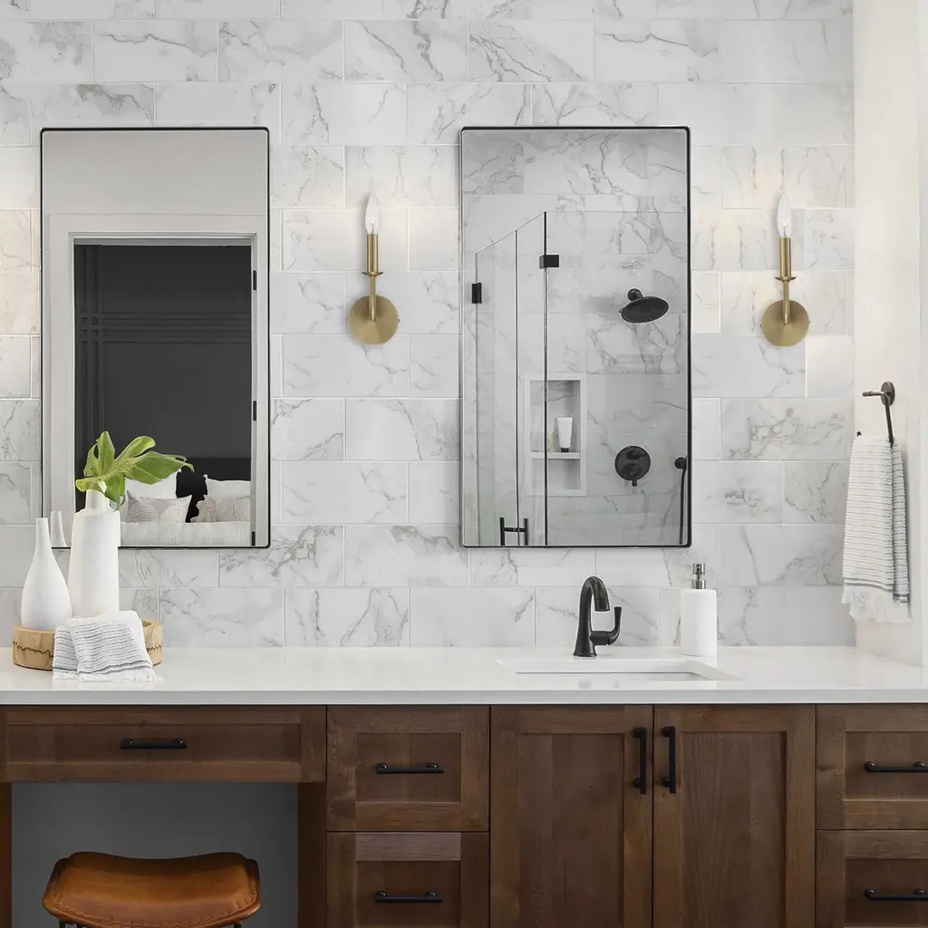 This collection offers a clean aesthetic with its angular lines and sleek frame. The refined metal construction features upward sweeping arms with an open design that radiates light to create a beautiful glow wherever it's installed.