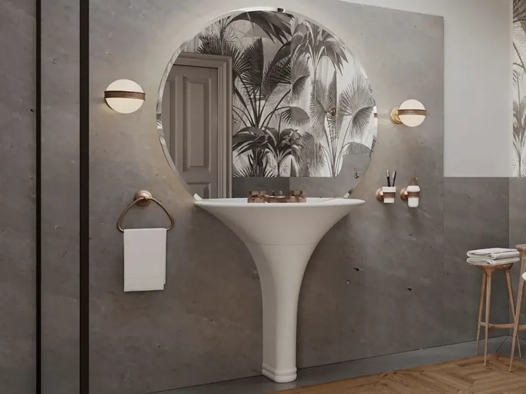 Kalos is a brass wall lamp. It is the result of the collaboration with a grand protagonist of contemporary architecture, Massimo Iosa Ghini, and it is ideal for bathrooms with a classic-contemporary taste. Its brass structure is enhanced by refined details of retro inspiration.Technical featuresClassification: IP20Wattage: Max 40 W - E14 IBT, IBC