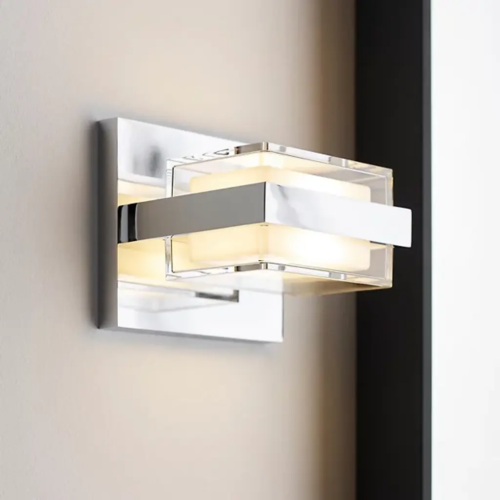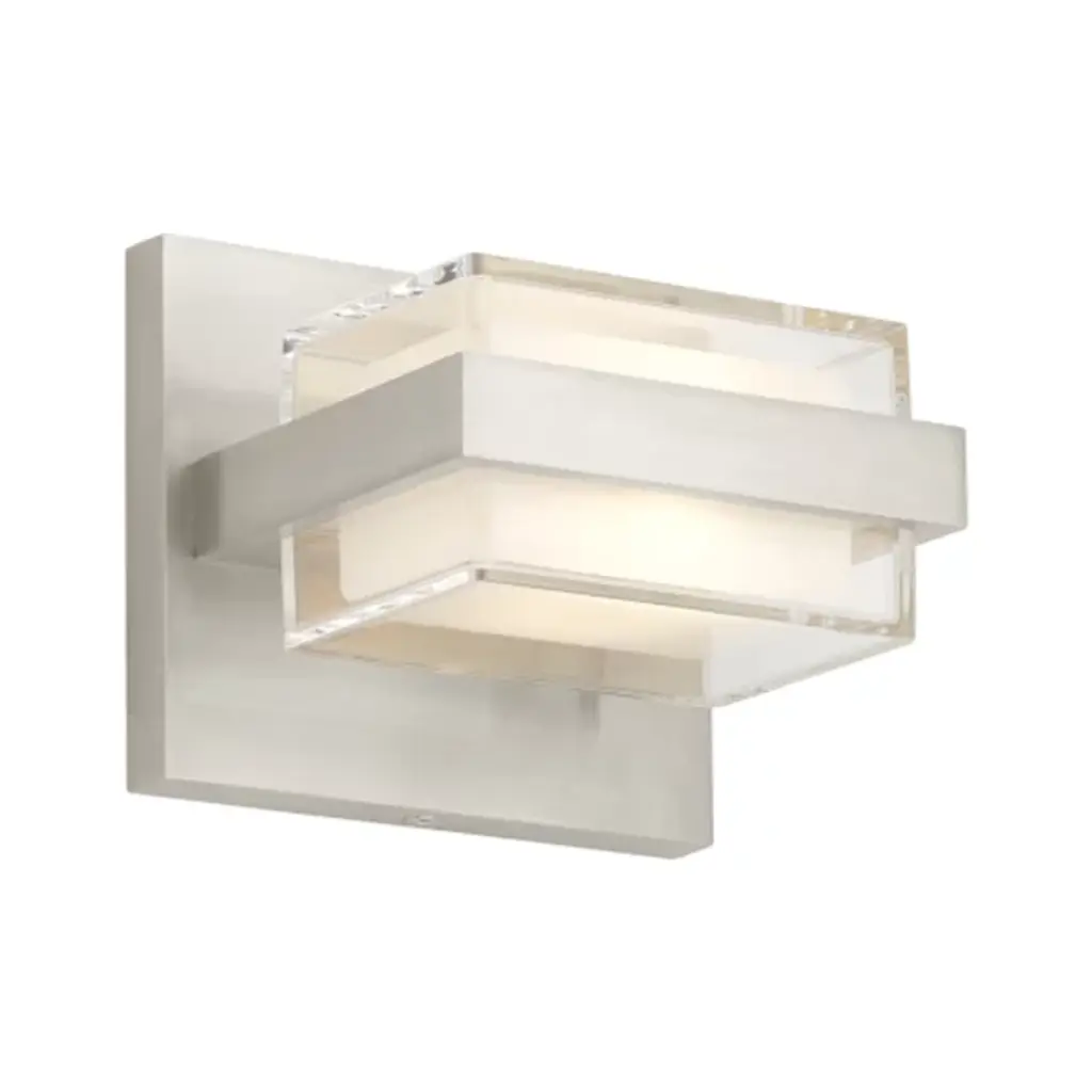 The geometric designs of Art Deco meet contemporary aesthetics with the Kamden LED Bath Wall Sconce by Visual Comfort Modern, formerly known as Tech Lighting, With two hand-polished square Acrylic shades mounted in a die-cast Metal frame, LED lamping allows for warm, diffused light to be cast in both directions. A finished metal backplate allows versatile placement, while LED lamping is fully dimmable with dimmer sold separately.
