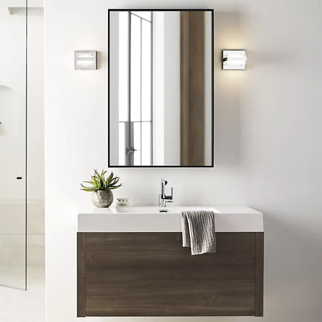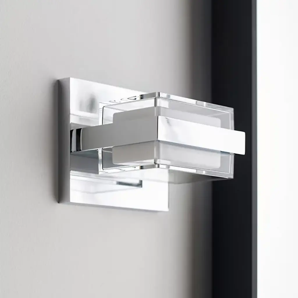 The geometric designs of Art Deco meet contemporary aesthetics with the Kamden LED Bath Wall Sconce by Visual Comfort Modern, formerly known as Tech Lighting, With two hand-polished square Acrylic shades mounted in a die-cast Metal frame, LED lamping allows for warm, diffused light to be cast in both directions. A finished metal backplate allows versatile placement, while LED lamping is fully dimmable with dimmer sold separately.