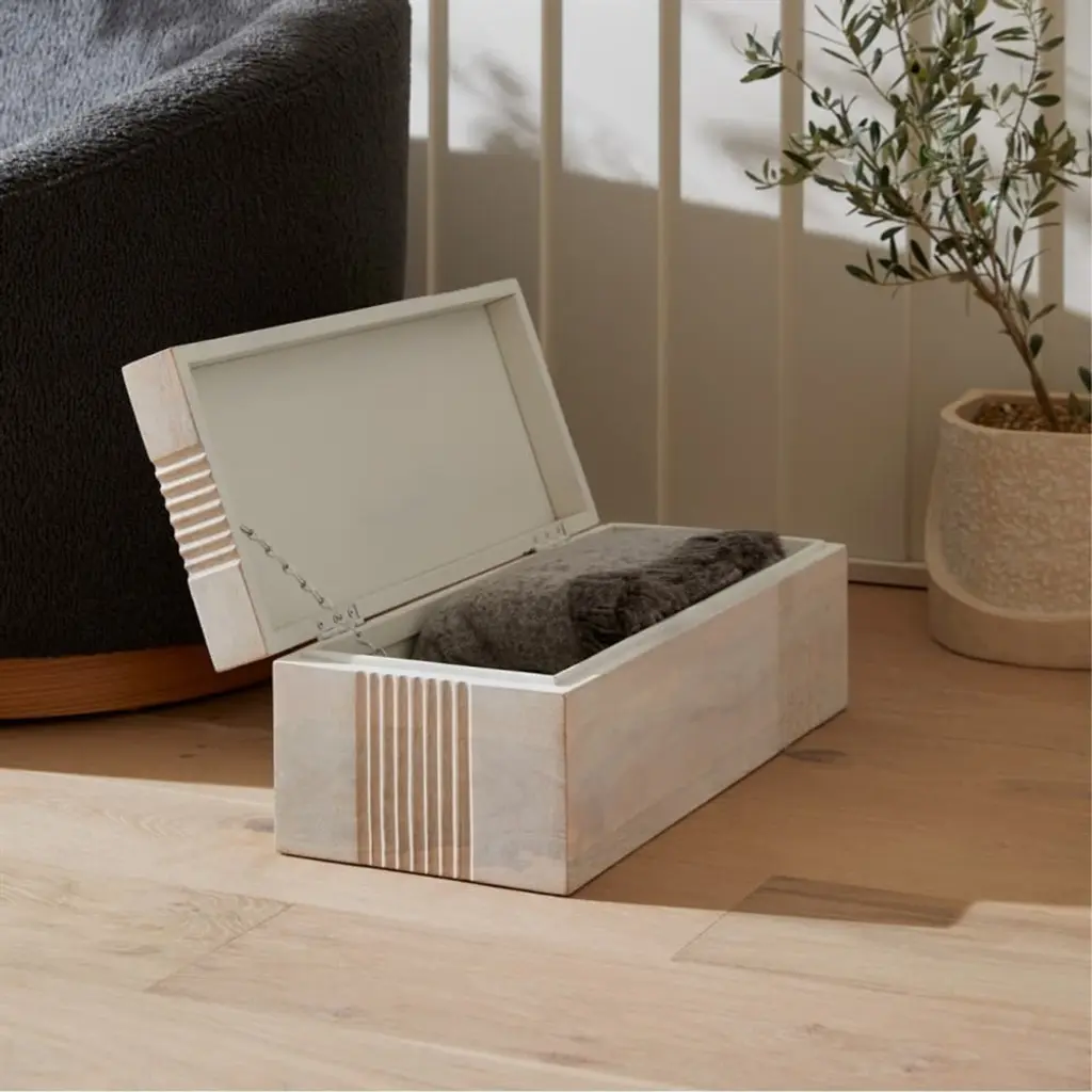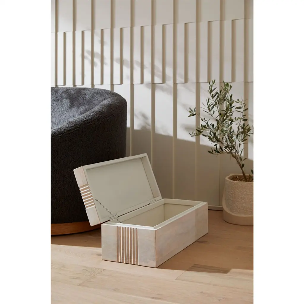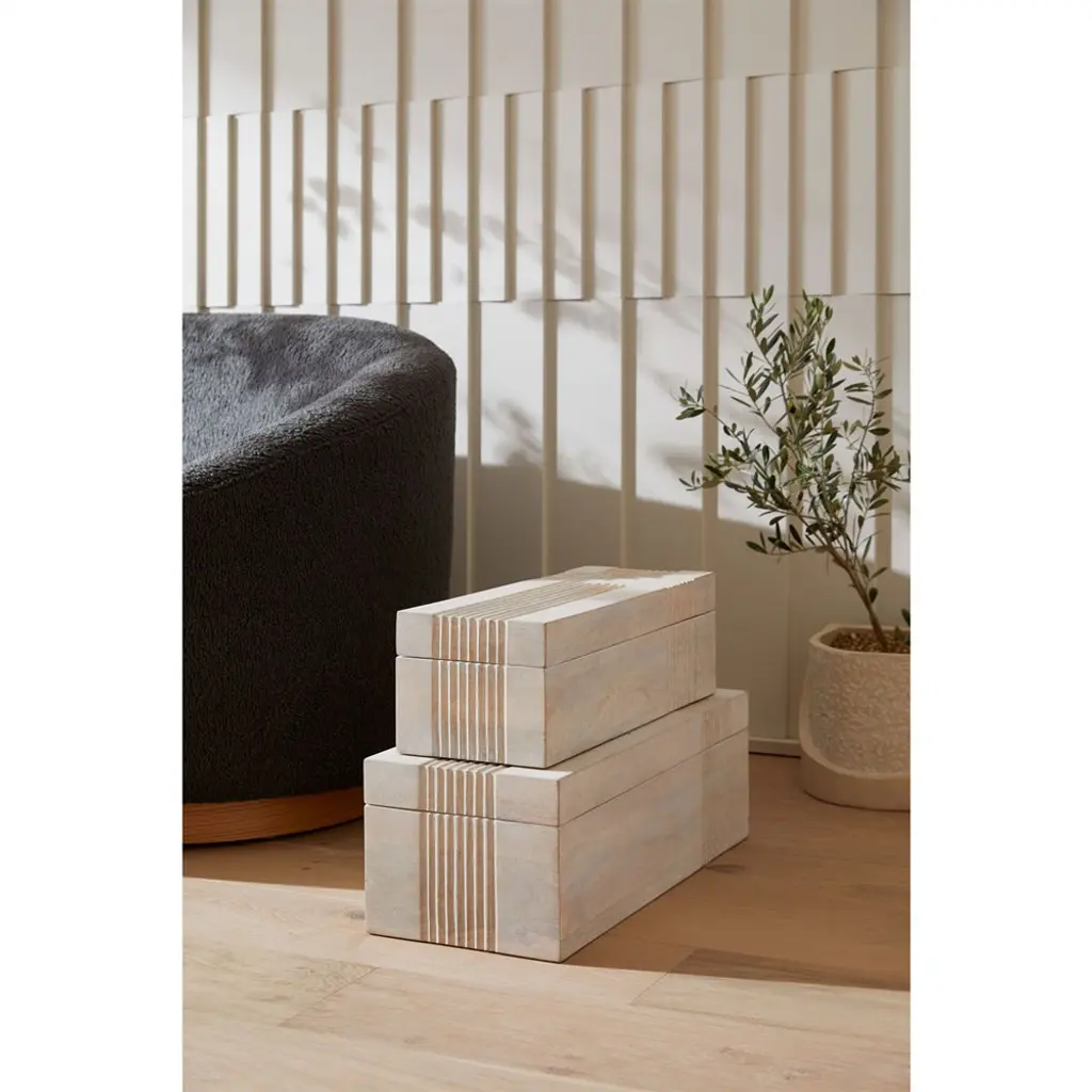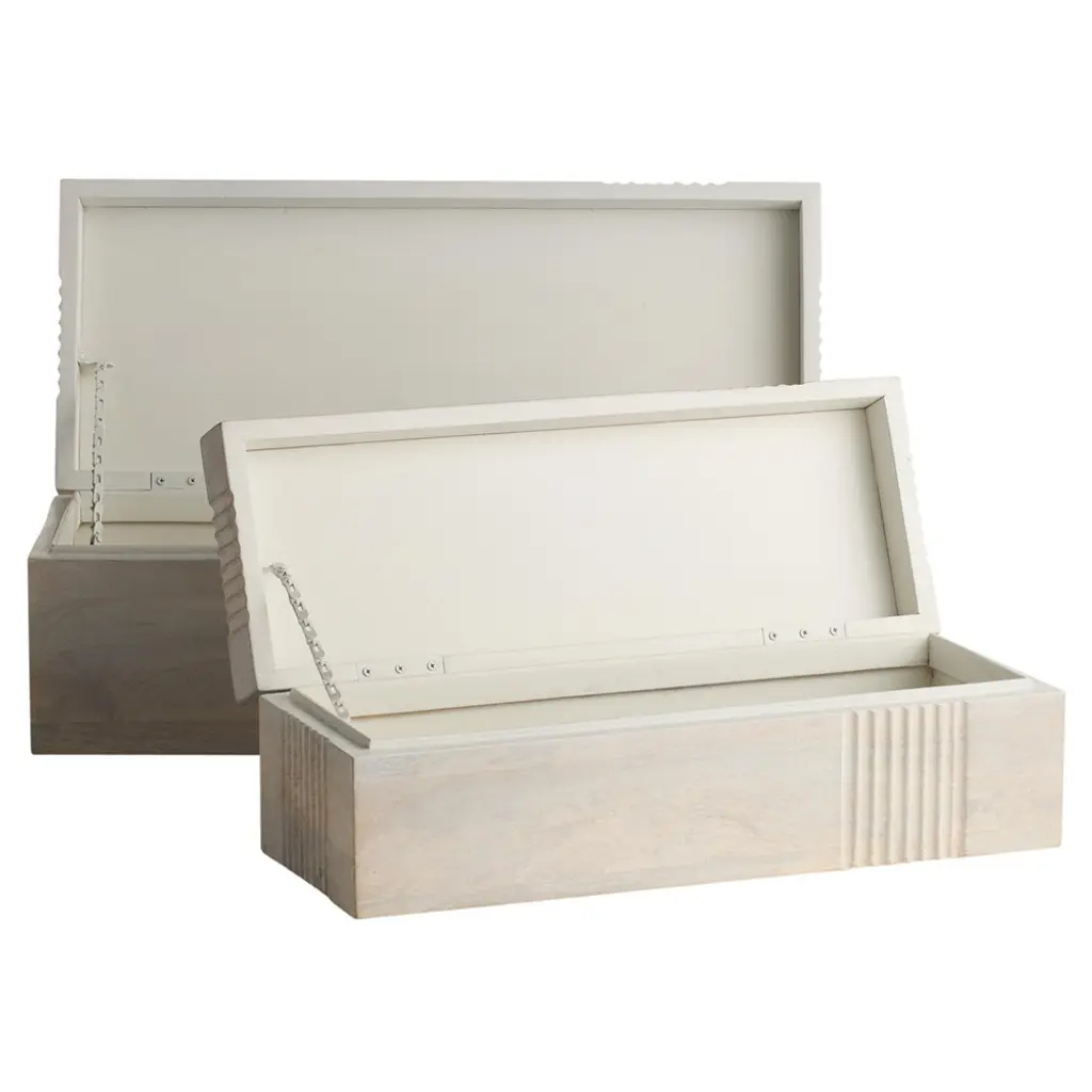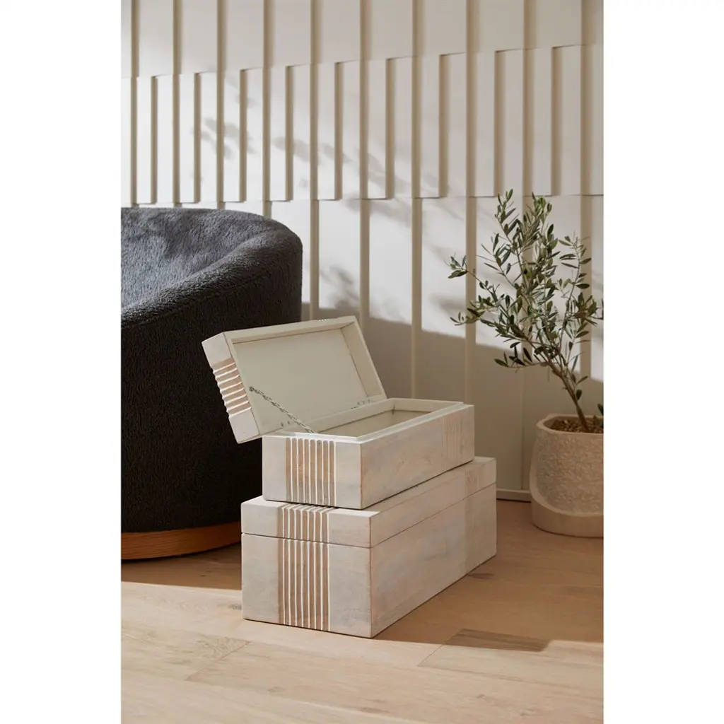 Kamira Coastal Beach Whitewash Mango Wood Decorative Box - Set Of 2