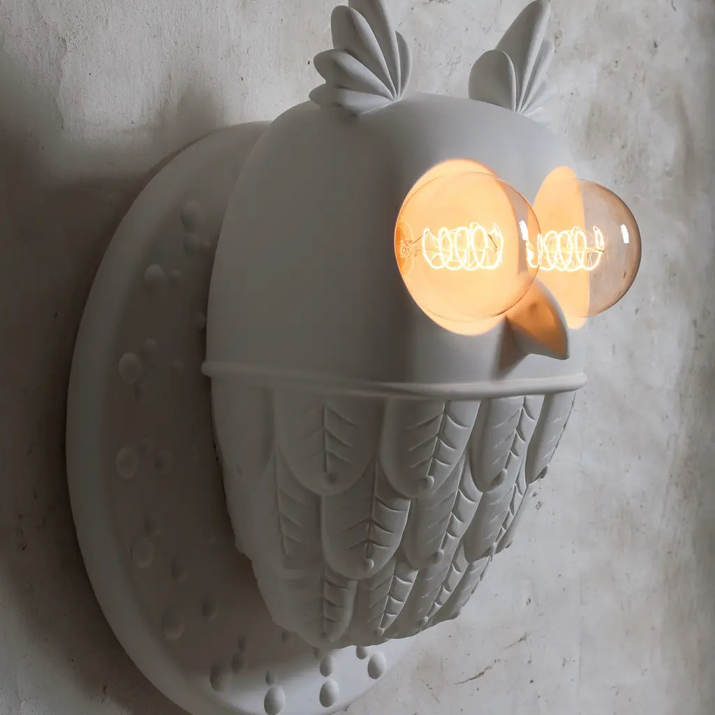 Ti Vedo (I See You) brings a playful twist to classic lighting design. While the wall or table lamp is certainly eye-catching, demanding attention, it also “stares” back at the viewer. Created by Matteo Ugolini, Ti Vedo has the shape of an owl and illuminates spaces through its large round eyes. Like other animal-shaped lighting from this series, the lamp is made from white ceramic and features intricate detailing. This design comes as a wall-mounted light and a table lamp, both versions for indoor use only and suitable for use with incandescent halogen lights or LEDs.