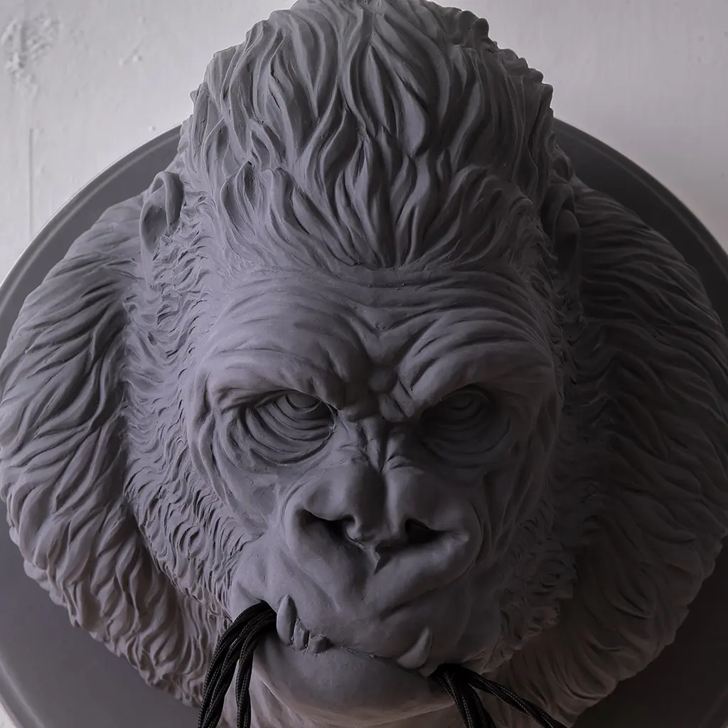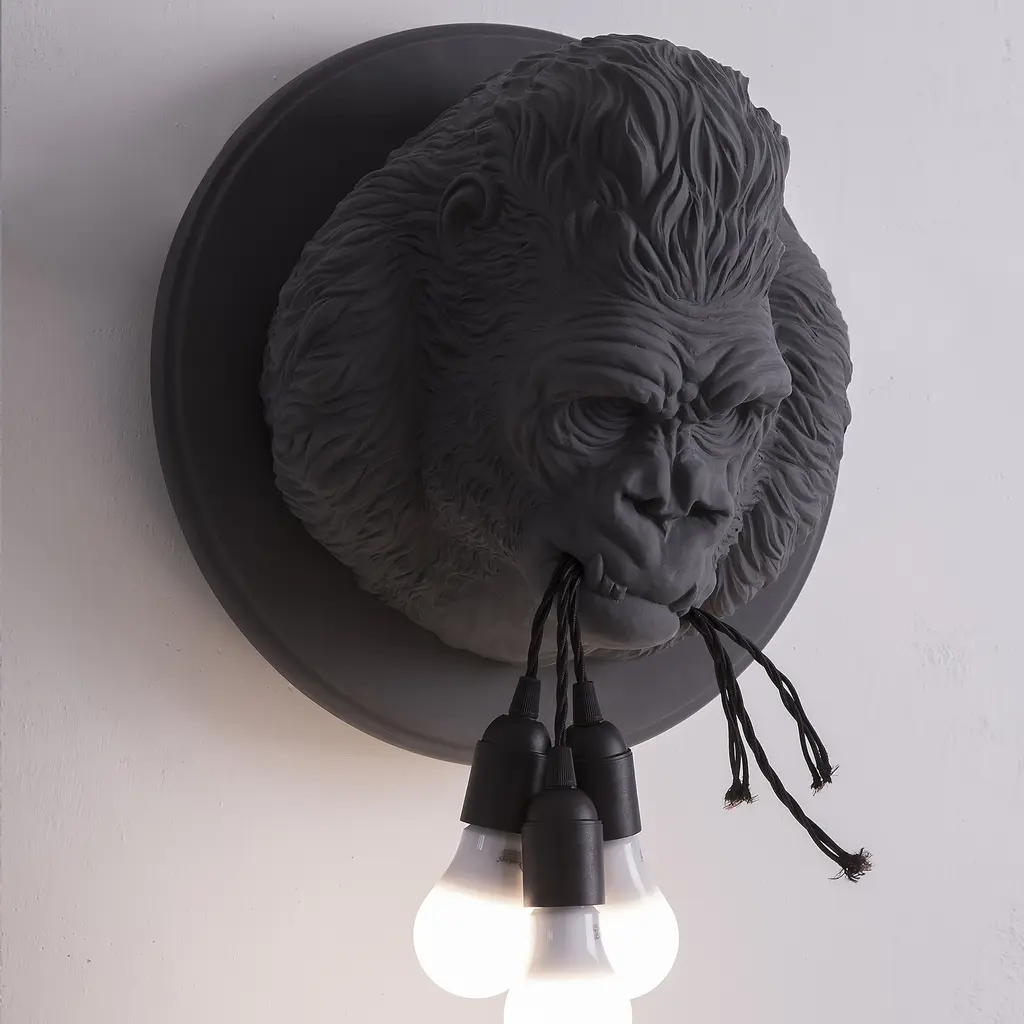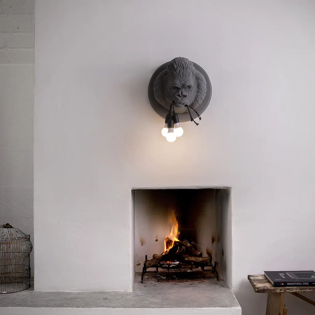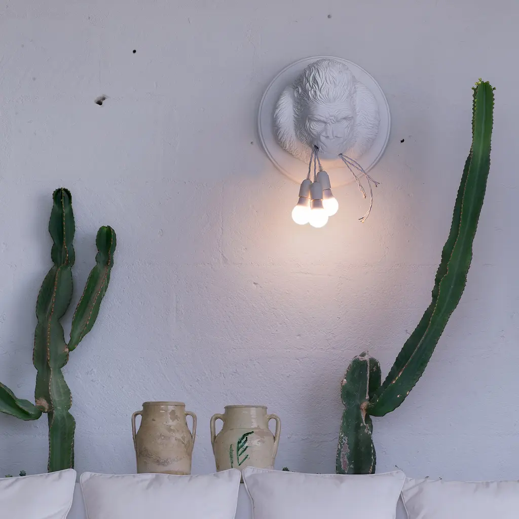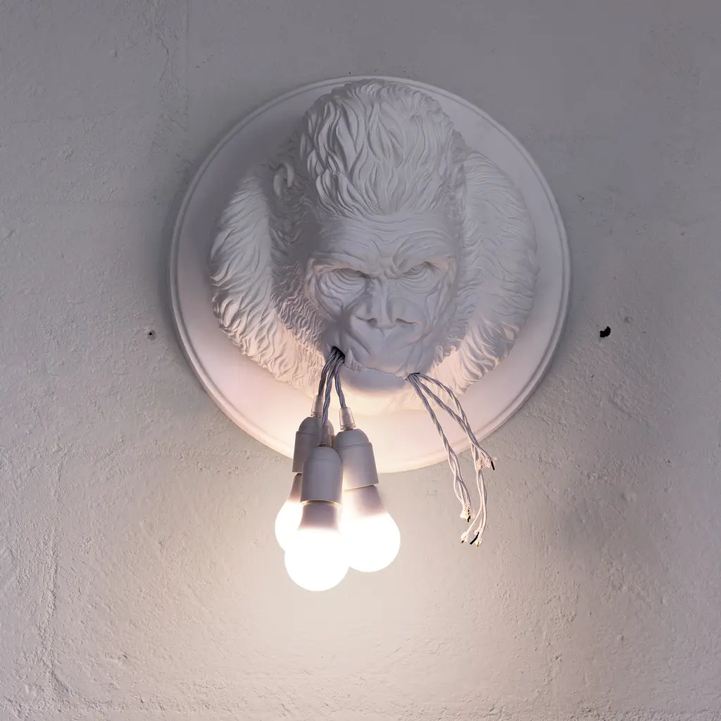 Get wild with your indoor lighting choices with Ugo Rilla from Karman. Designed by Matteo Ugolini, this wall-mounted lamp brings a gorilla into your home. Reproducing a gorilla’s head with accuracy, this white or dark gray ceramic lamp features detailed lines that recreate the animal’s fur and angry expression. Here, the designer alludes to rage at human technology that accelerates nature’s destruction. Ugo Rilla holds three light bulbs in its mouth, brightening the surrounding area with a cool or warm light, depending on the source of light – incandescent halogen or LED. This sculptural lamp is a conversation starter and comes in two versions, both designed for indoor use only.