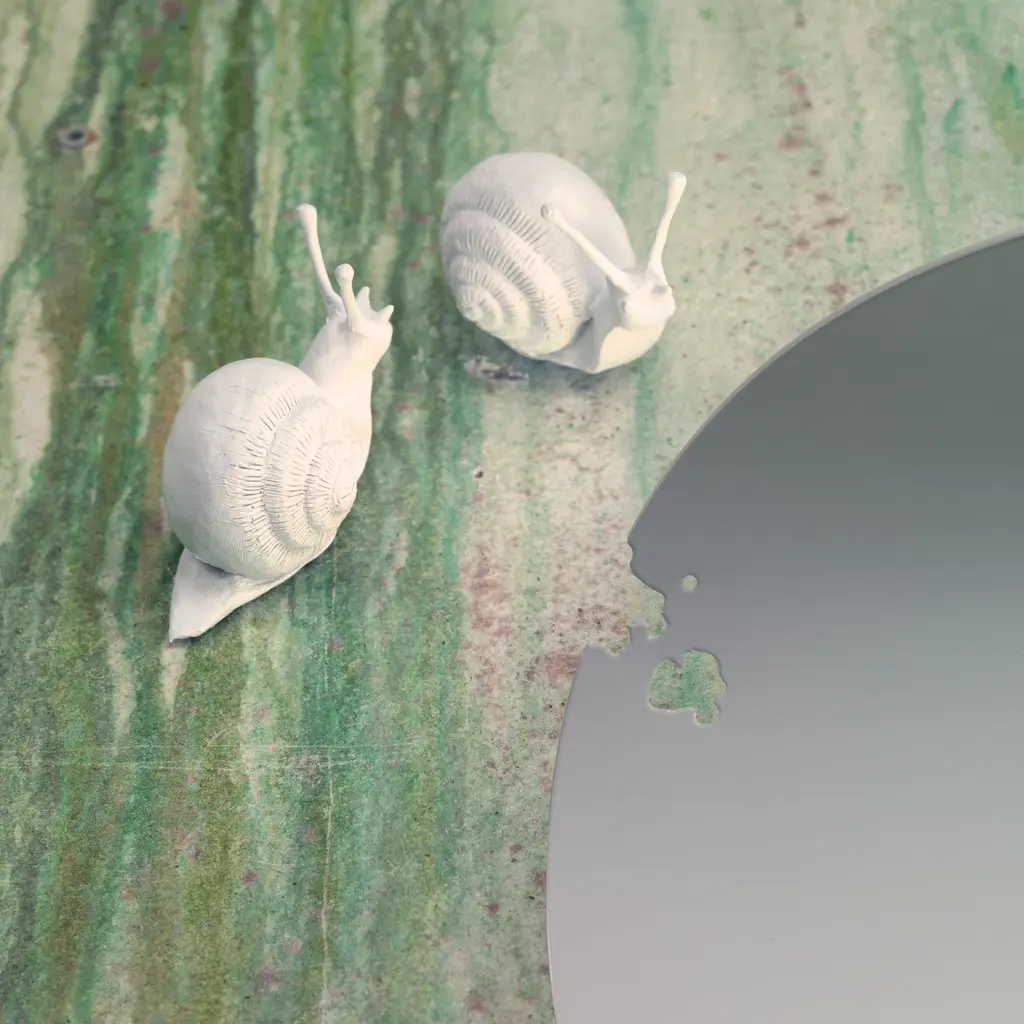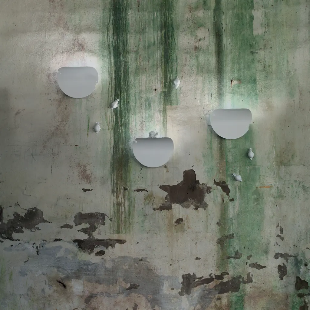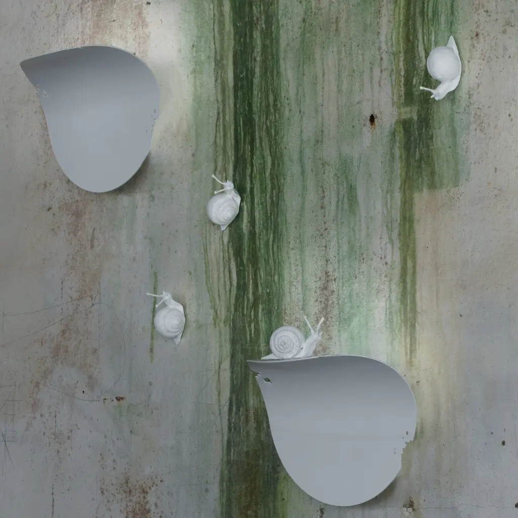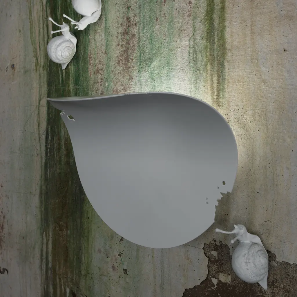 Doubling as ethereal wall art, Va Lentina from the Karman collection delights day and night. Designed by Matteo Ugolini, this wall light takes inspiration from nature and recreates the shape of a delicate leaf that insects and snails have begun to slowly devour. Manufactured from lightweight aluminum, the wall-mounted light has a lacquered white finish. The LED light illuminates from behind the leaf, creating a soft direct and indirect glow on a wall. Va Lentina works beautifully on its own, in a set, or alongside other items that help to create a whimsical story.