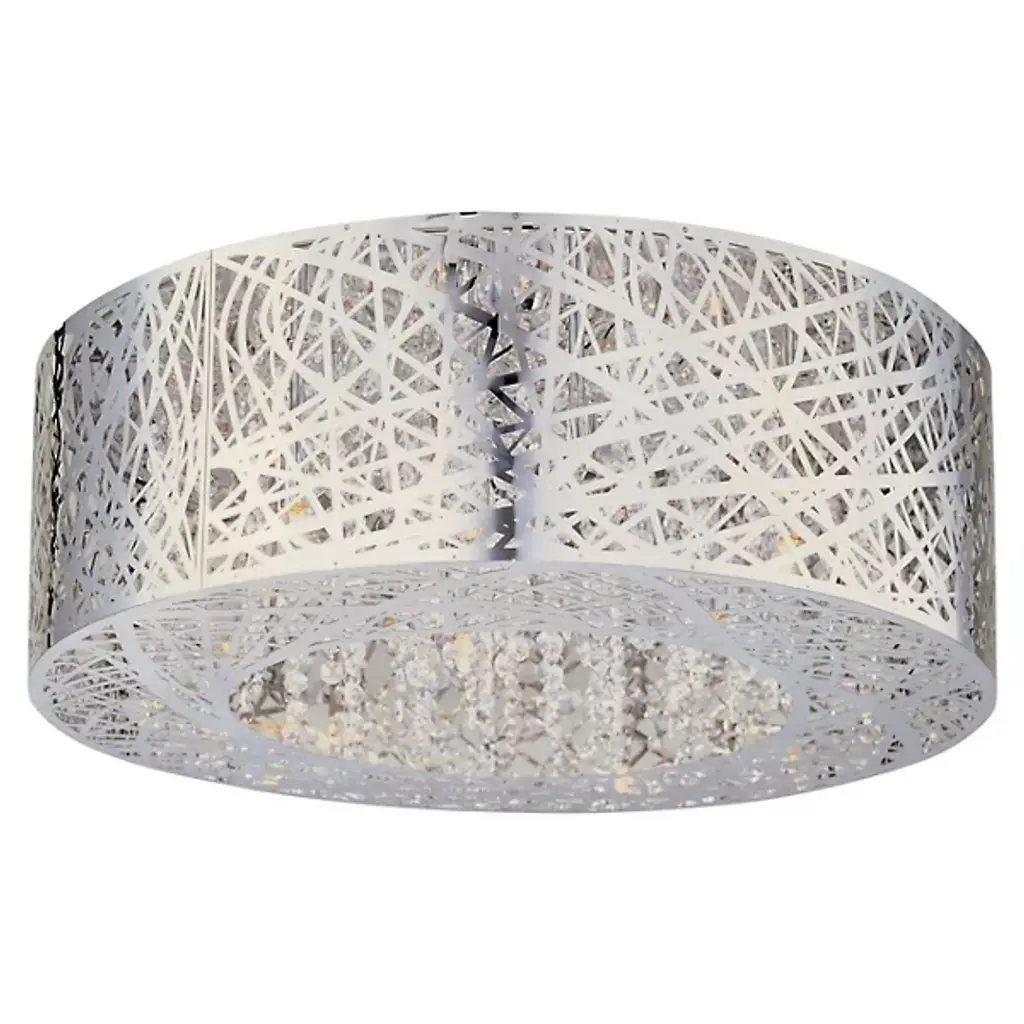 Add a vibrant and eye-catching display to your modern home with the Karmelo Wall Sconce from Huxe. Mounting directly to the wall, this piece extends a warm layer of light throughout the surrounding space. The smooth metal body is adorned with a dense pattern of overlapping lines that reveal an interior filled with crystals. A set of bulbs bring the crystals to life, creating a warm demonstration in the room.